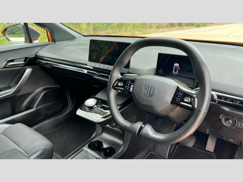 MG Mg4 150kW Trophy EV Long Range 64kWh 5dr Auto 10.25" floating colour touchscreen, 360 degree parking camera, 5 driving modes (Eco, sport, snow, custom, standard), 7" Full digital driver information display, Adaptive cruise control, Android Auto, Apple CarPlay, Blind Spot Detection (BAS), Driver attention assist, E-call, Intelligent speed limit assist with traffic sign recognition, iSmart with live services (additional services include weather, live traffic, amazon prime), Lane change assist, Lane keep assist system (LAS) with Lane departure warning system (LDWS), Mobile phone bluetooth key, PAS, Rear cross traffic alert, Rear parking sensors, Satellite Navigation, Traffic jam assist, Wireless Mobile Phone Charger, 7 kW onboard charger, Vehicle to load charging, 6 speaker audio system with 3D sound, DAB+ radio, USB ports (2x front, 1x rear), Active grille system (AGS), Auto dimming rear view mirror, Auto headlights, Electrically adjustable power folding heated black door mirrors, Front and rear electric windows with one-touch up/down, Integrated LED daytime running lights, Intelligent high beam, LED centre brake light, LED rear lights, Projector LED headlights with reflective technology, Rain sensing wipers, Rear centre light bar with cross hatch design effect, Rear privacy glass, Rear side wing doors, Rear wiper, Tinted glass, Twin aero rear spoiler, 2nd row 60/40 split fold seat, 3 rear headrests, 3 seat bench in 2nd row, 4 way adjustable passenger seat, 6 way electric adjustable drivers seat, Climate control, Front headrests, Heated front seats, Heated steering wheel, Height adjustable loading floor, Leather steering wheel, Leather style with cloth inserts upholstery, One pedal drive, Rake/reach adjustable steering wheel, Single front passenger seat, 3x3 point rear seatbelts, 4 Regenerative braking modes (Auto, 1, 2, 3), ABS/EBD, Active emergency braking with pedestrian/Bicycle detection, Door open warning, Drivers seatbelt reminder, Dual front airbags, EBA, ESP, Front and rear passenger seat belt reminder, Front passenger airbag deactivation switch, Front seatbelts (3-point + pretensioner + load limiter), Front side airbags, Hill start assist, Rear door child safety locks, Rear seat ISOFIX x2, Side curtain airbags, Tyre pressure monitoring system, Alarm & Engine Immobiliser, 18" alloy wheels with low wind resistance aero cover