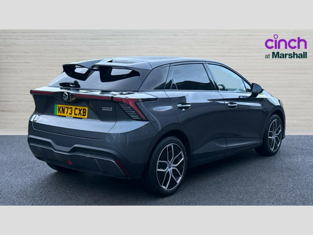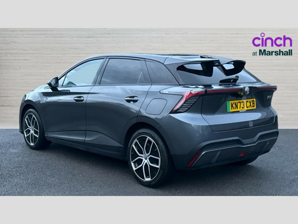 MG Mg4 150kW Trophy EV Long Range 64kWh 5dr Auto 10.25" floating colour touchscreen, 360 degree parking camera, 5 driving modes (Eco, sport, snow, custom, standard), 7" Full digital driver information display, Adaptive cruise control, Android Auto, Apple CarPlay, Blind Spot Detection (BAS), Driver attention assist, E-call, Intelligent speed limit assist with traffic sign recognition, iSmart with live services (additional services include weather, live traffic, amazon prime), Lane change assist, Lane keep assist system (LAS) with Lane departure warning system (LDWS), Mobile phone bluetooth key, PAS, Rear cross traffic alert, Rear parking sensors, Satellite Navigation, Traffic jam assist, Wireless Mobile Phone Charger, 7 kW onboard charger, Vehicle to load charging, 6 speaker audio system with 3D sound, DAB+ radio, USB ports (2x front, 1x rear), Active grille system (AGS), Auto dimming rear view mirror, Auto headlights, Electrically adjustable power folding heated black door mirrors, Front and rear electric windows with one-touch up/down, Integrated LED daytime running lights, Intelligent high beam, LED centre brake light, LED rear lights, Projector LED headlights with reflective technology, Rain sensing wipers, Rear centre light bar with cross hatch design effect, Rear privacy glass, Rear side wing doors, Rear wiper, Tinted glass, Twin aero rear spoiler, 2nd row 60/40 split fold seat, 3 rear headrests, 3 seat bench in 2nd row, 4 way adjustable passenger seat, 6 way electric adjustable drivers seat, Climate control, Front headrests, Heated front seats, Heated steering wheel, Height adjustable loading floor, Leather steering wheel, Leather style with cloth inserts upholstery, One pedal drive, Rake/reach adjustable steering wheel, Single front passenger seat, 3x3 point rear seatbelts, 4 Regenerative braking modes (Auto, 1, 2, 3), ABS/EBD, Active emergency braking with pedestrian/Bicycle detection, Door open warning, Drivers seatbelt reminder, Dual front airbags, EBA, ESP, Front and rear passenger seat belt reminder, Front passenger airbag deactivation switch, Front seatbelts (3-point + pretensioner + load limiter), Front side airbags, Hill start assist, Rear door child safety locks, Rear seat ISOFIX x2, Side curtain airbags, Tyre pressure monitoring system, Alarm & Engine Immobiliser, 18" alloy wheels with low wind resistance aero cover