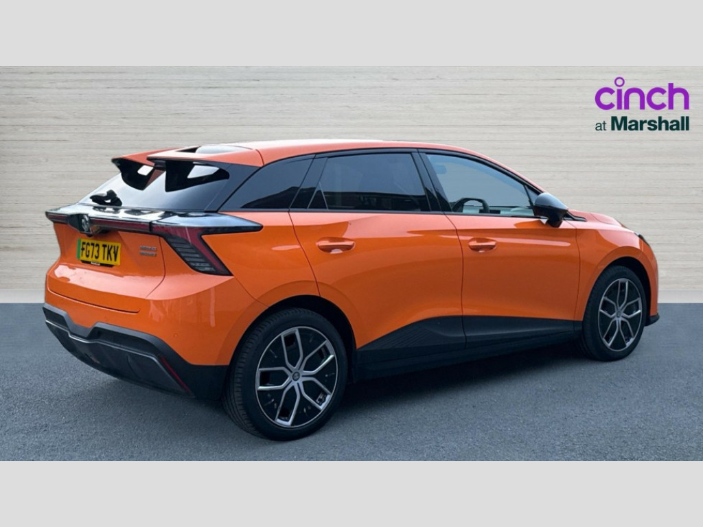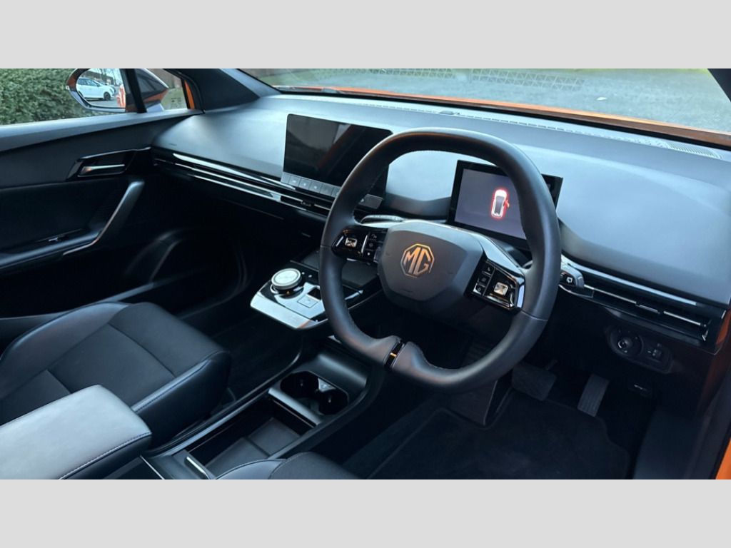 MG Mg4 150kW Trophy EV Long Range 64kWh 5dr Auto 10.25" floating colour touchscreen, 360 degree parking camera, 5 driving modes (Eco, sport, snow, custom, standard), 7" Full digital driver information display, Adaptive cruise control, Android Auto, Apple CarPlay, Blind Spot Detection (BAS), Driver attention assist, E-call, Intelligent speed limit assist with traffic sign recognition, iSmart with live services (additional services include weather, live traffic, amazon prime), Lane change assist, Lane keep assist system (LAS) with Lane departure warning system (LDWS), Mobile phone bluetooth key, PAS, Rear cross traffic alert, Rear parking sensors, Satellite Navigation, Traffic jam assist, Wireless Mobile Phone Charger, 7 kW onboard charger, Vehicle to load charging, 6 speaker audio system with 3D sound, DAB+ radio, USB ports (2x front, 1x rear), Active grille system (AGS), Auto dimming rear view mirror, Auto headlights, Electrically adjustable power folding heated black door mirrors, Front and rear electric windows with one-touch up/down, Integrated LED daytime running lights, Intelligent high beam, LED centre brake light, LED rear lights, Projector LED headlights with reflective technology, Rain sensing wipers, Rear centre light bar with cross hatch design effect, Rear privacy glass, Rear side wing doors, Rear wiper, Tinted glass, Twin aero rear spoiler, 2nd row 60/40 split fold seat, 3 rear headrests, 3 seat bench in 2nd row, 4 way adjustable passenger seat, 6 way electric adjustable drivers seat, Climate control, Front headrests, Heated front seats, Heated steering wheel, Height adjustable loading floor, Leather steering wheel, Leather style with cloth inserts upholstery, One pedal drive, Rake/reach adjustable steering wheel, Single front passenger seat, 3x3 point rear seatbelts, 4 Regenerative braking modes (Auto, 1, 2, 3), ABS/EBD, Active emergency braking with pedestrian/Bicycle detection, Door open warning, Drivers seatbelt reminder, Dual front airbags, EBA, ESP, Front and rear passenger seat belt reminder, Front passenger airbag deactivation switch, Front seatbelts (3-point + pretensioner + load limiter), Front side airbags, Hill start assist, Rear door child safety locks, Rear seat ISOFIX x2, Side curtain airbags, Tyre pressure monitoring system, Alarm & Engine Immobiliser, 18" alloy wheels with low wind resistance aero cover