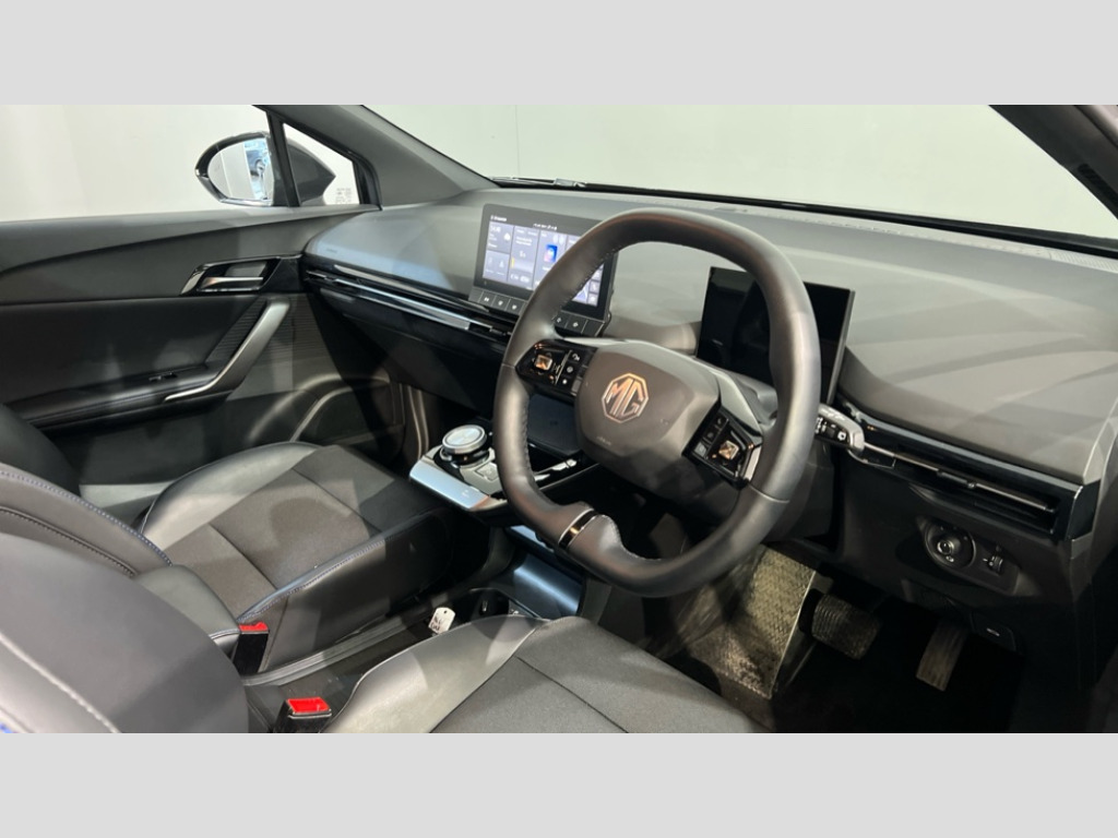 MG Mg4 150kW Trophy EV Long Range 64kWh 5dr Auto 10.25" floating colour touchscreen, 360 degree parking camera, 5 driving modes (Eco, sport, snow, custom, standard), 7" Full digital driver information display, Adaptive cruise control, Android Auto, Apple CarPlay, Blind Spot Detection (BAS), Driver attention assist, E-call, Intelligent speed limit assist with traffic sign recognition, iSmart with live services (additional services include weather, live traffic, amazon prime), Lane change assist, Lane keep assist system (LAS) with Lane departure warning system (LDWS), Mobile phone bluetooth key, PAS, Rear cross traffic alert, Rear parking sensors, Satellite Navigation, Traffic jam assist, Wireless Mobile Phone Charger, 7 kW onboard charger, Vehicle to load charging, 6 speaker audio system with 3D sound, DAB+ radio, USB ports (2x front, 1x rear), Active grille system (AGS), Auto dimming rear view mirror, Auto headlights, Electrically adjustable power folding heated black door mirrors, Front and rear electric windows with one-touch up/down, Integrated LED daytime running lights, Intelligent high beam, LED centre brake light, LED rear lights, Projector LED headlights with reflective technology, Rain sensing wipers, Rear centre light bar with cross hatch design effect, Rear privacy glass, Rear side wing doors, Rear wiper, Tinted glass, Twin aero rear spoiler, 2nd row 60/40 split fold seat, 3 rear headrests, 3 seat bench in 2nd row, 4 way adjustable passenger seat, 6 way electric adjustable drivers seat, Climate control, Front headrests, Heated front seats, Heated steering wheel, Height adjustable loading floor, Leather steering wheel, Leather style with cloth inserts upholstery, One pedal drive, Rake/reach adjustable steering wheel, Single front passenger seat, 3x3 point rear seatbelts, 4 Regenerative braking modes (Auto, 1, 2, 3), ABS/EBD, Active emergency braking with pedestrian/Bicycle detection, Door open warning, Drivers seatbelt reminder, Dual front airbags, EBA, ESP, Front and rear passenger seat belt reminder, Front passenger airbag deactivation switch, Front seatbelts (3-point + pretensioner + load limiter), Front side airbags, Hill start assist, Rear door child safety locks, Rear seat ISOFIX x2, Side curtain airbags, Tyre pressure monitoring system, Alarm & Engine Immobiliser, 18" alloy wheels with low wind resistance aero cover