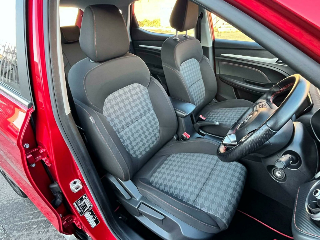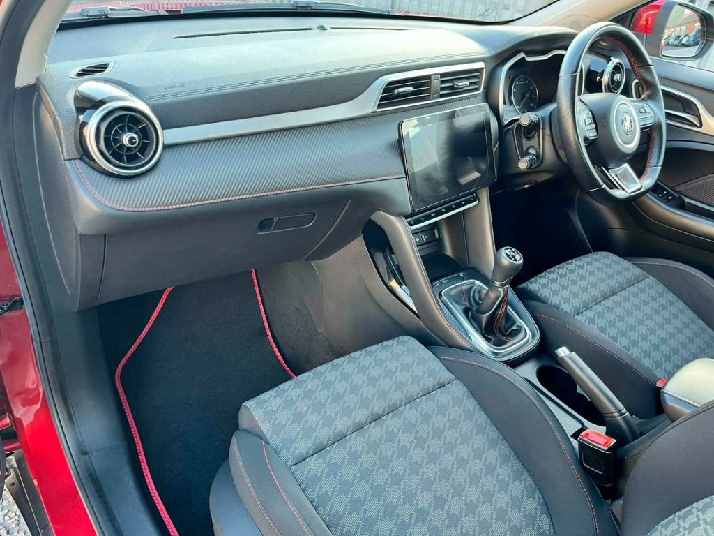 THIS LOW MILEAGE, ONE OWNER MG ZS IS PRESENTED IN THE POPULAR ORANGE/RED METALLIC WITH CHROME AND BLACK TRIM COMPLEMENTED BY 17'' DIAMOND CUT ALLOY WHEELS. THE ECONOMICAL 1.5 VTI PETROL ENGINE IS CONNECTED TO AN EASY-CHANGING MANUAL GEARBOX MAKING EASY WORK OF TOWN DRIVING AND LONG MOTORWAY JOURNEYS. THE INTERIOR CONTAINS COMFORTABLE DARK GREY SEATS WITH LIGHT GREY PATTERNED BASES AND BACKRESTS PLUS RED STITCHING. THE DASHBOARD CAPPING ALSO FEATURES RED STITCHING TO THE SOFT TOUCH CARBON STYLE FAUX LEATHER. EQUIPMENT INCLUDES A 10.1 INCH COLOUR TOUCHSCREEN FEATURING APPLE CARPLAY AND ANDROID AUTO WITH BLUETOOTH, DAB RADIO ETC. FURTHER EQUIPMENT FEATURES LED HEADLIGHTS, CRUISE CONTROL, REAR PARKING SENSORS AND MORE YET TO BE DISCOVERED. WE HAVE FULLY INSPECTED AND SERVICED THIS CAR, SO THE ONLY ISSUE FOR ITS NEW OWNER WILL BE WHERE THE NEXT TRIP SHOULD BE. PLEASE CALL 0161 761 3452 (OPTION 2) TO ARRANGE A VIEWING, TO RESERVE THE CAR OR FOR MORE INFORMATION. WHILST EVERY EFFORT HAS BEEN MADE TO ENSURE THAT THE STATED SPECIFICATION IS ACCURATE, PLEASE CHECK WITH A MEMBER OF THE SALES TEAM IF A PARTICULAR SPECIFICATION/FEATURE IS IMPORTANT TO YOU.. 10.1in Colour Touchscreen, 12v Power Socket, 17in Alloy Wheels - Typhoon - Diamond Cut, 2nd Row 60-40 Split Fold Seat, 4-Speaker Audio System, ABS and EBD, ARP Anti Rolling Program, Air Conditioning, Airbags - Front Passenger Deactivation Switch, Airbags - Side Curtain, Alarm & Engine Immobiliser, Android Auto, Apple CarPlay, Auto Headlights, Bi-Function LED Headlight, Bluetooth Connection, Cruise Control with Speed Limiter, DAB Radio, DRL - LED Daytime Running Lights, Drivers 6 Way Manual Adjustable Seat, Drivers Seat Belt Reminder, EBA - Emergency Brake Assist, ESP - Electronic Stability Programme, Electrically Adjustable - Folding - Heated - Body Colour Door Mirrors, Follow Me Home Headlights, Front Dual Airbags, Front Seat Back Map Pockets, Front Seatbelt 3 Point Pretensioner and Load Limiter, Front Side Airbags, Front and Rear Aero Wiper, Front and Rear Electric Windows with Drivers One-Touch Up-Down, Front and Rear Passenger Seat Belt Reminder, Hill Launch Assist, LED Centre Brake Light, Parking Sensors - Rear, Passenger 4 Way Manual Adjustable Seat, Power Assisted Steering, Radio and AUX-USB MP3, Rear Headrest x3, Rear ISOFIX x2, Remote Central Locking, Silver Roof Rails, Speed Sensing Locking, Steering Wheel - Leather, TPMS - Tyre Pressure Monitoring System, Trip Computer, Tyre Repair Kit, USB Mobile Phone Charging Function, Designer Houndstooth Fabric - Grey-Black.
