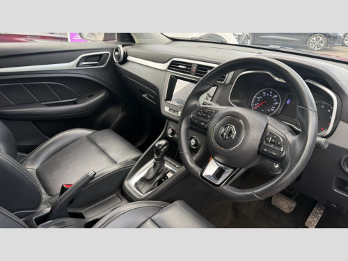 MG Zs 1.0T GDi Exclusive 5dr DCT 'Lights On' Reminder warning buzzer, Bluetooth phone integration system, Cruise control, iGo Navigation system, PAS, Rear view camera, Trip computer, 6 speakers, Radio/MP3 player, Steering wheel mounted audio controls, USB/aux input socket, Automatic headlights with dusk sensor, Body colour bumpers, Body colour door handles, Body coloured door mirrors, Chrome side window trim, Coming home function, Electric adjustable door mirrors, Electric driver's window with 'one touch', Electric heated door mirrors, Electric rear windows, Front fog lights, LED daytime running lights, Load carrier, Programmed rear wash/wipe, Rear spoiler, Solar reflect windscreen, Variable front intermittent wipers, 3 spoke leather steering wheel, 4 way manually adjustable passenger seat with height, reach, tilt, backrest and headrest, 6-way manually adjustable driver's seat, 60/40 split folding rear seat, Boot light, Driver's footrest, Driver/passenger sunvisors and vanity mirrors, Dust/pollen filter, Electronic air conditioning, Front cupholders x 2, Front grab handles, Front headrests, Front reading lights, Glovebox, Illuminated switches and controls, Internal chrome door handles, Isofix system on outer rear seats, Rake/reach adjustable steering wheel, Rear grab handle, Seat back pockets, Synthetic leather upholstery, Twin rear headrests, 3x3 point rear seatbelts, ABS/EBD, Automatic unlocking of doors in case of impact, Child locks on rear doors, Curtain airbags, Driver/Front Passenger airbags, EBA, ESP, Front seatbelt pretensioners + load limiters, Front side airbags, Fuel cut off safety device, Hill hold function, Passenger airbag deactivate switch, Seatbelt reminder for driver and front passenger, Tyre pressure monitoring system, Central locking, Immobiliser, Remote central locking, Second remote key, Speed sensitive auto door locking, Superlocking, 17" Bi-colour alloy wheels, Tyre repair kit