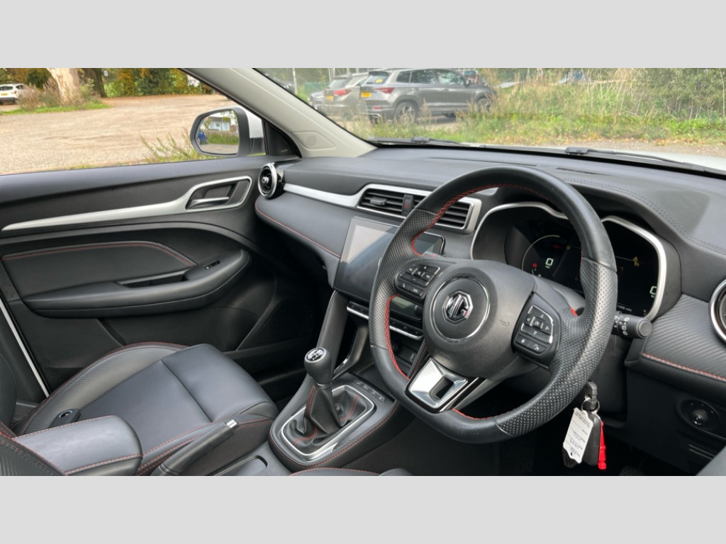 MG Zs 1.5 VTi-TECH Exclusive 5dr 'Lights On' Reminder warning buzzer, 10.1" colour touchscreen, 360 degree parking camera, Android Auto, Apple CarPlay, Blind spot monitoring, Bluetooth connectivity, Cruise control with speed limiter, eCall emergency call system, Full digital driver information display, PAS, Rear cross traffic alert, Rear parking sensors, Satellite Navigation, Trip computer, USB mobile phone charging function, 6 speaker audio system with 3D sound, DAB audio, Radio/MP3 player, USB/aux input socket, Auto headlights, Body colour bumpers, Body colour door handles, Body colour electric adjustable folding heated door mirrors, Chrome side window trim, Follow me home headlights, Front and rear aero wiper, Front and rear electric windows with driver's one-touch up/down, Front fog lights, LED Bi-Function headlights, LED centre brake light, LED daytime running lights, Rain sensing wipers, Rear privacy glass, Rear side wing doors, Rear spoiler, Rear wiper, Silver roof rails, 12V power sockets, 2nd row 60/40 split/fold, 3 rear headrests, 3 seat bench in 2nd row, 4 way manually adjustable passenger seat, 6 way electric adjustable drivers seat, Adjustable dual height boot floor, Air conditioning, Boot light, Driver's footrest, Front cupholders x 2, Front grab handles, Front headrests, Front reading lights, Front seat back map pockets, Glovebox, Heated front seats, Illuminated switches and controls, Internal chrome door handles, ISOFIX restraints on outer rear seats x2, Leather steering wheel, Leather upholstery with contrast stitching, Rake/reach adjustable steering wheel, Rear grab handle, Single front passenger seat, 3x3 point rear seatbelts, ABS/EBD, Anti rolling protection, Automatic unlocking of doors in case of impact, Dual front airbags, EBA, ESP, Front passenger airbag deactivation switch, Front seatbelts (3-point + pretensioner + load limiter), Front side airbags, Fuel cut off safety device, Hill launch assist, Rear door child safety locks, Rear passenger seatbelt alert, Seatbelt reminder for driver and front passenger, Side curtain airbags, Tyre pressure monitoring system, Alarm system and engine immobiliser, Automatic latching door, Remote central locking, Second remote key, Speed sensing door locks, Superlocking, 17" Tomahawk diamond cut alloy wheels, Tyre repair kit