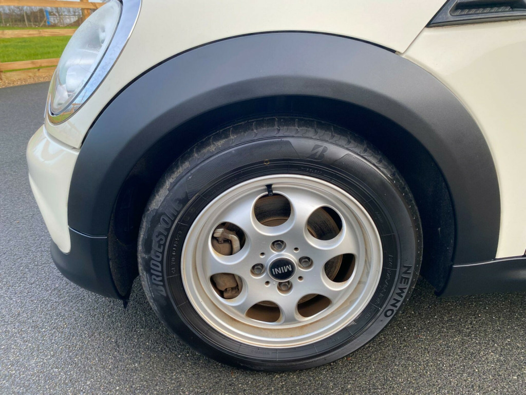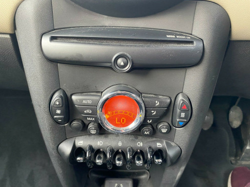 . 15in Alloy Wheels - Light 7-Hole, 3rd Brake Light, ASC+T - Automatic Stability Control and Traction, Air Conditioning - Manual, Airbags - Driver, Airbags - Front Passenger, Airbags - Front Passenger with Deactivation Switch, Airbags - Front Side, Airbags - Head, Alarm - Thatcham CAT1, Anti-Lock Braking System - ABS, Aux-In Connection, Brake Force Display, Brake Pad Wear Indicator, CBC - Cornering Brake Control, Car Jack, Central Locking - Remote, Child Seat ISOFIX Attachment, Crash Sensor - Fuel Cut-Off, Crash Sensor - Hazard Warning Flashers and Interior Light, Crash Sensor - Unlocking Doors, Cupholders - Front x2 - Rear x3, DAB Tuner, Door Handles - Chrome Plated, Door Handles - Interior - Chrome Plated, Door Mirrors - Electrically Adjustable and Heated, Dynamic Stability Control - DSC, EBD - Electronic Brake-Force Distribution, Electric Windows - Front - One Touch Up and Down, Electronic Power Steering - Speed Related, Foldable Rear Backrest and 50:50 Split, Halogen Lights for Low Beam and High Beam Headlights, Headlight - Beam-Throw Control Electrical with Manual Adjustment, Headlights - Follow Me Home, Headrests For All Seats - Manually Adjustable, Heated Front Windscreen Washer Jets, Heated Rear Window with Automatic Deactivation, Hill Assist, Interior World - Carbon Black, Lashing Eyes in Luggage Compartment, Luggage Compartment - Light, MINI Mobility System, Microfilter, Mirror Caps in Body Colour, Non Smoker Package, Radiator Grille - Chrome Plated, Radio BOOST CD, Roof Rails, Roof in Body Colour, Seats - Easy Entry Access, Seats - Height Adjustable Drivers, Second Radio Remote Key, Security Locking Wheel Bolts, Steering Column Height and Length Adjustment, Steering Wheel - 2-Spoke Plastic, Storage Options in the Trim Panels of Each Front Panel as well as Centre Console, Sun Visors with Integrated Vanity Mirrors on Drivers and Passengers Sides, TPWS - Tyre Pressure Warning System, Tool Kit in Luggage Compartment, Twin Rear Window Wipers.