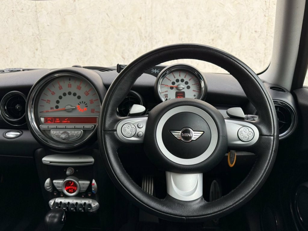 A RARE OPPORTUNITY TO PURCHASE THIS BEAUTIFULLY PRESENTED MINI CLUBMAN S AUTOMATIC FINISHED IN GREY METALLIC WITH BLACK ROOF AND WING MIRRORS. THIS CAR COMES WITH FULL SERVICE HISTORY INCLUDING A RECENT TIMING CHAIN KIT, 2 KEYS AND FEATURES INCLUDING, CLIMATE CONTROL WITH AIR CONDITIONING, FULL LEATHER TRIM WITH HEATED FRONT SEATS, SPLIT PANORAMIC WITH ELECTRIC SUNROOF, REAR PARKING SENSORS, BLUETOOTH HANDS-FREE, RADIO/CD PLAYER WITH USB AND AUX POINT, MULTI FUNCTION LEATHER STEERING WHEEL, CRUISE CONTROL, AUTOMATIC GEARBOX WITH PADDLE SHIFTS, ELECTRIC WINDOWS, ELECTRIC MIRRORS, AUTO LIGHTS, REMOTE CENTRAL LOCKING AND 17" ALLOY WHEELS. *** EXACT MILEAGE - 91, 889 *** 16in S- Winder Light Alloy Wheels, 2Spoke Leather Steering Wheel with Leath, 3 Rear 3 point Seatbelts, 3Spoke Sports Leather Steering Wheel &am, 3Spoke Sports Leather Steering Wheel &am, 6 Speakers, Black roof & mirror caps, Body Coloured roof, Body colour door mirrors, Chequered Interior Trim, Exterior badge deletion, Glovebox, Height adjust Headlights, Interior world - Gotham Grey, Interior world- Carbon Black, Interior world- Hot Chocolate, Interior world- Tuscan Beige, MINI mobility System, Manual Air Conditioning with cooled glov, No smoker Package, Piano Black Interior Trim with Gravity &, RoofRails, Silver Trim on C- pillars, Silver roof & mirror caps, Third Rear headrest, Voi