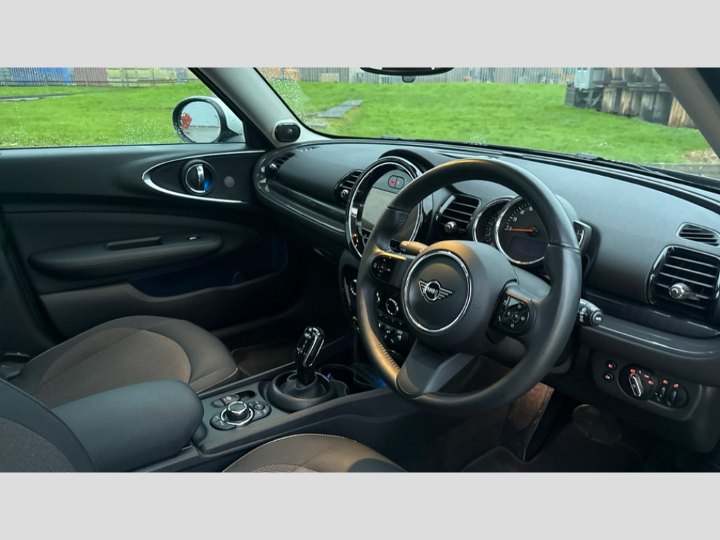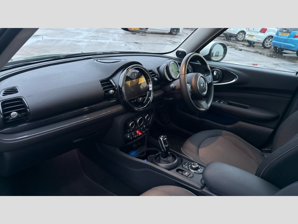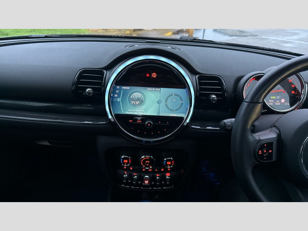 MINI Clubman 1.5 Cooper Classic 6dr Auto Active Guard incl speed limiting and lane departure functions with auto steering, and front collision warning with brake intervention, Automatic start/stop function with brake energy recuperation, Car sharing preparation, Compatible mobile phone bluetooth with audio streaming, Electro-mechanical speed dependant steering assistance, Instrument cluster, Mini E-call, MINI TeleServices, On board computer, Rear parking distance control, 7 Speed steptronic transmission with double clutch including electronic gear shifter, Double Vanos system, Fully variable valve control, High precision injection, Performance Control, FM tuner and DAB digital radio, Body colour fuel filler cap, Door sill strips, Dynamic brake lights, Electric windows, Exhaust tailpipe, Heated rear window, Heated windscreen washer jets, LED headlights with closed ring as daytime driving lights, LED rear light with union jack design, Left exhaust tailpipe with chrome finisher, Model logo on rear doors, Radiator grille, Rain sensor with auto headlights, Rear fog lights, Rear side wing doors, Rear window wiper, Rear wing door, Side scuttle panel with integrated indicator, Split rear doors, Sun/heat protection glass, Third brake light, Variable front intermittent wipers, White indicator lenses, 12V Accessory socket in centre console, 3 seat bench in 2nd row, 3 spoke sport leather steering wheel, shaped thumb rests+ limiter function and audio controls, 360L luggage compartment capacity, 4 lashing eyes in luggage compartment, 60/40 split folding rear seat, Chrome interior highlights, Cupholders, English handbook, Floor mats, Front and rear head restraints, Glove compartment, Headliner with grab handles and clothes hooks, Height and length steering column adjustment, Interior lighting with 12 basic colours selectable via toggle switch in roof, Isofix rear child seat preparation, Leather gearshift lever and handbrake gaiters, LED reading lights, vanity mirror lights, front foot well light and spotlight on front seats, Manual air conditioning, Manual passenger seat height adjustment, Mechanical seat adjustment, driver seat height adjust, forward/back and front seats backrest, Multifunction steering wheel, Single front passenger seat, Storage compartments in doors, Sunvisors with vanity mirrors, Toolkit, Excitement pack - Clubman, Navigation pack - Clubman, 2 tone horn, 3 point seatbelts on all seats, 6 Airbags - front, side, head and seat belt tensioners, Anti-lock braking system (ABS), Child locks on rear doors, DSC - Dynamic Stability Control, Electronic handbrake, Front and rear disc brakes, Tyre pressure monitoring system, Alarm system with tilt sensor, monitoring doors, bonnet interior and tailgate, Auto drive away locking, Deadlocking function, Electronic vehicle immobiliser, Locking wheel bolts, Remote central locking, Start/stop toggle with keyless go, Tyre repair kit