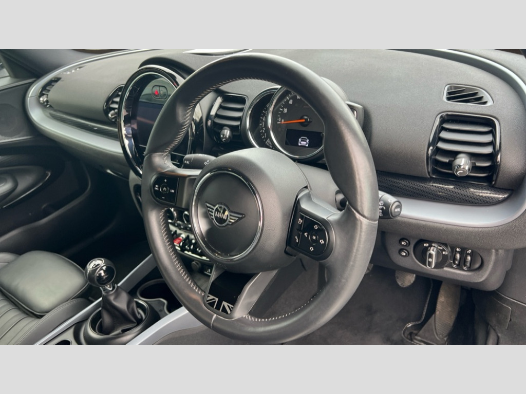 MINI Clubman 1.5 Cooper Exclusive 6dr Active Guard incl speed limiting and lane departure functions with auto steering, and front collision warning with brake intervention, Automatic start/stop function with brake energy recuperation, Car sharing preparation, Compatible mobile phone bluetooth with audio streaming, Electro-mechanical speed dependant steering assistance, Instrument cluster, Mini E-call, MINI TeleServices, On board computer, 6 Speed manual transmission including gear change indicator display, Double Vanos system, Fully variable valve control, High precision injection, Performance Control, FM tuner and DAB digital radio, Body colour fuel filler cap, Chrome lower front grille grating, Chrome radiator grille bars, Door sill strips, Dynamic brake lights, Electric windows, Exhaust tailpipe, Heated rear window, Heated windscreen washer jets, LED rear light with union jack design, Left exhaust tailpipe with chrome finisher, Model logo on rear doors, Rain sensor with auto headlights, Rear fog lights, Rear side wing doors, Rear window wiper, Rear wing door, Side scuttle panel with integrated indicator, Split rear doors, Sun/heat protection glass, Third brake light, Variable front intermittent wipers, White indicator lenses, 12V Accessory socket in centre console, 3 seat bench in 2nd row, 360L luggage compartment capacity, 4 lashing eyes in luggage compartment, 60/40 split folding rear seat, Anthracite headlining with grab handles and clothes hooks, Chrome air vents, gear lever base and door handles, Chrome interior highlights, Cupholders, English handbook, Front and rear head restraints, Glove compartment, Height and length steering column adjustment, Interior lighting with 12 basic colours selectable via toggle switch in roof, Isofix rear child seat preparation, Leather gearshift lever and handbrake gaiters, LED reading lights, vanity mirror lights, front foot well light and spotlight on front seats, MINI Yours exterior badging in C-Pillar, MINI Yours floor mats, Multifunction steering wheel, Nappa leather steering wheel with MINI Yours badge, Single front passenger seat, Storage compartments in doors, Sunvisors with vanity mirrors, Toolkit, Excitement pack - Clubman, Extended interior lighting pack - Mini Clubman, Navigation plus pack - Mini Clubman, 2 tone horn, 3 point seatbelts on all seats, 6 Airbags - front, side, head and seat belt tensioners, Anti-lock braking system (ABS), Child locks on rear doors, DSC - Dynamic Stability Control, Electronic handbrake, Front and rear disc brakes, Tyre pressure monitoring system, Alarm system with tilt sensor, monitoring doors, bonnet interior and tailgate, Auto drive away locking, Deadlocking function, Electronic vehicle immobiliser, Locking wheel bolts, Start/stop toggle with keyless go