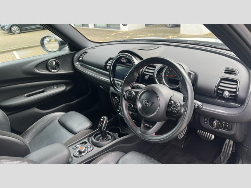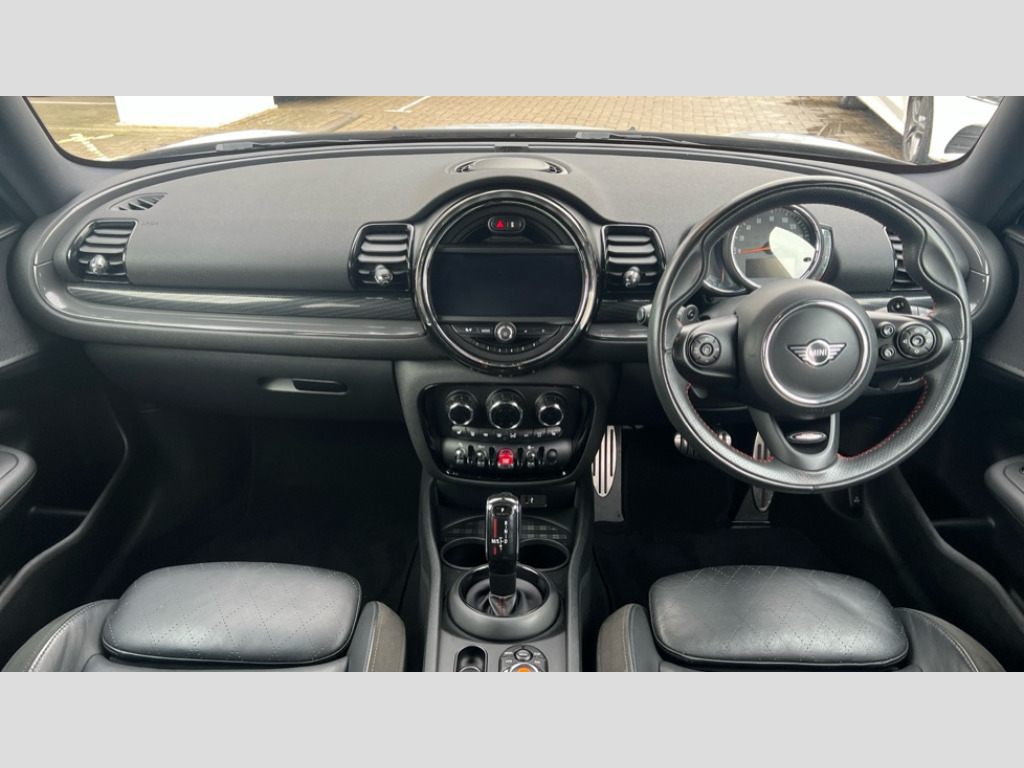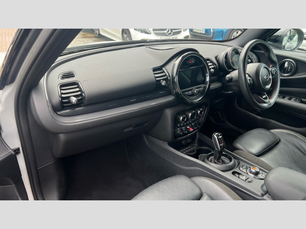MINI Clubman 2.0 Cooper S Sport 6dr Auto Active Guard incl speed limiting and lane departure functions with auto steering, and front collision warning with brake intervention, Automatic start/stop function with brake energy recuperation, Compatible mobile phone bluetooth with audio streaming, Electro-mechanical speed dependant steering assistance, Instrument cluster, Mini E-call, MINI TeleServices, On board computer, Double Vanos system, Fully variable valve control, High precision injection, Performance Control, Steptronic sport transmission with double clutch and steering wheel paddles, FM tuner and DAB digital radio, Bonnet scoop, Chrome fuel filler cap, Dynamic brake lights, Electric windows, Heated rear window, Heated windscreen washer jets, John Cooper Works - aerodynamic kit (front and rear apron, spoiler), front and rear sport bumpers and part-painted side sills with door sill finishers, John Cooper Works rear spoiler, LED rear light with union jack design, Metal door sill strips with Cooper S imprint, Model logo, Model logo on rear doors, Radiator grille, Rain sensor with auto headlights, Rear fog lights, Rear window wiper, Side scuttle panel with integrated indicator, Split rear doors, Sun/heat protection glass, Twin exhaust tailpipe, White indicator lenses, 12V Accessory socket in centre console, 360L luggage compartment capacity, 4 lashing eyes in luggage compartment, 60/40 split folding rear seat, Anthracite headlining with grab handles and clothes hooks, Chrome interior highlights, Cupholders, English handbook, Glove compartment, Height and length steering column adjustment, Interior lighting with 12 basic colours selectable via toggle switch in roof, Isofix rear child seat preparation, John Cooper Works perforated leather steering wheel with contrast stitching in chilli red and John Cooper Works logo, John Cooper Works sports seat with integrated headrest, adjustable thigh support and John Cooper Works logo, Leather gearshift lever and handbrake gaiters, LED reading lights, vanity mirror lights, front foot well light and spotlight on front seats, Multifunction steering wheel, Storage compartments in doors, Sunvisors with vanity mirrors, Toolkit, Excitement pack - Clubman, Navigation plus pack - Mini Clubman, 2 tone horn, 3 point seatbelts on all seats, 6 Airbags - front, side, head and seat belt tensioners, Anti-lock braking system (ABS), DSC - Dynamic Stability Control, Electronic handbrake, Front and rear disc brakes, Tyre pressure monitoring system, Alarm system with tilt sensor, monitoring doors, bonnet interior and tailgate, Auto drive away locking, Deadlocking function, Electronic vehicle immobiliser, Locking wheel bolts, Start/stop toggle with keyless go