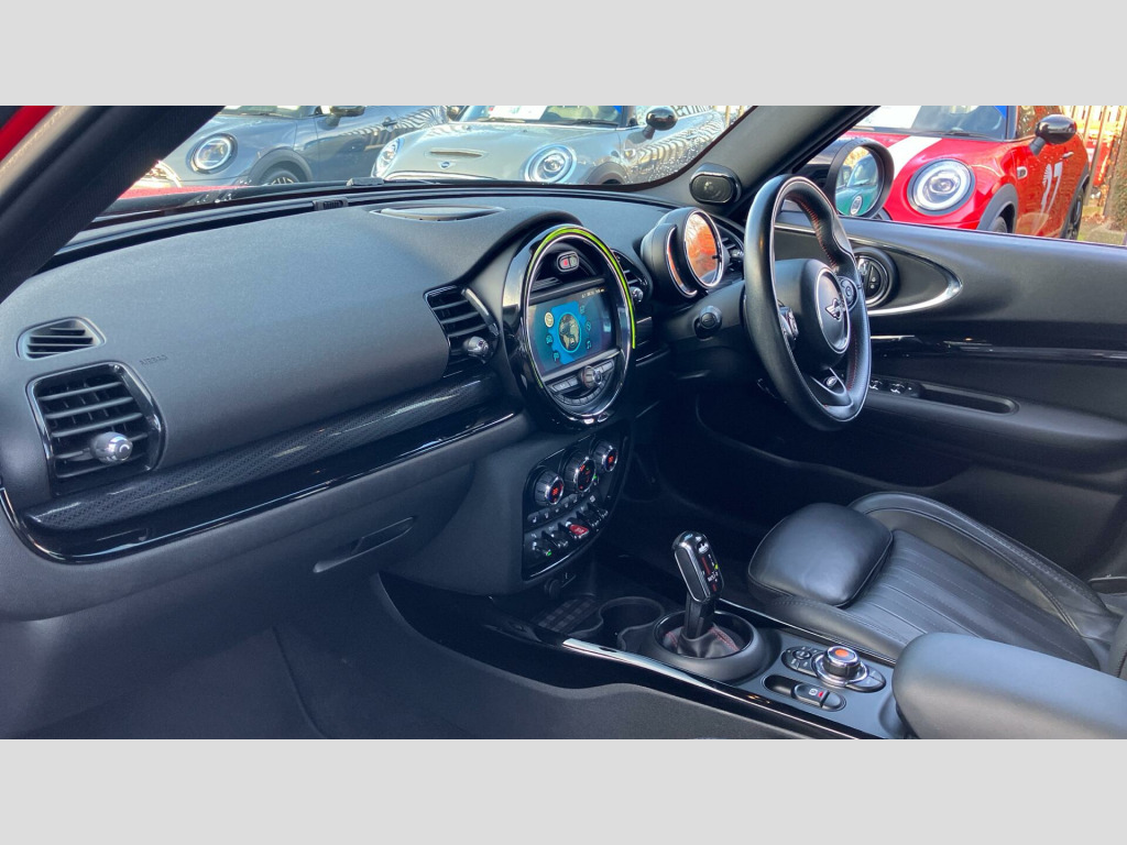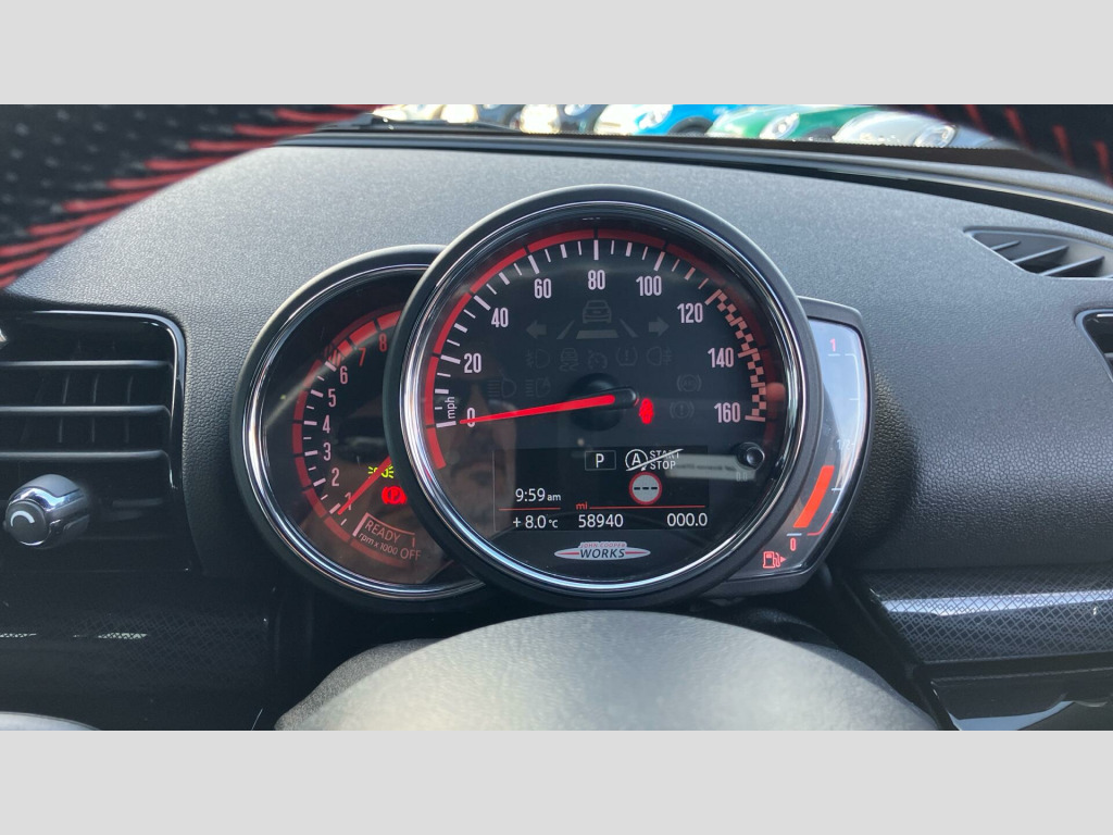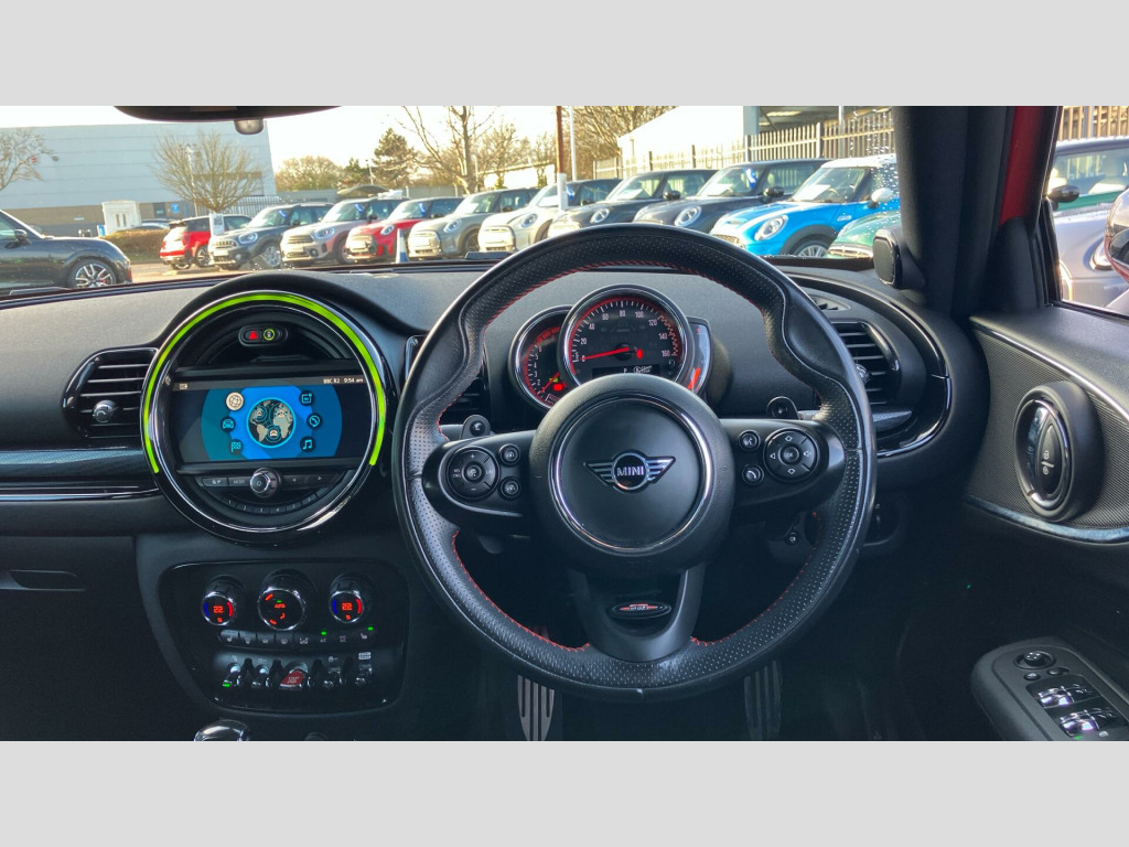 Experience exhilarating performance with this John Cooper Works Clubman, capable of accelerating from 0-62mph in a swift 4.9 seconds, a highlight that sets it apart from many other vehicles. The Harman Kardon Hi-Fi system provides a premium audio experience, making every journey more enjoyable. This MINI Clubman John Cooper Works offers a compelling blend of sporty dynamics, practical versatility, and a wealth of premium features, making it a distinguished choice for those seeking a refined and engaging driving experience. 19" JCW Circuit Spoke 2-tone, Sport Stripes Black, Heated Front Windscreen, Roof and Mirrors Caps in Black, Panoramic Glass Sunroof, Sun Protection Glass, Sport seats, Driving Assistant, Active Cruise Control, MINI Emergency Call, MINI Teleservices, ConnectedDrive Services, Real Time Traffic Information, Remote Services, Smartphone Integration, MINI Connected, MINI Connected XL, Enhanced Bluetooth- wireless charging, MINI Navigation System, Harman/Kardon Surround Sound Audio, Navigation Plus Pack, Driving Assistant Pack, RDE exhaust emissions standard, Sport Automatic Transmission with Gearsh, Tyre Repair Kit, Performance Control, JCW sport leather steering wheel, Sport suspension, Multifunction Controls on Steering Wheel, Reversing Camera, Piano Black Exterior, Electric Folding Door Mirrors, Comfort Access, Rear spoiler, Anthracite Roof Lining, Interior Trim Piano Black, MINI Driving Modes, MINI Excitement Pack, Ext. mirrors- folding with anti-dazzle, Rear-view Mirror with Auto dimming, Front Armrest, Extended storage, Heated front seats, Rear Fog Light, LED Headlights, Parking Assistant, Park Distance Control front and rear, Automatic Air Conditioning, Additional Interior Lighting, Concierge Service, Visual Boost Radio, DAB Radio