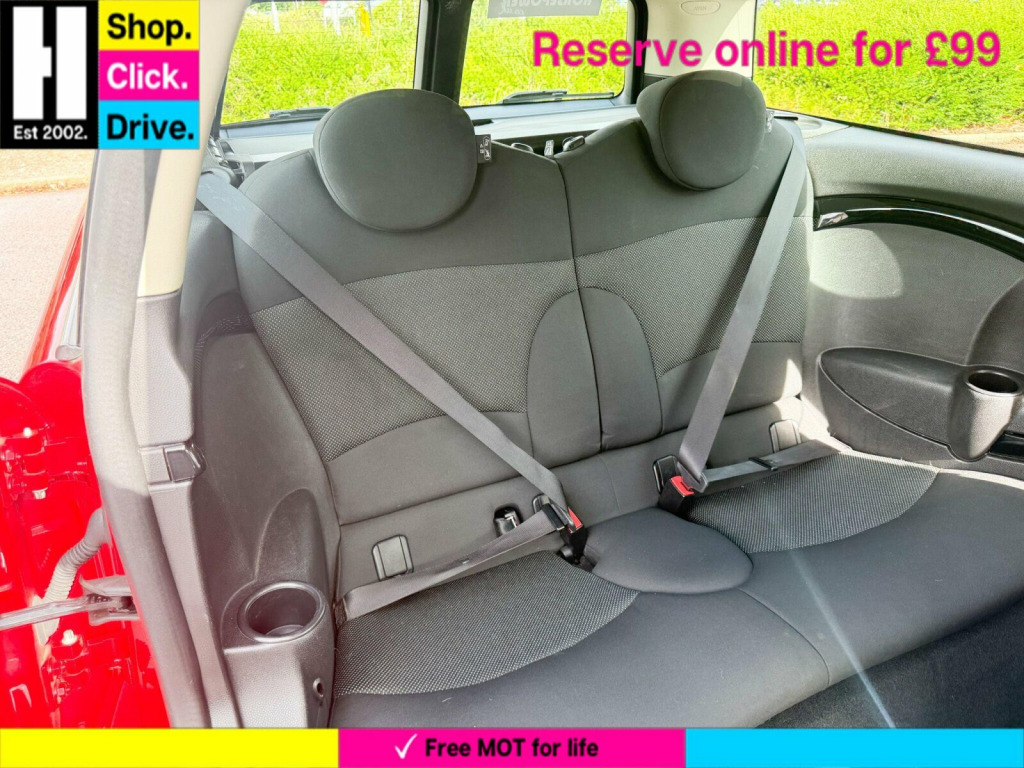 PEPPER Pack, 16in Alloy Wheels - Light 6-Star Twin Spoke, Air Conditioning - Automatic, Interior Light Pack, Interior Surfaces - Piano Black, Flat Load Floor, Front Fog Lights, Chrome Line Exterior, Chrome Line Interior, Steering Wheel - 2-Spoke Leather, Rain Sensor and Automatic Headlight Activation, White Direction Indicators Lights, Cloth Cosmos - Carbon Black, 15in Steel Wheels, 3rd Brake Light, ASC+T - Automatic Stability Control and Traction, Air Conditioning - Manual, Airbags - Driver, Airbags - Front Passenger, Airbags - Front Passenger with Deactivation Switch, Airbags - Front Side, Airbags - Head, Alarm - Thatcham CAT1, Anti-Lock Braking System - ABS, Aux-In Connection, Brake Force Display, Brake Pad Wear Indicator, CBC - Cornering Brake Control, Car Jack, Central Locking - Remote, Child Seat ISOFIX Attachment, Crash Sensor - Fuel Cut-Off, Crash Sensor - Hazard Warning Flashers and Interior Light, Crash Sensor - Unlocking Doors, Cupholders - Front x2 - Rear x3, DAB Tuner, Door Handles - Chrome Plated, Door Handles - Interior - Chrome Plated, Door Mirrors - Electrically Adjustable and Heated, Dynamic Stability Control - DSC, EBD - Electronic Brake-Force Distribution, Electric Windows - Front - One Touch Up and Down, Electronic Power Steering - Speed Related, Foldable Rear Backrest and 50:50 Split, Halogen Lights for Low Beam and High Beam Headlights, Headlight - Beam-Throw Control Electrical with Manual Adjustment, Headlights - Follow Me Home, Headrests For All Seats - Manually Adjustable, Heated Front Windscreen Washer Jets, Heated Rear Window with Automatic Deactivation, Hill Assist, Interior World - Carbon Black, Lashing Eyes in Luggage Compartment, Light Alloy Wheels and Mirror Caps in White, Luggage Compartment - Light, MINI Mobility System, Microfilter, Non Smoker Package, Radiator Grille - Black with Chrome Surround, Radio BOOST CD, Roof Rails, Roof in Body Colour, Seats - Easy Entry Access, Seats - Height Adjustable Drivers, Second Radio Remote Key, Steering Column Height and Length Adjustment, Steering Wheel - 2-Spoke Plastic, Storage Options in the Trim Panels of Each Front Panel as well as Centre Console, Sun Visors with Integrated Vanity Mirrors on Drivers and Passengers Sides, TPWS - Tyre Pressure Warning System, Tool Kit in Luggage Compartment, Twin Rear Window Wipers, Basic Bluetooth Function with USB Audio, Mirror Caps in Matt Black, Passenger Seat Height Adjustable
