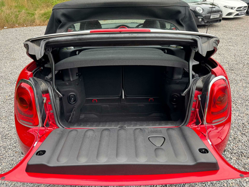 Introducing the Mini Convertible 1.5 Cooper 2dr – the perfect blend of style, performance, and open-air freedom. With just 36,686 miles on the clock and only two previous owners, this stunning vehicle is ready to provide you with countless exhilarating drives.Finished in a striking Chili Red, this Mini Convertible is sure to turn heads wherever you go. The 17-inch Alloy Wheels in Cosmos Black and the bold Bonnet Stripes in Black add a touch of sporty elegance, while the Mirror Caps in Jet Black complete the sleek exterior look.Step inside to discover a world of comfort and luxury. The Cross Punch Leather seats in Carbon Black offer a sophisticated touch, and with Seat Heating for both the driver and front passenger, you'll stay cosy even on the chilliest of days. The Interior Light Pack and Piano Black Interior Trim create an inviting atmosphere, perfect for any journey.Equipped with the CHILI Pack, this Mini Convertible boasts a host of premium features, including Automatic Dual Zone Air Conditioning to keep you comfortable, and the MINI Excitement Pack to enhance your driving experience. The MINI Driving Modes allow you to tailor your ride to suit your mood, whether you're cruising through the city or taking on winding country roads.Safety and convenience are paramount, with features such as Cruise Control with Brake Function, Rain Sensor, and Automatic Headlight Activation ensuring a smooth and stress-free drive. The LED Headlights and Daytime Running Lights provide excellent visibility, while the White Indicators add a touch of classic style.With Multifunction Controls for the Sport Leather Steering Wheel, you can effortlessly manage your music and calls, keeping your focus on the road ahead. Plus, the Storage Compartment Pack ensures you have plenty of space for all your essentials.Don't miss out on the opportunity to own this exceptional Mini Convertible. It's more than just a car – it's a lifestyle. Embrace the open road and experience the thrill of driving with the top down. Visit us today and take this beauty for a spin!. 12Volt Socket in Front Centre Console, 15in Alloy Wheels - Heli in Silver, 3 Point Seatbelts on all Seats, 3rd Brake Light - LED Along Top of Rear Window, 4 Lashing Eyes in Luggage Compartment, Airbags for Driver and Front Passenger, Alarm and Immobiliser - Thatcham CAT 1, Anti-Lock Braking System - ABS, Automatic Door Window Lowering by Approx 6mm When Door Opens, Bluetooth Hands Free Function with USB Audio, Body Coloured Fuel Filler Cap in Rear Right Side Panel - Linked to Central Locking, Boot Release via Remote Control, Brake System, Chrome Bezels around Rear Lights and Headlights, Colour Line - Carbon Black, Condition Based Service, Crash Sensor, Cupholders - Two in Front and One in the Rear Centre Console, DAB Tuner, DTC - Dynamic Traction Control with EDLC - Electronic Differential Lock Control, Daylight Driving Lights, Decorative Rings Surrounding Dashboard Instruments in Chrome Plated, Door Handles - Chrome Plated, Door Sill Finishers - Metal Look and Lettering - MINI, Dynamic Brake Lights, Dynamic Stability Control - DSC, EBD - Electronic Brake-Force Distribution, Easy Entry Access to the Rear Seats and Memory Function for Driver's Seat Base, Easy Load Function, Exhaust Tailpipe - Visible - Single - Round - Left Hand Side with Chrome Finisher, Exterior Mirrors - Aspheric on Drivers Side - Electrically Adjustable, External Visible VIN, Foldable Rear Backrest and 50:50 Split, Follow Me Home Function, Front Fog Lights, Front Passenger ISOFIX and Airbag De-Activation Switch, Front Side Indicators - Orange, Fuel Pump Automatic Cut-Off in Crash Situation, Gearshift Lever Knob - Plastic, Gearshift-Selector Lever and Handbrake Lever Gaiters in Sensatec Artificial Leather, Halogen Lights for Low Beam and High Beam Headlights, Handbrake Lever Grip - Plastic, Headlight - Beam-Throw Control Electrical with Manual Adjustment, Headrests x4, Heated Mirrors and Windscreen Washer Jets, Heated Window Heater, Heater with Mechanical Control and Recirculating-Air Button, Intelligent Emergency Calling - E-Call, Interior Door Handles - Chrome Plated, Interior Lights - Integrated into Centre Front Headliner and Centre Light in Headlining, Interior Mirror - Mechanical Anti-Dazzle, Interior Surface - Haze Grey, Interior Trim - Hazy Grey, John Cooper Works Aerodynamic Kit, Locking System with Central Locking, MINI Central Display, MINI Connected, MINI Mobility System, MINI TeleServices, Mechanical Seat Adjustment - Six Way Drivers Seat, Microfilter, Mirror Caps in Body Colour, Non Smoker Package, On-Board Computer, PDC - Park Distance Control - Rear, Personal Profile, Radiator Grille - Chrome Border and Slats in High-Gloss Black, Radio with Four-Line Display, Rear Fog Light, Rear View Camera, Reversing Light, Revolution Counter, Roll-Over Protection System, Security Locking Wheel Bolts, Servotronic Power Steering, Side Scuttles Black with Integrated Direction Indicator Orange, Sills - Bumper Edges - Wheel Arch Cover in High Gloss Black, Single Horn, Soft-top Operation - Fully Electric Fabric Hood with Integrated Folding Fabric Hood-Sliding Roof, Speakers - Two Mid Range in Front Doors and Two Woofers under Front Seats and Two Speakers in Rear Side Trims, Speedometer on Steering Column, Stainless Steel Embellisher at Bottom Edge of all Windows, Start-Stop Button with Keyless Start, Steering Wheel - 2-Spoke Plastic, Steering Wheel Column Adjustment Mechanically in Height and Length, Storage Options, Sun Visors with Integrated Vanity Mirrors on Drivers and Passengers Sides, TPWS - Tyre Pressure Warning System, Tailgate Handle - High Gloss Black, Tool Kit in Luggage Compartment, Visual Boost Radio, Window Lifts - Electrical for Drivers and Front Passengers Sides, 17in Alloy Wheels - Cosmos in Black, Air Conditioning - Automatic Dual Zone, Bonnet Stripes - Black, CHILI Pack, Chili Red, Colour Line - Glowing Red, Cross Punch Leather - Carbon Black - Carbon Black, Cruise Control 