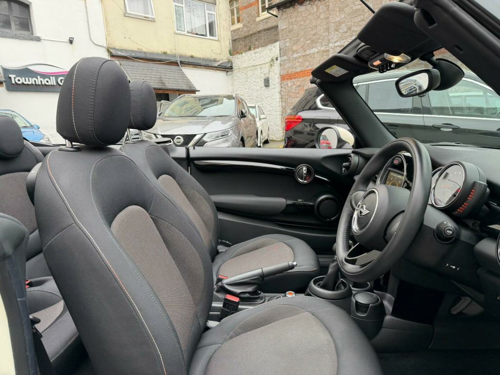 This 2017 MINI Convertible Cooper boasts exceptionally low mileage for its age, having covered just 15,000 miles with only one local owner. This Euro 6 compliant 1.5L petrol model offers a clear vehicle history, ensuring peace of mind. It comes equipped with the desirable Comfort Access System, allowing for keyless entry, and the MINI Convertible Pack, which also includes heated seats for those cooler days. Further enhancing its appeal is the 7KN PEPPER Pack, providing automatic headlights and climate control, alongside the standard PEPPER Pack and a useful wind deflector, Also comes with rear Parking Scensors.This MINI Convertible stands out with its impressive fuel economy, achieving a highlight of 55 mpg, which is significantly better than many other vehicles in its class. Its low CO2 emissions and low insurance group also contribute to lower running costs, making it an economical choice. This combination of low mileage, single ownership, and excellent efficiency makes this 2017 MINI Convertible Cooper a truly compelling option.2 Keys. Will Come With 12 Months MOT And Serviced. pper pack, 7kn pepper pack, mini convertible pack, 16in alloy wheels - victory spoke in black, air conditioning - automatic dual zone, wind deflector, comfort access system, seat heating for driver and front passenger, sport leather steering wheel, mini excitement pack, interior trim - piano black, interior light pack, rain sensor and automatic headlight activation, bonnet stripes - black, storage compartment pack, firework cloth - carbon black, 12volt socket in front centre console, 15in alloy wheels - heli in silver, 3 point seatbelts on all seats, 3rd brake light - led along top of rear window, 4 lashing eyes in luggage compartment, airbags for driver and front passenger, alarm and immobiliser - thatcham cat 1, anti-lock braking system - abs, automatic door window lowering by approx 6mm when door opens, bluetooth hands free function with usb audio, body coloured fuel filler cap in rear right side panel - linked to central locking, boot release via remote control, brake pad wear sensor, chrome bezels around rear lights and headlights, colour line - carbon black, condition based service, crash sensor, cupholders - two in front and one in the rear centre console, dab tuner, dtc - dynamic traction control with edlc - electronic differential lock control, daytime driving lights, decorative rings surrounding dashboard instruments in chrome plated, door handles - chrome plated, door sill finishers - metal look and model dependent lettering, dynamic brake lights, dynamic stability control - dsc, ebd - electronic brake-force distribution, easy entry access to the rear seats and memory function for driver's seat base, easy load function, exhaust tailpipe - visible - single - round - left hand side with chrome finisher, exterior mirrors - aspheric on drivers side - electrically adjustable, external visible vin, foldable rear backrest and 50:50 split, follow me home function, front fog lights, front passenger isofix and airbag de-activation switch, front side indicators - orange, fuel pump automatic cut-off in crash situation, gearshift lever knob - plastic, gearshift-selector lever and handbrake lever gaiters in sensatec artificial leather, halogen lights for low beam and high beam headlights, handbrake lever grip - plastic, headlight - beam-throw control electrical with manual adjustment, headrests x4, heated mirrors and windscreen washer jets, heated window heater, heater with mechanical control and recirculating-air button, intelligent emergency calling - e-call, interior door handles - chrome plated, interior lights - integrated into centre front headliner and centre light in headlining, interior mirror - mechanical anti-dazzle, interior surface - haze grey, interior trim - hazy grey, john cooper works aerodynamic kit, locking system with central locking, mini central display, mini connected, mini mobility system, mini teleservices, mechanical parking brake, mechanical seat adjustment - six way drivers seat, microfilter, mirror caps in body colour, non smoker package, on-board computer, pdc - park distance control - rear, personal profile, radiator grille - chrome border and slats in high-gloss black, radio with four-line display, rear fog light, rear view camera, reversing light, revolution counter, roll-over protection system, security locking wheel bolts, servotronic power steering, side scuttles black with integrated direction indicator orange, sills - bumper edges - wheel arch cover in high gloss black, single horn, soft-top operation - fully electric fabric hood with integrated folding fabric hood-sliding roof, speakers - two mid range in front doors and two woofers under front seats and two speakers in rear side trims, speedometer on steering column, stainless steel embellisher at bottom edge of all windows, start-stop button with keyless start, steering wheel - 2-spoke plastic, steering wheel column adjustment mechanically in height and length, storage options, sun visors with integrated vanity mirrors on drivers and passengers sides, tpws - tyre pressure warning system, tailgate handle - high gloss black, tool kit in luggage compartment, visual boost radio, window lifts - electrical for drivers and front passengers sides