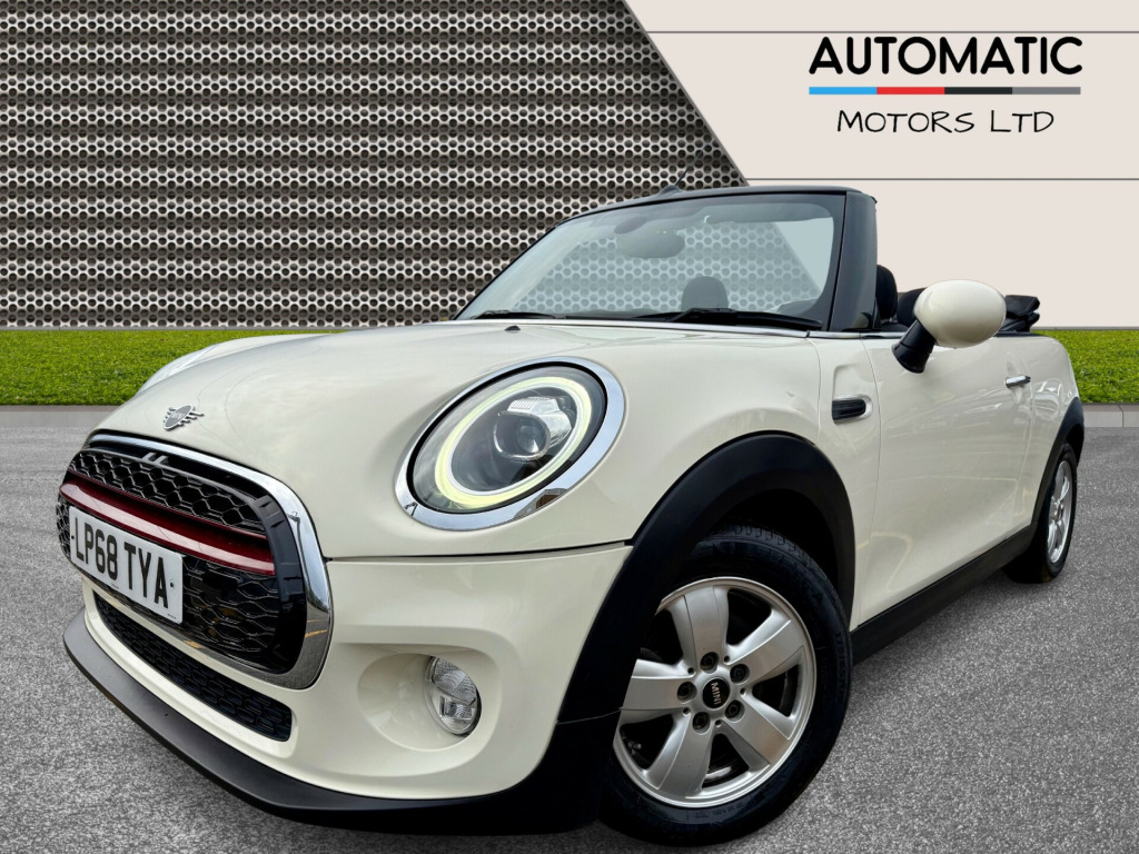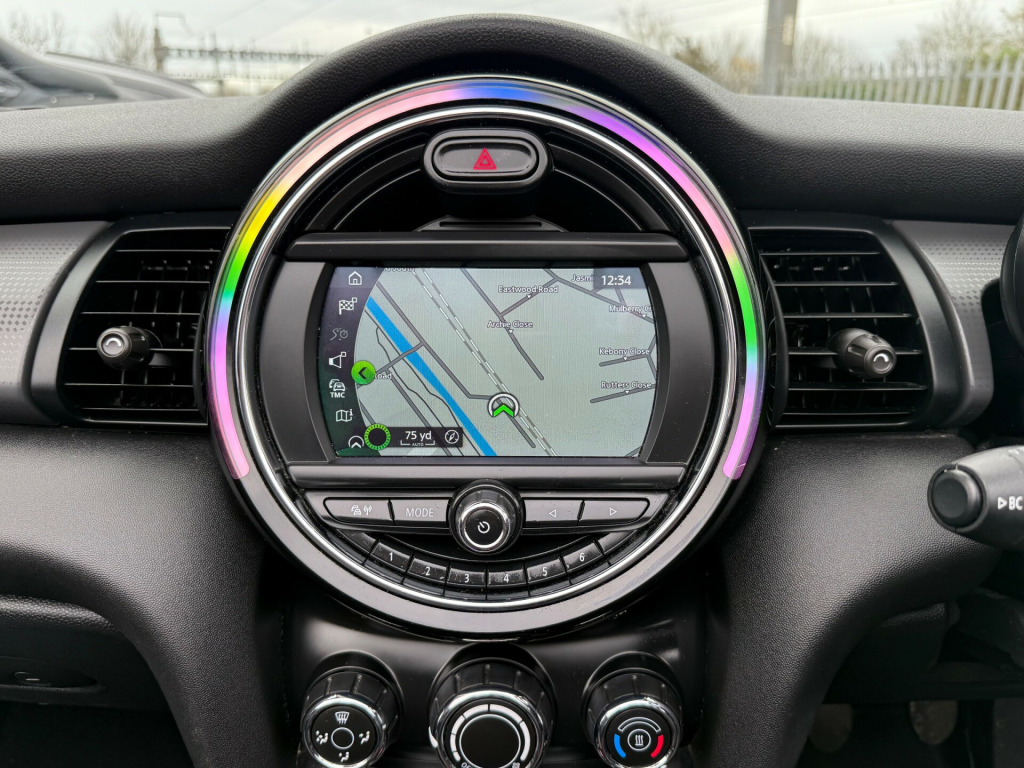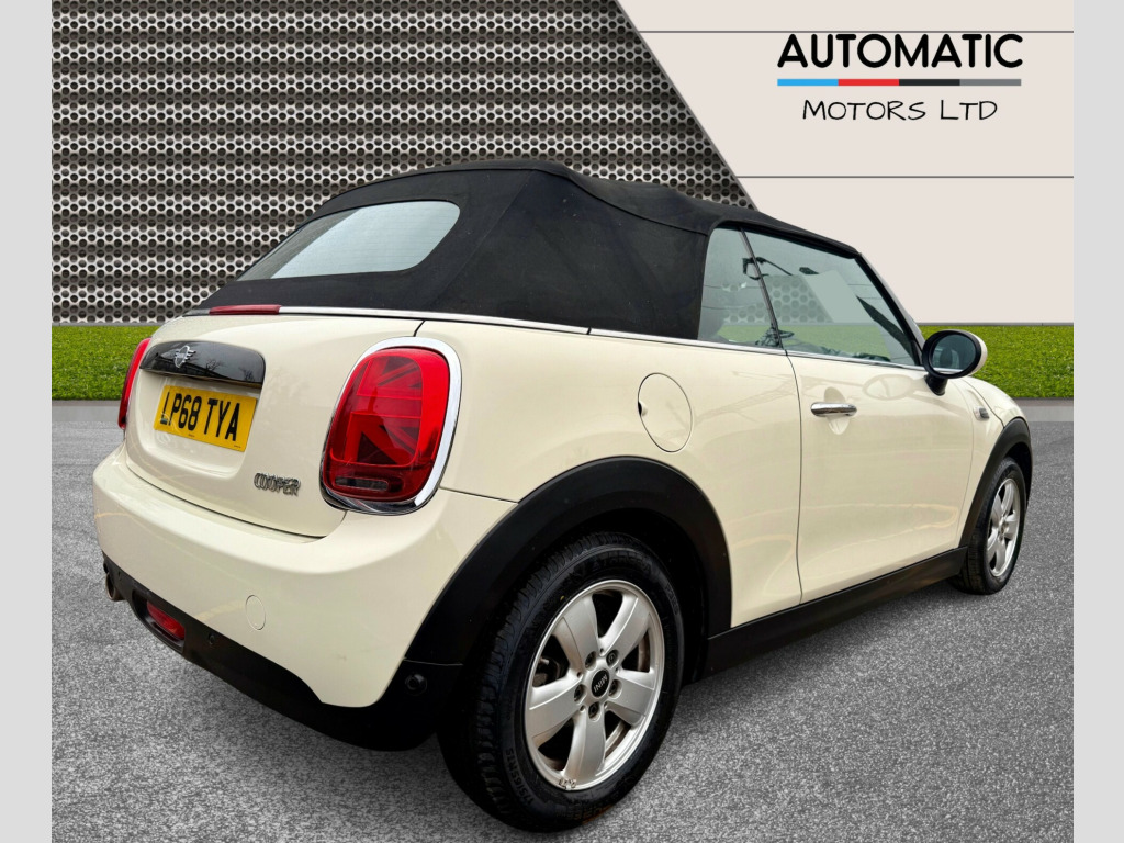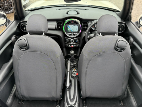 1 OWNER FROM NEW, VAT QUALIFYING, FRESH SERVICE, MOT 07/12/2026, NAVIGATION, BLUETOOTH, PARKING SENSORS, AIR CONDITIONING, volt socket in front centre console, 6.5in screen with led ring, bluetooth for compatible mobile phone with audio streaming, dab tuner and fm tuner, mini e-call, mini teleservices, speakers - 4, 15in alloy wheels - heli spoke, electric windows - front, exhaust tailpipe - left with chrome finisher, fuel filler cap in body colour, fully electric black soft top with integrated sun-roof functionality, heated rear window, heated windscreen washer jets, mirror caps in body colour, model logo cooper on right of tailgate, radiator grille - chrome border with black high-gloss slats, rear fog light, side scuttle panels with integrated indicators, sun-heat protection glass, white indicators, 3 point seatbelts on all seats, active roll-over protection, airbags, alarm system, anti-lock braking system - abs, dynamic brake lights, dynamic stability control - dsc, electronic vehicle immobiliser, front passenger isofix and airbag de-activation switch, rear passenger isofix, single tone fanfare horn, 4 lashing eyes in luggage compartment, air conditioning - manual, carbon black colour line - knee roll and door armrests, chrome highlights, cupholders, door sill strips - metal with mini, easy load function, foldable rear backrest and 50:50 split, glove compartment, instrument cluster, interior lighting, interior trim - hazy grey, keyless go, led reading lights - vanity mirror lights - front foot well lights - spotlights on front seats, leatherette gearshift lever and handbrake gaiters, mechanical seat adjustment - forward-back and backrest for front seats - driver seat height adjust, multifunction controls for steering wheel, rain sensor window wipers, steering column height and length adjustment, steering wheel - 3-spoke, storage - compartments in doors, sun visor with vanity mirrors, tool kit in luggage compartment, electro-mechanical steering with speed dependant steering assistance, gear-change indicator display, on-board computer, pdc - park distance control - rear, tpws - tyre pressure warning system, headlights - automatic lights-on, led headlights with closed ring as daytime driving lights, mini logo projection on floor from drivers exterior mirror, rear led lights with union jack design