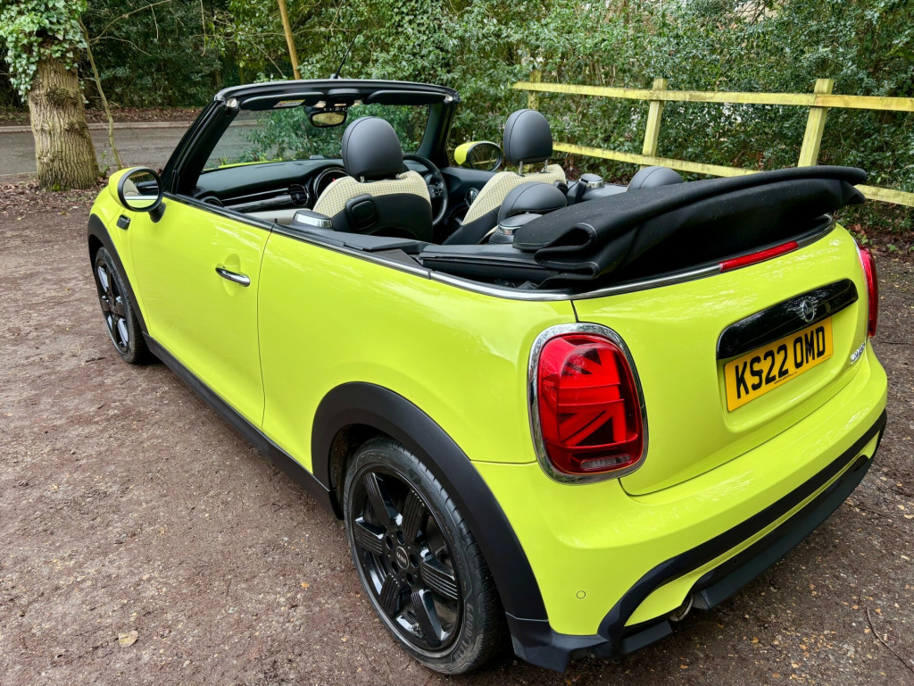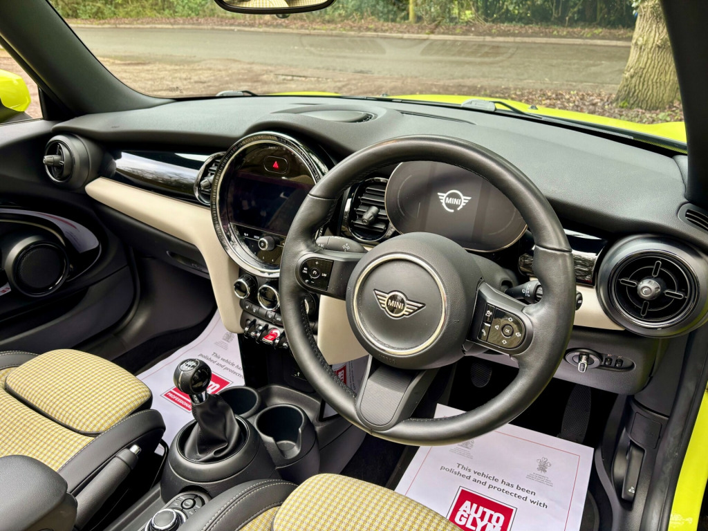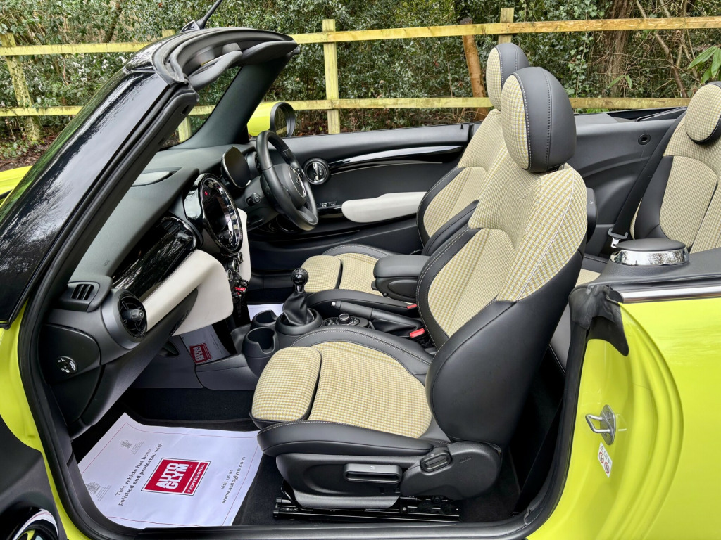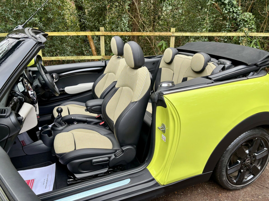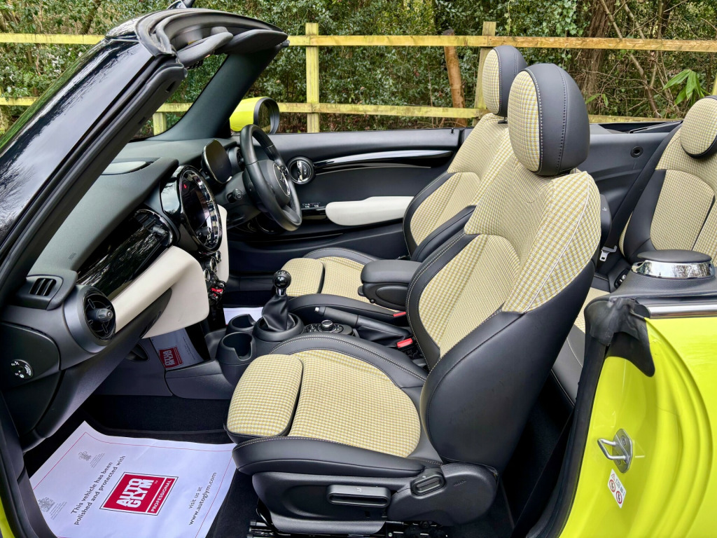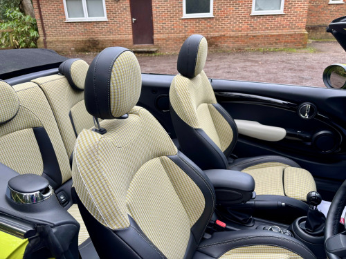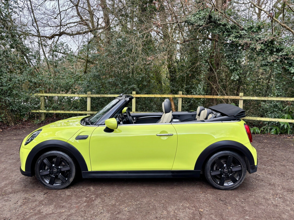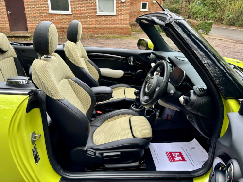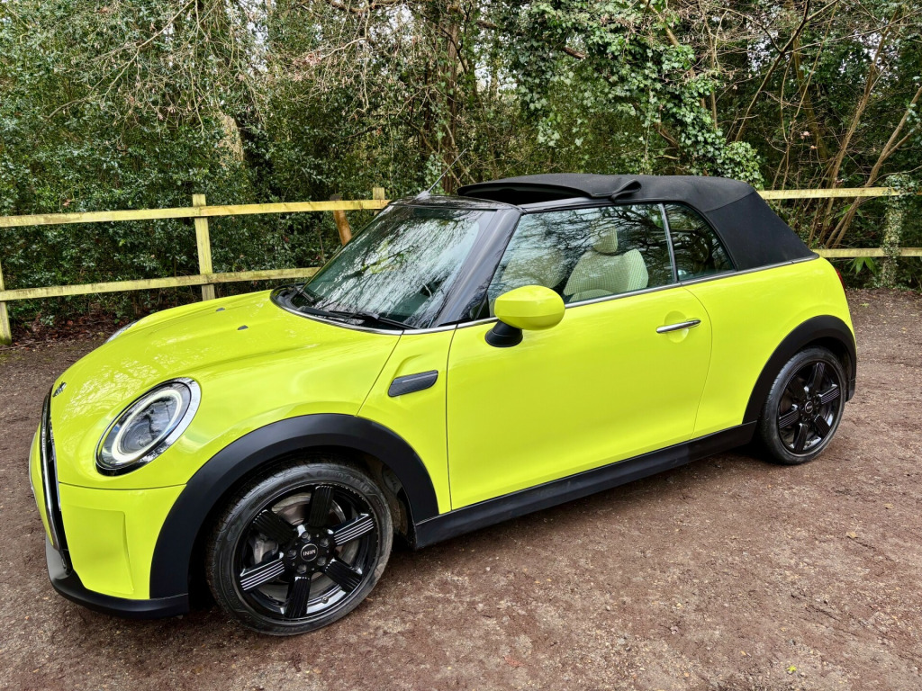 We are pleased to offer this stunning, One owner, Mini Cooper Classic 1.5 Convertible. It is finished in zesty yellow complemented with leatherette/cloth upholstery. This vehicle is supplied with Mini service history, MOT until 26/08/2026 and two keys. We offer a standard 6 month warranty which can be upgraded to a 24 month comprehensive warranty for only £495+VAT. Specification includes: Touch screen satellite navigation, Apple carplay, heated front sports seats, air conditioning, heated steering wheel, 17'' pedal spoke alloy wheels, comfort access, cruise control, wind deflector, comfort package, bluetooth phone preparation, front armrest, electric folding roof, remote central door locking, electric door mirrors, electric windows, alarm system, 6 speed manual transmission, rear parking sensors, folding rear seats, multi function steering wheel. HPI cleared. Euro 6 technology. ULEZ COMPLIANT. NO ADDITIONAL ADMIN FEES. Part exchange welcome. Please read our 5 star Autotrader reviews. WE OPERATE BY APPOINTMENT ONLY. For further information or to arrange an appointment please call us on 07884367167.