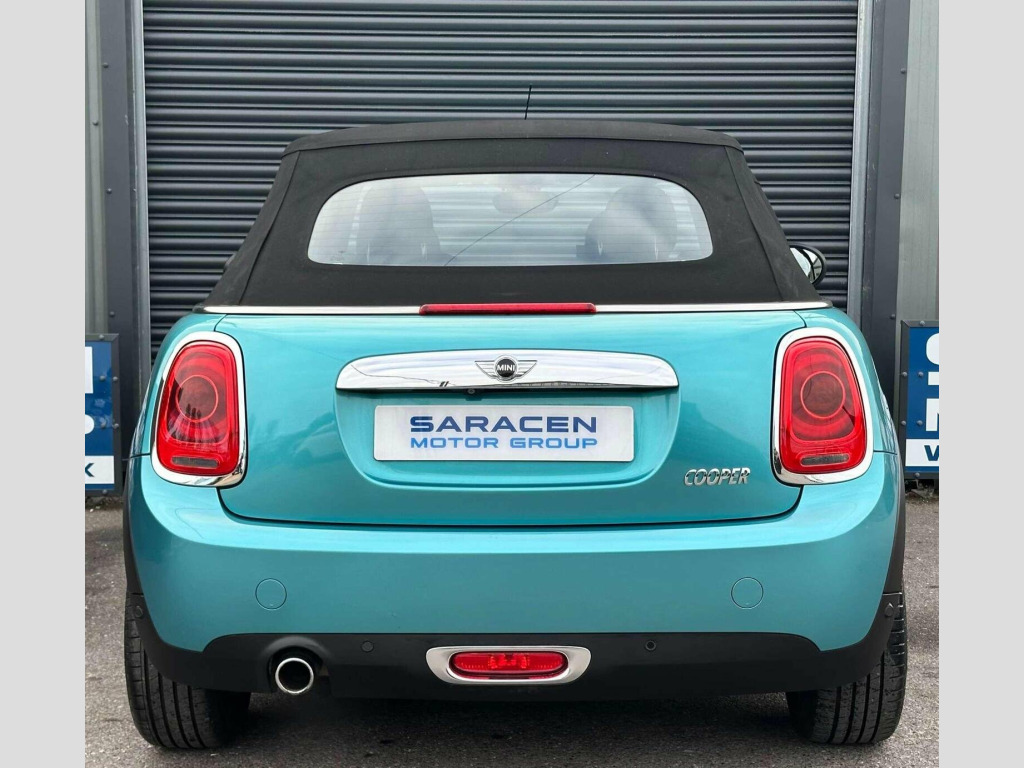 MINI 1.5 Cooper 2dr convertible ULEZ FREE. Finished in Caribbean Aqua blue with a diamond carbon black half leather interior. 17 light propeller spoke alloys, pepper pack, dual zone climate control, chrome line exterior, LED daytime running lights, piano black interior trim, MINI excitement pack, mirror caps in jet black, automatic headlights, heated front sports seats, sports leather multifunction steering wheel, storage compartment, interior light pack, Bluetooth preparation, DAB radio, rear parking sensors, rear view camera, electric heated door mirrors, rear fog lights, heated washer jets, automatic headlights and rain sensing wipers. Here at Saracen Motor Group we have been awarded AA Platinum dealership recognition along with being nominated for best customer service by Autotrader for 2021,2022,2023,2024 & 2025. We are a 5-star dealership with over 600, 5-star reviews across all internet platforms including Autotrader and have been regarded as one of the best dealerships to buy from in the UK. Our preparation inspected each vehicle to the highest level possible for its age and mileage. You can rest assure your next car has been cared for to the highest standard. Service history, V5 and the HPI certificate will all be present on viewing and collection. With our location based in Battlesbridge, Essex you can enjoy a haggle-free buying experience where you can drive away the same day if prior arranged, additional fees apply please see our website for details.