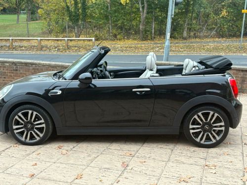 Mini Cooper Convertible Automatic, in Black with Cream Leather Sports Seats, Limited edition Alloy Wheels, Union Jack Roof & Rear Lights, Satellite Navigation, Apple Car Play, Heated Seats, 70,000 Miles with Service History, A Great Example of this Rare Limited Edition Automatic Convertible, HPi Clear, 2 Keys, Warranty, Glenbournes Hampton Court Motor Centre KT8 9AE TEL: 0203 968 0956 or 07836 221295 volt socket in front centre console, 17in alloy wheels - roulette spoke, 3 point seatbelts on all seats, 4 lashing eyes in luggage compartment, 6.5in screen with led ring, air conditioning - manual, airbags, alarm system, anti-lock braking system - abs, bluetooth for compatible mobile phone with audio streaming, carbon black colour line - knee roll and door armrests, chrome highlights, chrome line exterior, chrome line interior, cruise control with brake function, cupholders, dab tuner and fm tuner, door sill strips - metal with mini, dynamic brake lights, dynamic stability control - dsc, easy load function, electric windows, electro-mechanical steering with speed dependant steering assistance, electronic vehicle immobiliser, exhaust tailpipe - left with chrome finisher, foldable rear backrest and 50:50 split, front passenger isofix and airbag de-activation switch, fuel filler cap in body colour, fully electric black soft top with integrated sun-roof functionality, glove compartment, headlights - automatic lights-on, heated rear window, heated windscreen washer jets, instrument cluster, interior lighting, keyless go, led headlights with closed ring as daytime driving lights, led reading lights - vanity mirror lights - front foot well lights - spotlights on front seats, leatherette gearshift lever and handbrake gaiters, mini e-call, mini logo projection on floor from drivers exterior mirror, mini teleservices, mini yours fibre alloy interior trim, mini yours leather steering wheel, mechanical seat adjustment - forward-back and backrest for front seats - driver seat height adjust, mirror caps in body colour, model logo cooper on right of tailgate, multifunction controls for steering wheel, on-board computer, pdc - park distance control - rear, radiator grille - chrome border with black high-gloss slats, rain sensor window wipers, rear fog light, rear led lights with union jack design, rear passenger isofix, roll-over protection system, side scuttle panels with integrated indicators, single tone fanfare horn, speakers - 4, steering column height and length adjustment, storage - compartments in doors, sun visors with integrated vanity mirrors, sun-heat protection glass, tpws - tyre pressure warning system, tool kit in luggage compartment, white indicators, comfort pack, navigation pack, mini yours soft-top, heated front windscreen, 17in alloy wheels - rail spoke, colour line - satellite grey, interior trim - mini yours - piano black illuminated, lounge leather - satellite grey, navigation plus pack