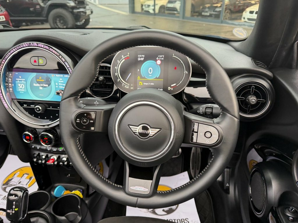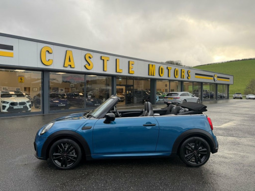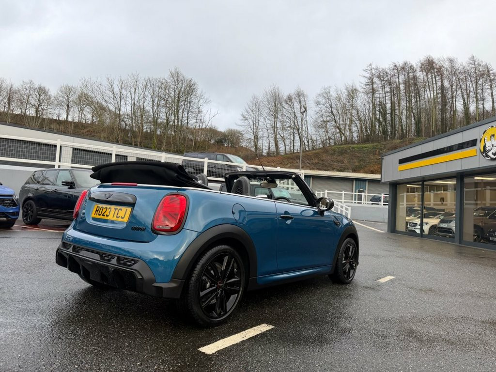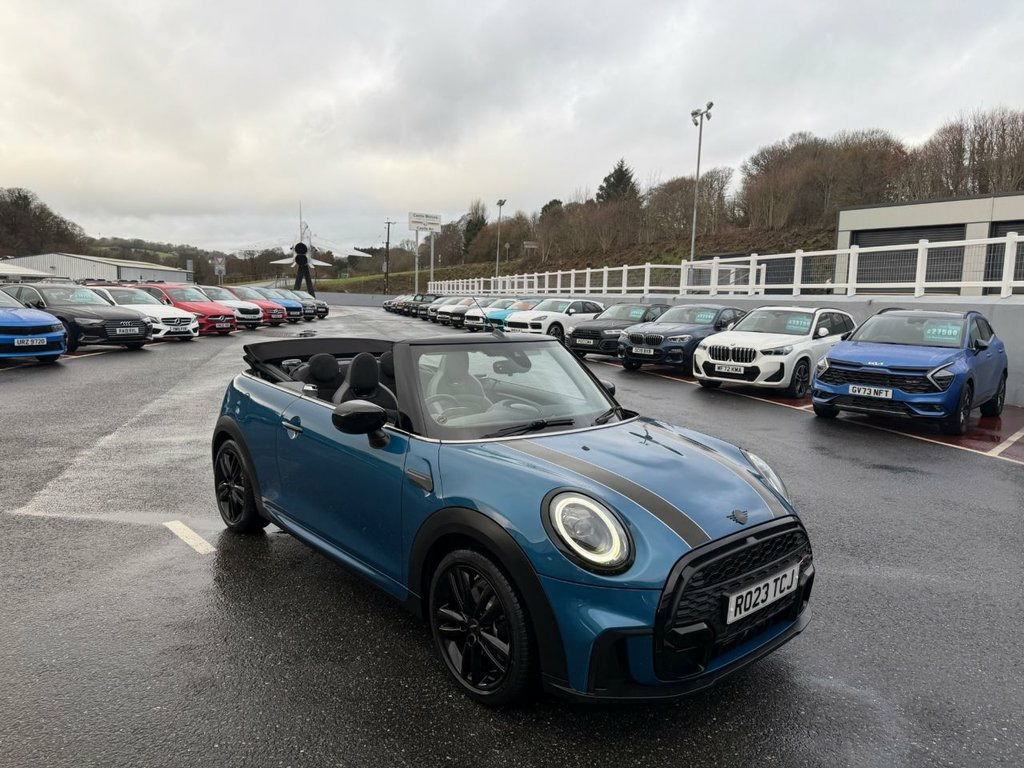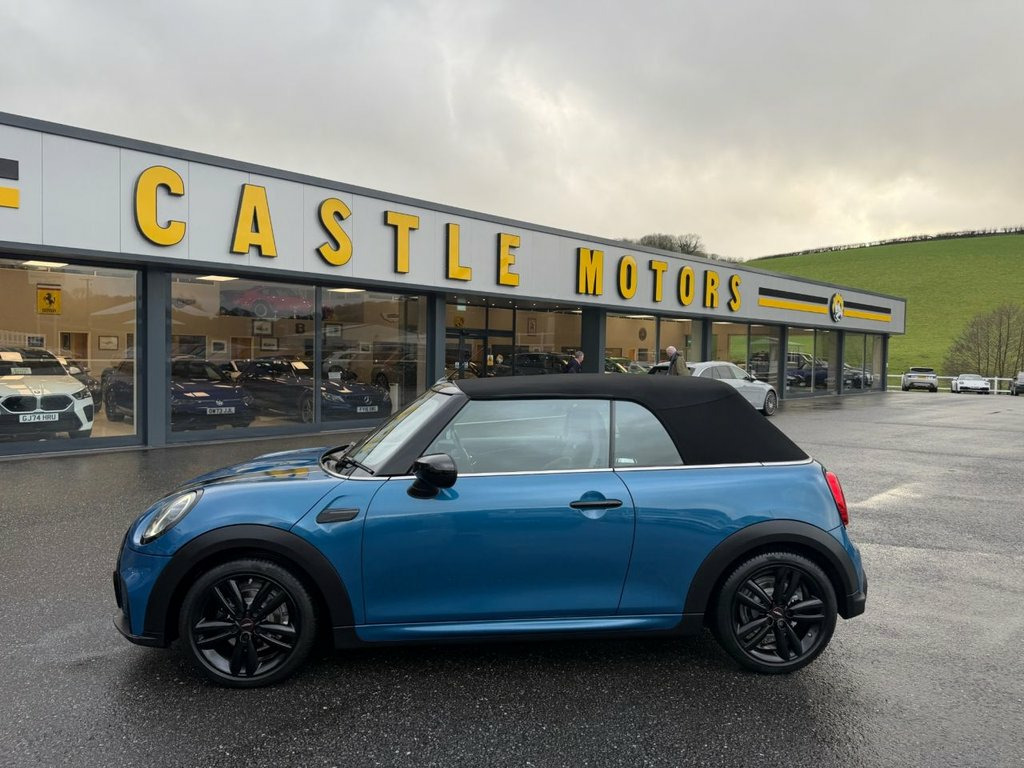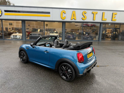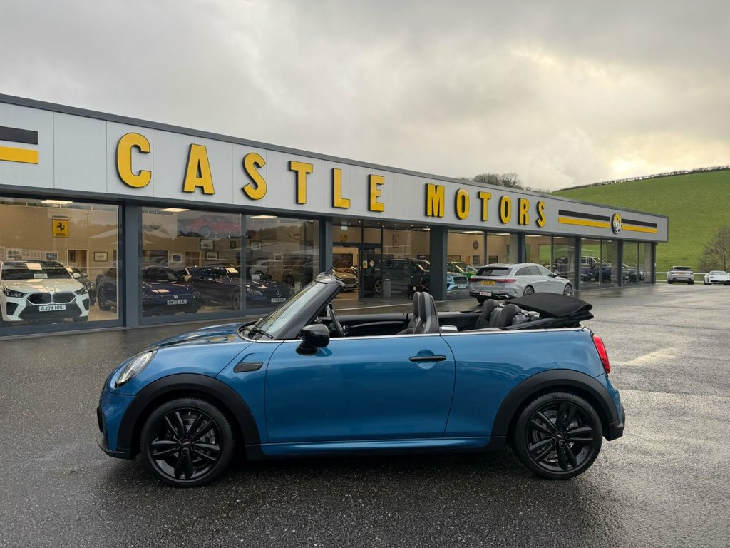 Sport model with JCW John Cooper Works Package. Finished in Metallic Island Blue with Black leather and Alcantara Suede JCW seats, JCW Black wheels, Black Exterior Package, heated seats, JCW multi function steering wheel with paddles, digital dashboard, JCW entry guards, interior ambient lighting, dual climate control AC, Apple CarPlay, Mini Connected, USB, Open Timer and much more. Stunning Mini Convertible covered just 10,500 miles with service history and freshly serviced before sale. Must be seen 12V Socket in Centre Console, 17in Alloy Wheels - John Cooper Works Tr, 3 Point Seatbelts on all Seats, 4 Lashing Eyes in Luggage Compartment, 8.8in Touch Screen with LED Ring, Active Roll-Over Protection, Airbags, Alarm System, Anti-Lock Braking System - ABS, Apple Carplay, Automatic Headlight Activation Switch, Bluetooth for Compatible Mobile Phone wi, Bonnet Stripes - Black, Carbon Black Colour Line - Knee Roll and, Chrome Highlights, Convertible Pack, Cruise Control with Brake Function, Cupholders, Digital Dash, Dinamica-Leather - Carbon Black, Door Storage Compartments, Driver Assistant, Dynamic Brake Lights, Dynamic Stability Control - DSC, Easy Load Function, Electric Windows, Electro