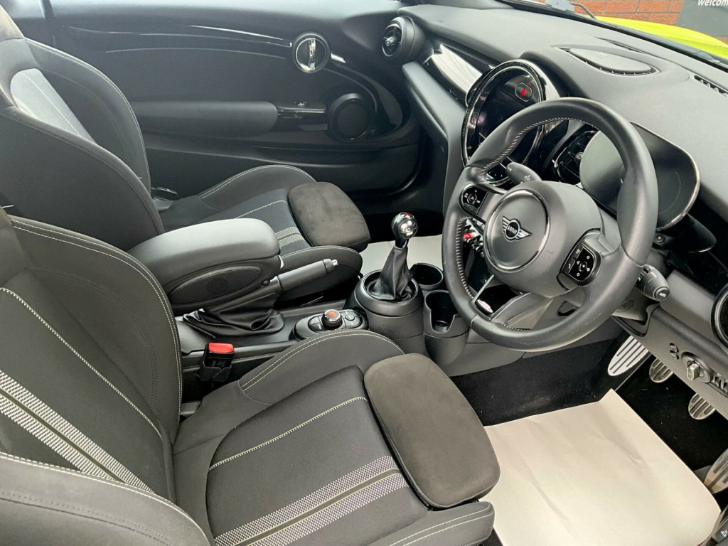 This 2021 MINI Convertible Cooper Sport boasts a full dealership service history, offering you complete peace of mind. This stylish convertible is powered by a 1.5 litre petrol engine and meets Euro 6 emissions standards. It comes with a 6 month warranty for added security. Notable features include the Comfort Pack, which provides climate control and heated seats, perfect for any weather. You'll also benefit from automatic headlights, Bluetooth connectivity with audio streaming, and rear parking sensors to make manoeuvring easier.This MINI Convertible Cooper Sport offers excellent running costs, achieving an impressive 47 miles per gallon. Its low CO2 emissions also highlight its efficiency compared to similar vehicles. The manual air conditioning ensures a comfortable cabin environment, and the combination of these features makes this a well equipped and economical choice for open top motoring.. 12 Volt Socket in Front Centre Console, 17in Alloy Wheels - John Cooper Works Track Spoke, 3 Point Seatbelts on all Seats, 4 Lashing Eyes in Luggage Compartment, 8.8in Touch Screen with LED Ring, Active Roll-Over Protection, Adaptive Suspension, Air Conditioning - Manual, Airbags, Alarm System, Anti-Lock Braking System - ABS, Bluetooth for Compatible Mobile Phone with Audio Streaming, Carbon Black Colour Line - Knee Roll and Door Armrests, Chrome Highlights, Convertible Pack, Cruise Control with Brake Function, Cupholders, DAB Tuner and FM Tuner, Door Mirrors - Caps in Black, Dynamic Brake Lights, Dynamic Stability Control - DSC, Easy Load Function, Electric Windows - Front, Electro-Mechanical Steering with Speed Dependant Steering Assistance, Electronic Vehicle Immobiliser, Exhaust Tailpipe - Left with Chrome Finisher, Folding Rear Seats - 50-50, Front Passenger ISOFIX and Airbag De-Activation Switch, Fuel Filler Cap in Body Colour, Fully Electric Black Soft Top with Integrated Sun-Roof Functionality, Gear-Change Indicator Display, Glove Compartment, Headlights - Automatic Lights-On, Heated Rear Window, Heated Windscreen Washer Jets, Instrument Cluster, Interior Lighting, Interior Surface - Hazy Grey, Interior Trim - Piano Black, John Cooper Works Aerodynamic Kit, John Cooper Works Sport Seats, Keyless Go, LED Headlights with Closed Ring as Daytime Driving Lights, LED Reading Lights - Vanity Mirror Lights - Front Foot Well Lights - Spotlights on Front Seats, Leatherette Gearshift Lever and Handbrake Gaiters, MINI Driving Modes, MINI E-Call, MINI TeleServices, Mechanical Seat Adjustment - Forward-Back and Backrest for Front Seats - Driver Seat Height Adjust, Model Logo Cooper on Right of Tailgate, Multifunction Controls for Steering Wheel, On-Board Computer, PDC - Park Distance Control - Rear, Performance Control, Piano Black Exterior Trim, Radiator Grille - Chrome Border with Black High-Gloss Slats, Rain Sensor Window Wipers, Rear Fog Light, Rear LED Lights with Union Jack Design, Rear Passenger ISOFIX, Side Scuttle Panels with Integrated Indicators, Single Tone Fanfare Horn, Speakers - 4, Steering Column Height and Length Adjustment, Storage - Compartments in Doors, Sun Visor with Vanity Mirrors, Sun-Heat Protection Glass, TPWS - Tyre Pressure Warning System, Tool Kit, Walknappa Leather Steering Wheel with Grey Seam - John Cooper Works Badge on Piano Black Lower Steering Wheel Spoke, White Indicators, Comfort Pack, Mirror Caps in Body Colour, Dinamica-Cloth - Carbon Black, Heated Seats. Full dealership history