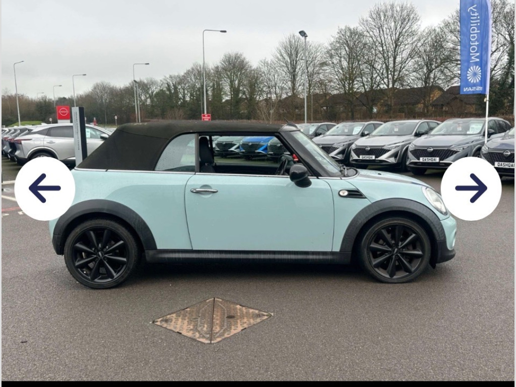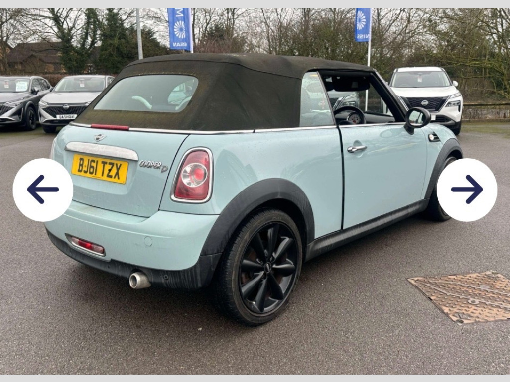 ARRIVING LATE THIS WEEK THIS REALLY RARE COLOUR AND ONE OF THE BEST IN A LIGHT BABY BLUE , THIS BEAUTIFUL 2011/61 MINI COOPER D 1.6 CONVERTIBLE WITH CHILLI PACK , HALF LEATHER INTERIOR, BLUETOOTH, USB , MINI CONNECTED , ALSO HAS MEDIA PACK AND RADIO BOOST SYSTEM , POWER HOOD ETC TOO MUCH TO LIST , HAS ONLY 2 PREVIOUS OWNERS WITH A FULL HISTORY UPTO LATE 2022 , PLUS WE WILL SO NEW MOT AND SERVICE AND GIVE YOU 12 MONTHS WARRANTY ALL INCLUDED AT POINT OF SALE , SO BEAT THE SUMMER RUSH GUYS SND RESERVE THIS LOVELY UNIQUE RARE COLOUR EXAMPLE SO YOU CAN GO ROOFLESS THIS SUMMER IN STYLE BUT BE QUICK AS THIS WILL DEFINITELY BE SOLD QUICKLY !!Ran cars and commercials limited in alloy wheels - light 7-hole, door mirrors - electrically adjustable, electric windows - front - one touch up and down, electric windows - one touch up and down front and rear, heated mirrors and windscreen washer jets, heated rear window with automatic deactivation, mini mobility system, soft-top with fully automatic electric actutation with continuously variable sunroof function, air conditioning - manual, car jack, cupholders - two in front, interior world - carbon black, non smoker package, seats - height adjustable drivers, steering column height and length adjustment, airbags - driver, airbags - front passenger, airbags - front passenger with deactivation switch, airbags - head, airbags - head and thorax, alarm - thatcham cat1, anti-lock braking system - abs, central locking - remote, child seat isofix attachment, crash sensor - fuel cut-off, dynamic stability control - dsc, ebd - electronic brake-force distribution, hill assist, remote controlled alarm system, roll-over protection system, second radio remote key, aux-in connection, dab tuner, radio boost cd, brake energy regeneration- igr, electronic power steering - speed related, pdc - park distance control - rear, tpws - tyre pressure warning system, halogen lights for low beam and high beam headlights