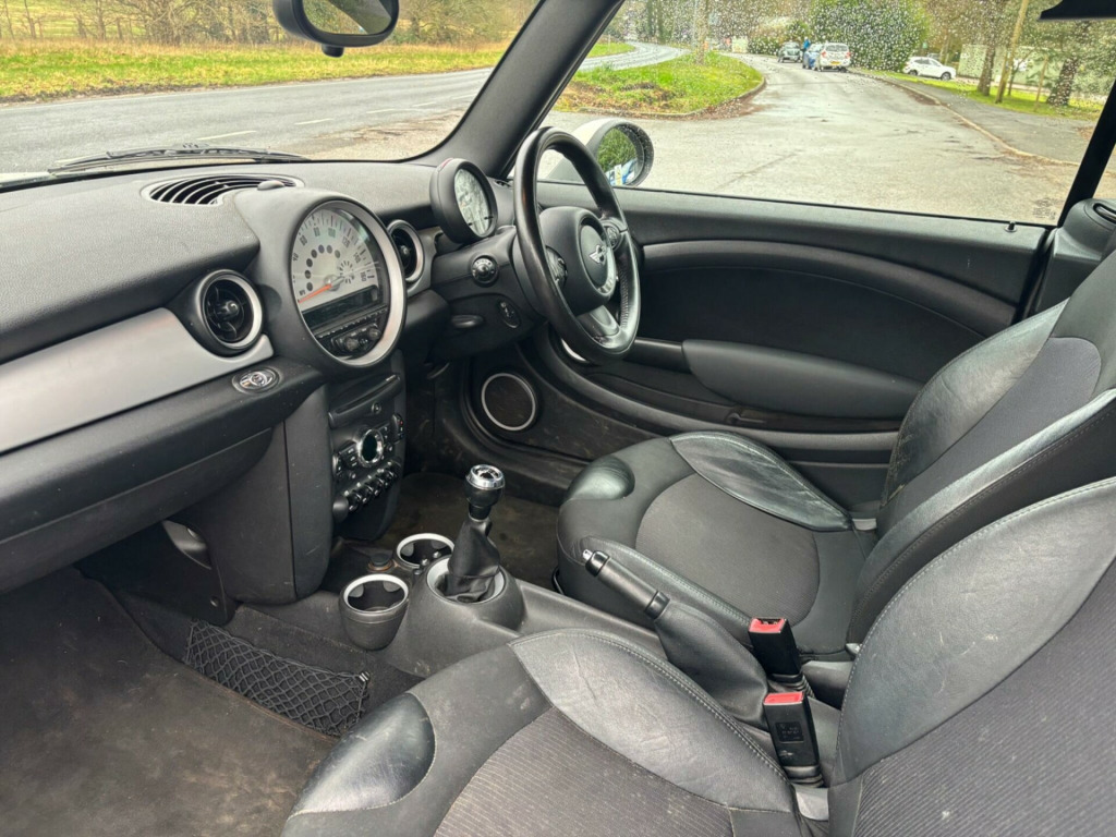 This 2011 MINI Convertible Cooper D offers excellent value with its MOT valid until February 2027 and a clear vehicle history check. Powered by a 1.6L Diesel Engine, this Cooper D variant boasts low mileage for its age at just 87,000 miles and has had only 3 owners. Inside, you'll find a 3 Spoke Sports Leather Steering Wheel and gear knob, complemented by an Interior Lights Pack for the Cooper and Cooper S models. Enjoy your journeys with Bluetooth telephone preparation and a USB Audio interface, while the Auto Air Conditioning with a cooled glovebox ensures comfort. The car sits on attractive 16in 6 Star Twin Spoke Light Alloy Wheels.This MINI Convertible Cooper D is presented with a partial service history and comes with a 3 month warranty for your peace of mind. Its low insurance group rating is a notable highlight, suggesting lower running costs compared to similar vehicles. The combination of its well maintained status, desirable features, and economical diesel engine makes this a compelling choice for anyone seeking a stylish and practical convertible. uetooth telephone preparation with usb audio interface, 16in 6 star twin spoke light alloy wheels, basic bluetooth function with usb audio, auto air conditioning with cooled glovebox, front sports seats, 3spoke sports leather steering wheel & gear knob, front foglights, colour line- carbon black, colour line - carbon black, chrome line exterior, interior lights pack- cooper & cooper s, leather cloth mix- cloth & ray leather- carbon black, 15in 5 star spooler light alloy wheels, 2spoke steering wheel, 6 speakers, black mirror caps, body colour door mirrors, fine white silver interior trim, interior world- carbon black, interior world- carbon black with gravity leather, interior world- polar beige, light alloy wheels & mirror caps- white, mini mobility system, manual air conditioning with cooled glovebox, model designation deletion, no smoker package, piano black interior trim with gravity & lounge leather, sensatec gearshift & handbrake, soft top- black, telephone usb audio interface, voice control system when with bluetooth