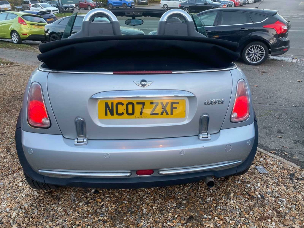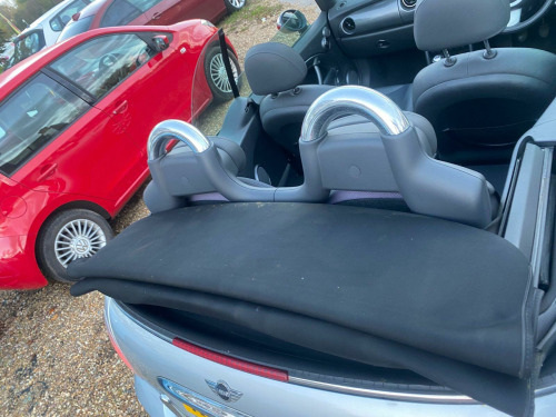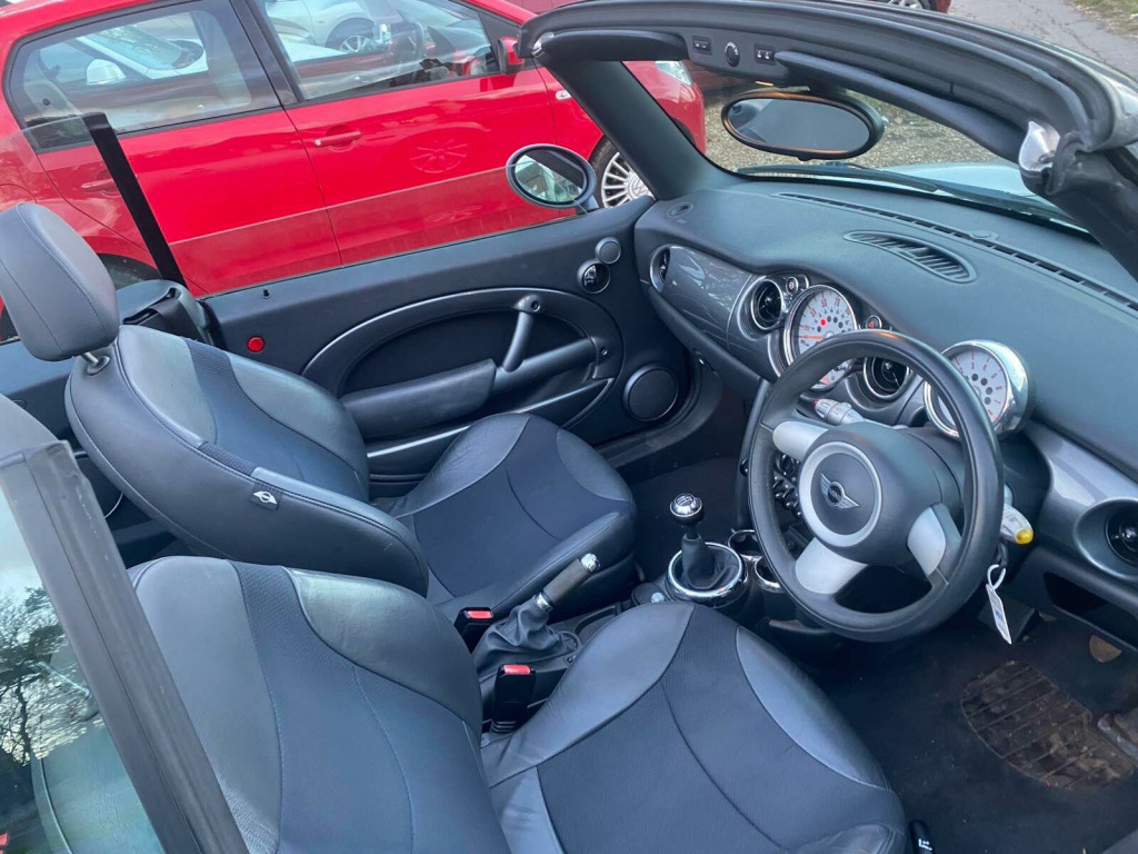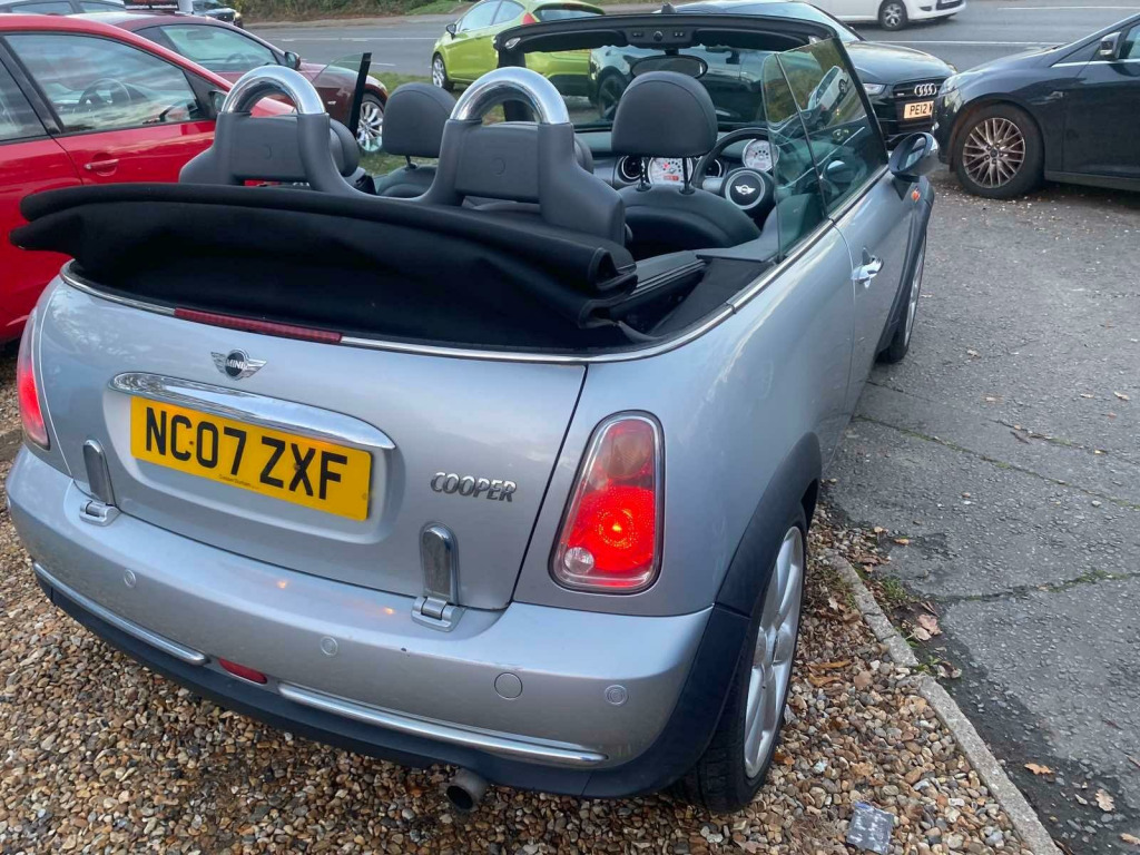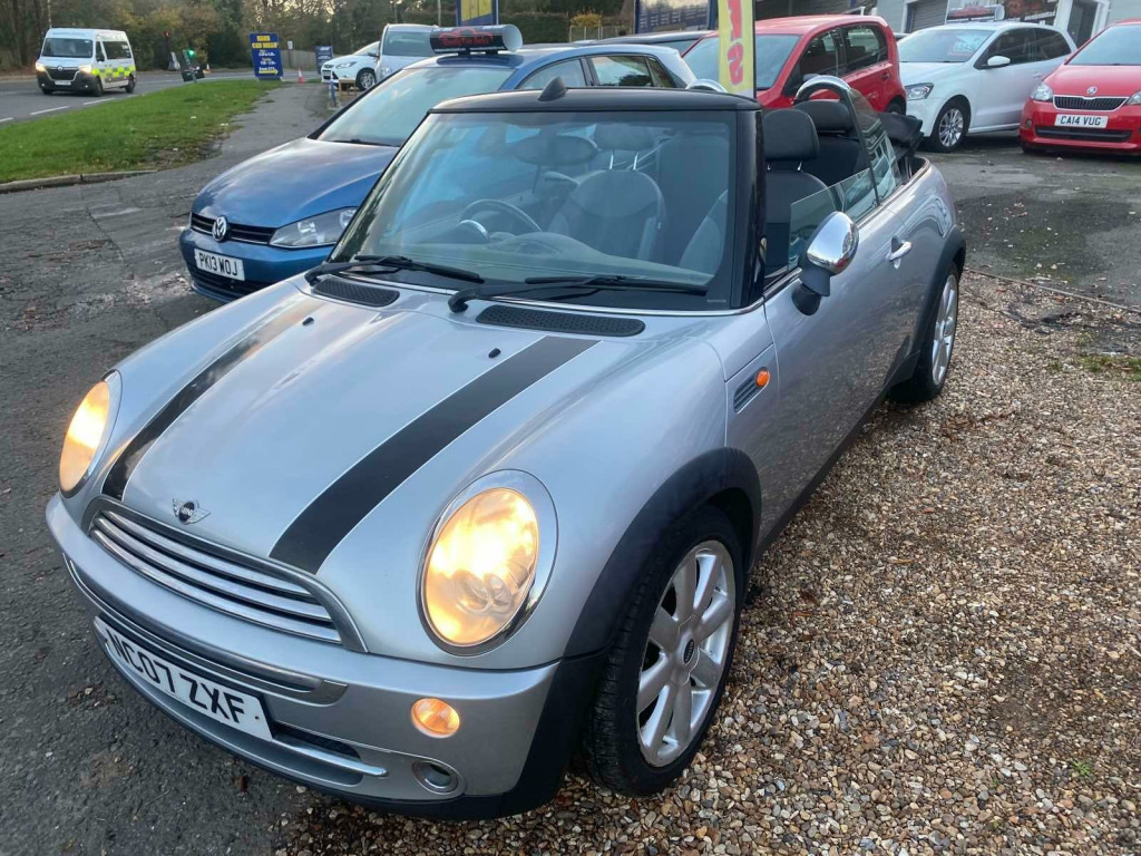 THE CAR HAS GOT AIR CON,RADIO CD,This 2007 MINI Convertible Cooper boasts a full service history and an MOT valid until June 2026, offering peace of mind for its next owner. This stylish Cooper variant features a 1.6 litre petrol engine and has had only four owners from new, with a clear vehicle history check confirming its sound condition. It comes equipped with manual air conditioning, 17 inch Crown Spoke light alloy wheels, and front sports seats upholstered in a leather cloth mix in Panther Black with lumbar support, all part of the desirable Chili Pack.This MINI Convertible Cooper offers excellent running costs, highlighted by an impressive fuel economy of 39 miles per gallon. Its low CO2 emissions and low insurance group rating further indicate that this vehicle is more economical to run than many similar cars. The last service was completed on 16th May 2025 at 78,755 miles, ensuring it is well maintained and ready for many more enjoyable journeys. ili pack cooper, chili pack with sports suspension cooper, 17in crown spoke light alloy wheels, manual air conditioning, front sports seats, 3spoke sports leather steering wheel, radio boost, chrome line exterior, chrome line interior, front foglights, interior lights package, bonnet stripes- black, chromed door mirror caps, mini storage compartment pack, leather cloth mix- octagon- panther black & lumbar support, 15in 5 star rocket alloy wheels, 15in 7 hole alloy wheels, 16in 7spoke fin alloy wheels when with chilli pack, 16in bridge spoke alloy wheels when with chilli pack, 2spoke steering wheel, anthracite interior trim, anti dazzle rear view mirror, black hood, blue hood, body colour door mirrors, brilliant silver interior trim when with chilli pack, brilliant silver interior trim when with pepper pack, cd changer i- bus preparation, cassette player, dark green hood, delete cooper badge, light alloy wheels & mirror caps- white, no smoker package, radio wave, single cd player, smoker pack, soft top hood- dark blue, soft top hood- dark green, sport suspension - when with chili pack, tyre repair kit with tyre sealant & 12v c & pressor