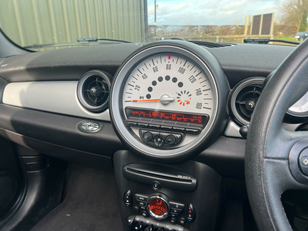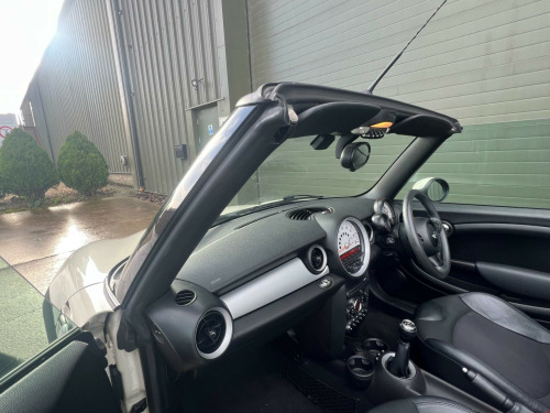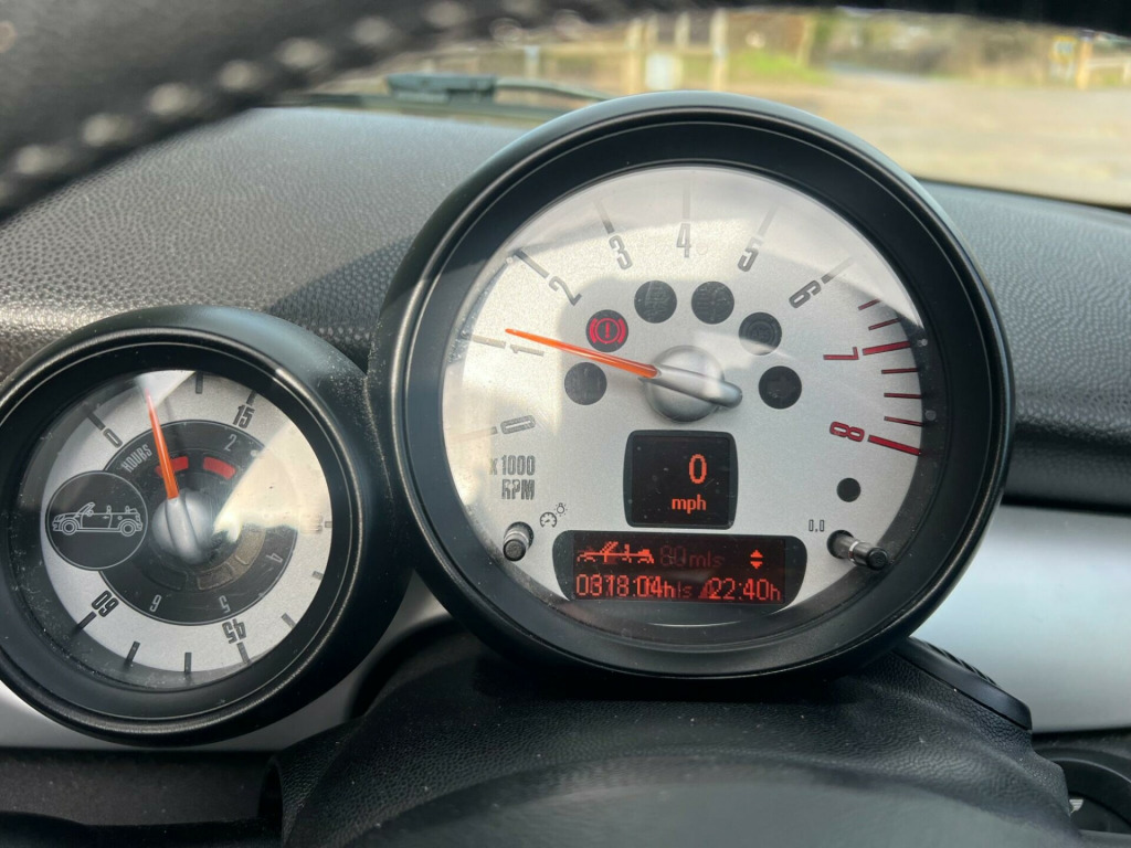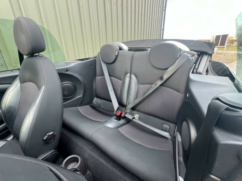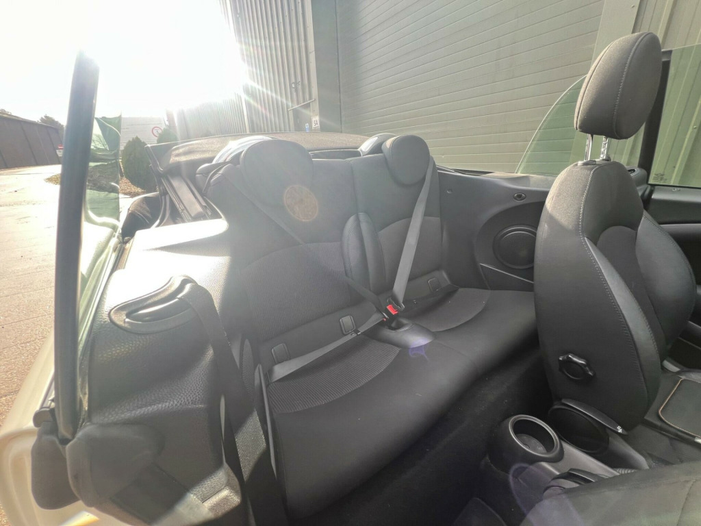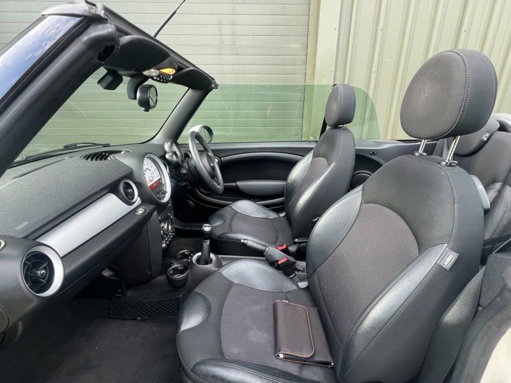 . 15in Alloy Wheels - Light 7-Hole, 3rd Brake Light, 6 Speakers System, ASC+T - Automatic Stability Control and Traction, Air Conditioning - Manual, Airbags - Driver, Airbags - Front Passenger, Airbags - Front Passenger with Deactivation Switch, Airbags - Front Side, Airbags - Head, Anti-Lock Braking System - ABS, Automatic Door Window Lowering by Approx 6mm When Door Opens, Aux-In Connection, Body Coloured Fuel Filler Cap in Rear Right Side Panel - Linked to Central Locking, Brake Assist, Brake Force Display, Brake Pad Wear Indicator, CBC - Cornering Brake Control, Car Jack, Central Locking - Remote, Child Seat ISOFIX Attachment, Chrome Strip Across Lower Front Apron, Cooled Glovebox, Crash Sensor - Fuel Cut-Off, Crash Sensor - Hazard Warning Flashers and Interior Light, Crash Sensor - Unlocking Doors, Cupholders - Front x2 - Rear x1, DAB Tuner, Decorative Rings Surrounding Dashboard Instruments, Door Handles - Chrome Plated, Door Handles - Interior - Chrome Plated, Door Mirrors - Electrically Adjustable and Heated, Door Sill Finishers - Metal Look and Model Dependent Lettering, Dynamic Stability Control - DSC, EBD - Electronic Brake-Force Distribution, Easy Load Function, Electric Windows - Front - One Touch Up and Down, Electronic Power Steering - Speed Related, Electronic Vehicle Immobiliser, Embellisher at Bottom Edge of All Windows - Chrome Plated, Exhaust Tailpipe - Visible - Single - Right with Chrome Finisher, Gearshift-Selector Lever and Handrake Lever Gaiters in Sensatec, Glovebox - Lockable, Halogen Lights for Low Beam and High Beam Headlights, Handbrake-lever grip - plastic with chrome plated handbrake push button, Headlight - Beam-Throw Control Electrical with Manual Adjustment, Headlights - Chrome Bezels, Headlights - Follow Me Home, Headrests For All Seats - Manually Adjustable, Heated Front Windscreen Washer Jets, Heated Rear Window with Automatic Deactivation, Heater with Mechanical Control and Recirculating-Air Button, Hill Assist, Interior Lighting Integrated into Centre Front Headliner Above Interior Mirror, Interior Mirror - Mechanical Anti-Dazzle, Interior Surface in Fine White Silver and Door Rings in Black, Interior World - Carbon Black, Knee Roll - Hard Plastic in Dark Grey, Knee Roll in Hard Plastic on Dashboard in Carbon Black, Lashing Eyes in Luggage Compartment, Luggage Compartment - Light, MINI Mobility System, Microfilter, Multiple Control Arm Rear Axle, Non Smoker Package, Orange Indicators, PDC - Park Distance Control - Rear, Personal Profile, Radio BOOST CD, Remote Controlled Alarm System, Rev Counter, Roll-Over Protection System, Seats - Drivers Memory Function, Seats - Easy Entry Access, Seats - Height Adjustable Drivers, Second Radio Remote Key, Security Locking Wheel Bolts, Side Air Inlets Black with Integrated Orange Indicator, Sills-Bumper Edges-Wheel Arches - Black with Model-Specific Bumper Trims, Single Joint Spring Strut Front Axle, Soft-Top Black, Soft-Top with Fully Automatic Electric Actutation with Continuously Variable Sunroof Function, Speedometer Centred in Instrument Panel, Steering Column Height and Length Adjustment, Steering Wheel - 2-Spoke Plastic, Storage Options in the Trim Panels of Each Front Panel as well as Centre Console, Sun Visors with Integrated Vanity Mirrors on Drivers and Passengers Sides, TPWS - Tyre Pressure Warning System, Tailgate Handle - Chrome Plated, Tailgate With Low Loading Sill-Maximum Load-Bearing Capacity 80 kg, Tool Kit in Luggage Compartment, CHILI Pack, 17in Alloy Wheels - Light Conical Spoke, Convertible Pack, Air Conditioning - Automatic, Seats - Sports Front, Seat Heating for Driver and Front Passenger, 3-Spoke Sport Leather Steering Wheel, Wind Deflector, Multifunction Controls for Steering Wheel, Front Fog Lights, Colour Line - Carbon Black, Chrome Line Exterior, Interior Light Pack, Rain Sensor and Automatic Headlight Activation, White Direction Indicators Lights, Mirror Caps in Body Colour, Cloth-Leather Ray - Carbon Black. Full service history
