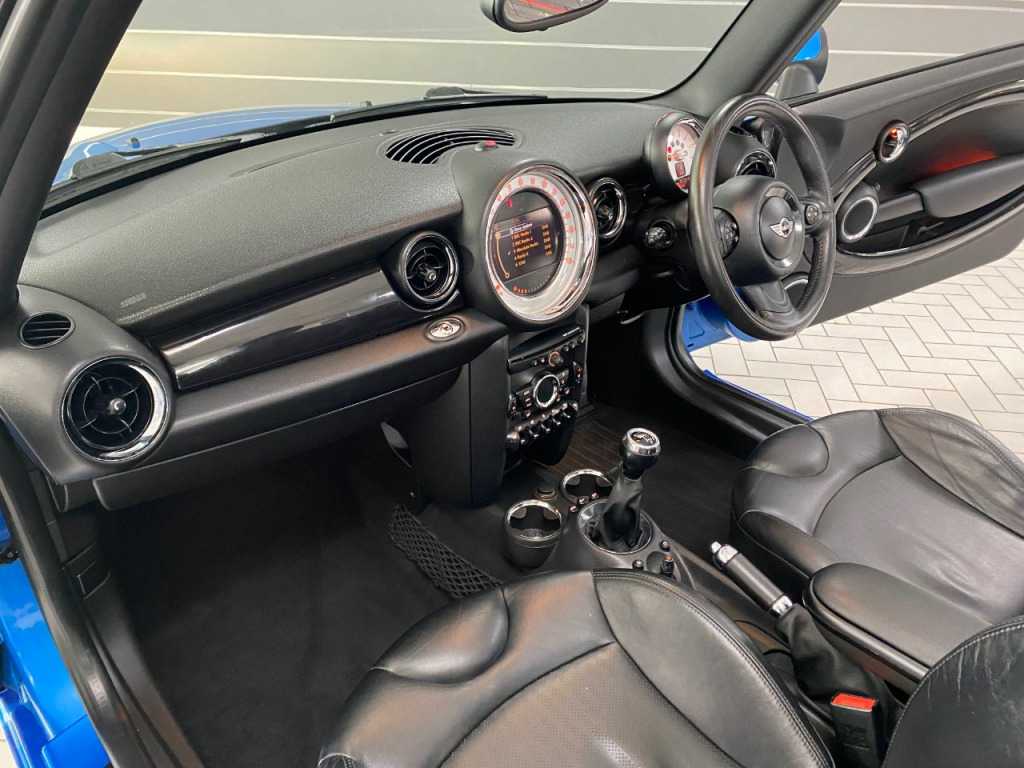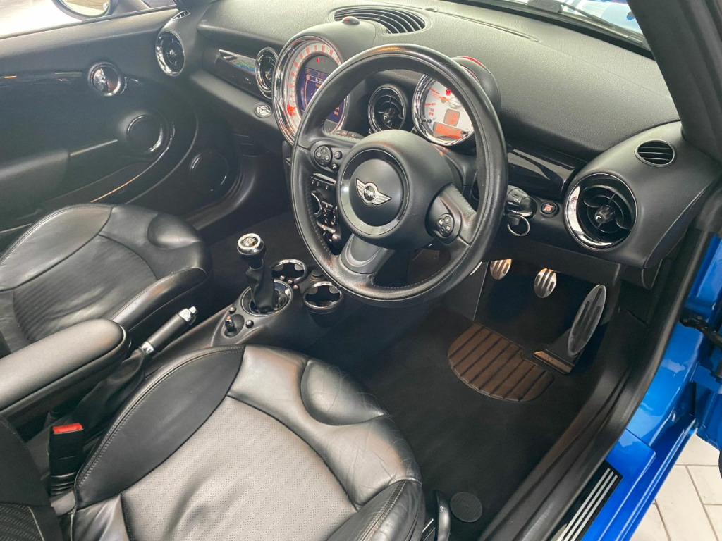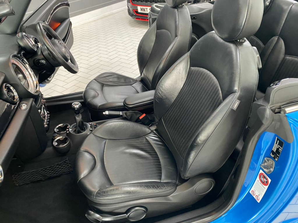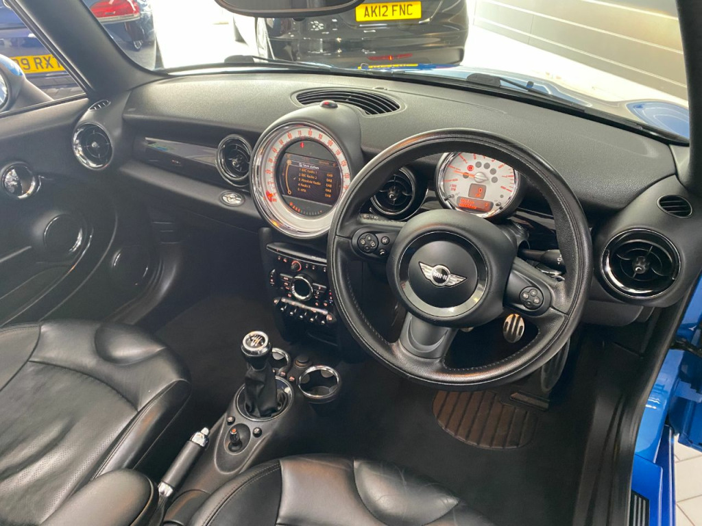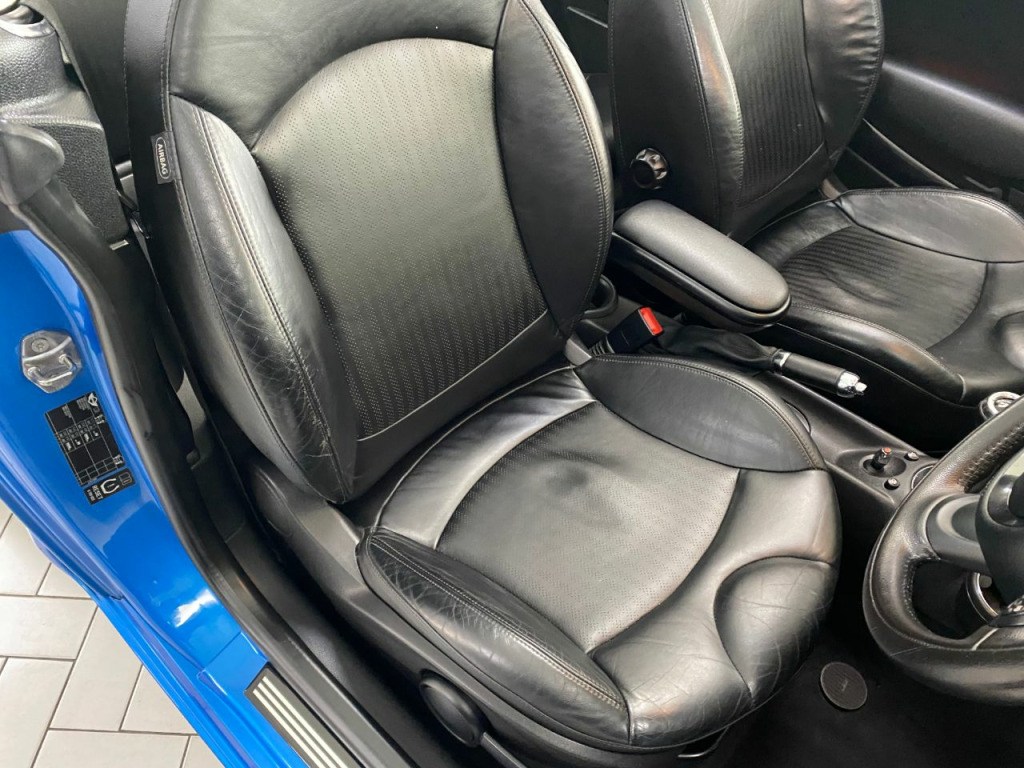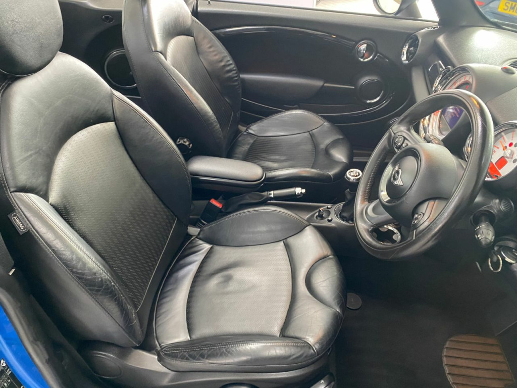 Very nice example with full history and high spec, JCW side skirts, full leather with heated front seats, climate control, Sat-Nav and Bluetooth, DAB radio,CD, 17" alloys, Xenon with wash, rear parking sensors, cruise, front arm rest, auto stop/start, full power hood, 4 electric windows, electric mirrors,, traction control, leather multi function steering wheel, 2 keys, for lights, any inspection more than welcome, 6 months warranty FREE.