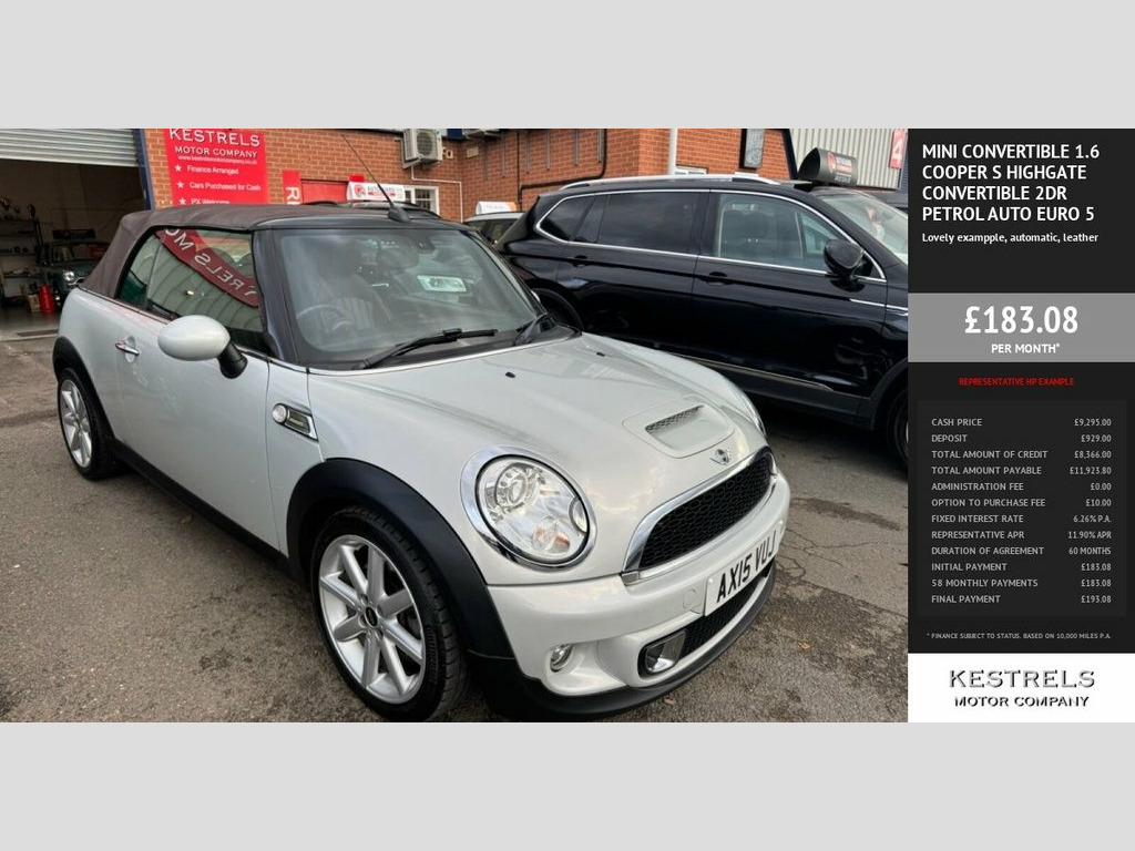 This 2015 MINI Convertible 1.6 Cooper S Highgate Convertible 2dr Petrol Auto Convertible is currently available for £9,295 in Halstead Essex with Petrol engine and Automatic gearbox. For more information or to arrange a viewing, click here to send us an email using form below.