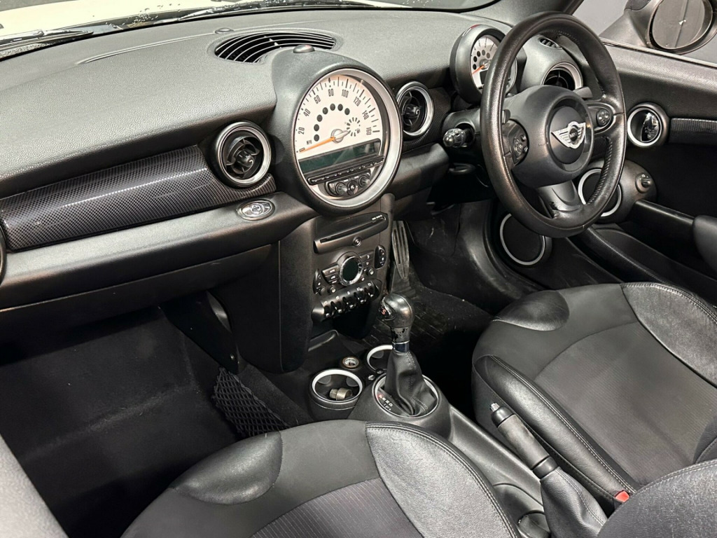 This 2011 MINI Convertible Cooper S offers a thrilling driving experience with its sporty Cooper S trim and a lively 1.6L petrol engine. Finished in a classic colour scheme, this model features striking black bonnet stripes and sleek black alloy wheels, perfectly complementing its iconic MINI design. Inside, you'll find comfortable Cloth Leather Ray upholstery in Carbon Black, a 3 spoke sports leather steering wheel and gear knob for an engaging feel, and powerful Bi Xenon headlights for excellent visibility.This MINI Convertible Cooper S is designed for enjoyment and efficiency, achieving an impressive fuel economy of 43 miles per gallon. Its low CO2 emissions further highlight its appeal as a more environmentally conscious choice compared to many other vehicles in its class. This combination of performance, style, and economy makes it a compelling option for those seeking a versatile and fun convertible. in alloy wheels - light conical spoke, headlights - bi-xenon, basic bluetooth function with usb audio, air conditioning - automatic, multifunction controls for steering wheel, front fog lights, colour line - carbon black, interior light pack, alloy wheels in black, bonnet stripes - black, cloth-leather ray - carbon black, 16in rib spoke light alloy wheels, 3spoke sports leather steering wheel & gear knob, 3spoke sports leather steering wheel with gearshift paddles, 6 speakers, black mirror caps, body colour door mirrors, chequered interior trim, interior world- carbon black, interior world- carbon black with gravity leather, interior world- polar beige, light alloy wheels & mirror caps- white, mini mobility system, manual air conditioning with cooled glovebox, model designation deletion, no smoker package, piano black interior trim with gravity & lounge leather, soft top- black, telephone usb audio interface, voice control system when with bluetooth