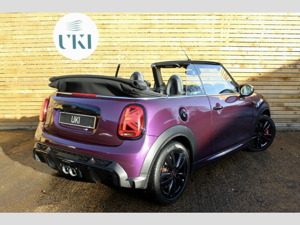 Strictly appointment only, 2025 Autotrader highly rated award winner, Low rate finance available, Nationwide delivery offered. , UKI (Sudbury) Limited are pleased to offer this stunning 2022 (72) Mini Convertible John Cooper Works for sale presented in Twilight purple. This one owner Mini Convertible is originally Chili red underneath the Twilight Purple wrap. A striking one of a kind John Cooper Works with full Mini main dealer service history. This Mini Convertible is also VAT Qualifying. , There is a huge specification on this Mini Convertible which incudes - Driving assistance pack, Adaptive cruise control, Lane keeping assist, Navigation plus pack, Comfort plus pack, Comfort access, Harman Kardon audio, Satellite navigation, Bluetooth telephone and media, DAB radio, Apple CarPlay, Front and rear parking sensors, Park assist, Reverse camera, Wind deflector, LED headlights, Automatic high beam assist, Gloss black exterior trim, Electric folding door mirrors, Leather/Alcantara Recaro sports seats, Heated front seats, Ambient lighting, Front centre armrest, Wireless phone charging, 17 Track spoke alloy wheels in gloss black, Head up display, Automatic lights and wipers, Gloss black interior trim, Automatic air conditioning. , All of our vehicles come with a Motorcheck history report, 3 months/2,500 mile warranty (which ever comes first) and a minimum of 6 months MOT. We also offer extended warranties and ceramic paint protection at an additional cost, please ask our sales team for prices. We also except part exchanges, offer finance and can take payment via bank transfer. We do not accept debit or credit cards. UKI Sudbury Limited charge a £99 admin fee.