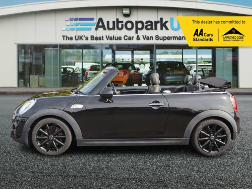 The MINI Convertible Cooper S has been well cared for by its former keepers . The Mini is equipped with a 2.0-litre petrol engine paired to a manual transmission, delivering 192 PS under Euro 6 emissions standards. This model features a fully electric soft-top fabric roof with integrated sliding function, chrome-plated dual central exhausts, and high-gloss black bumper edges and wheel arch covers. Interior highlights include Sensatec artificial leather trim on the gearshift and handbrake gaiters, chrome-plated dashboard instrument surrounds, and metal-look Cooper S door sill finishers. The cabin offers easy rear seat access with driver's seat memory function, electric windows with auto-drop on door opening, and integrated vanity mirrors. Audio is delivered through a six-speaker setup, with halogen lighting for both low and high beams enhancing visibility. This variant blends MINI's signature sporty character with convertible practicality and premium detailing. At Autopark UK, we pride ourselves on quality. Each vehicle is meticulously selected by our experienced buying team for its excellent condition and unbeatable value. As part of our commitment, this vehicle has undergone—or will undergo—a thorough multipoint inspection under the AA Dealer Promise. To provide further peace of mind, we offer affordable extended warranties with nationwide coverage starting at £249 (Vans/4x4 from £349), as well as 12 months of AA roadside assistance for adde * FREE MOT ON DEPOSIT (no advisories)  *, **AWAITING PDI 110 POINT INSPECTION BEFO, 17in Alloy Wheels - Cosmos in Black, Air Conditioning - Automatic Dual Zone, CHILI Pack, Chrome Line Exterior, Chrome Line Interior, Cross Punch Leather - Carbon Black - Car, Electrically Folding Exterior Mirrors, Headlights and Daytime Running Lights - , Interior Light Pack, Midnight Black, MINI Driving Modes, MINI Excitement Pack, MINI Navigation System, MINI Yours Dark Cottonwood Interior, Multifunction Controls for Steering Whee, Rain Sensor and Automatic Headlight Acti, Seat Heating for Driver and Front Passen, Storage Compartment Pack