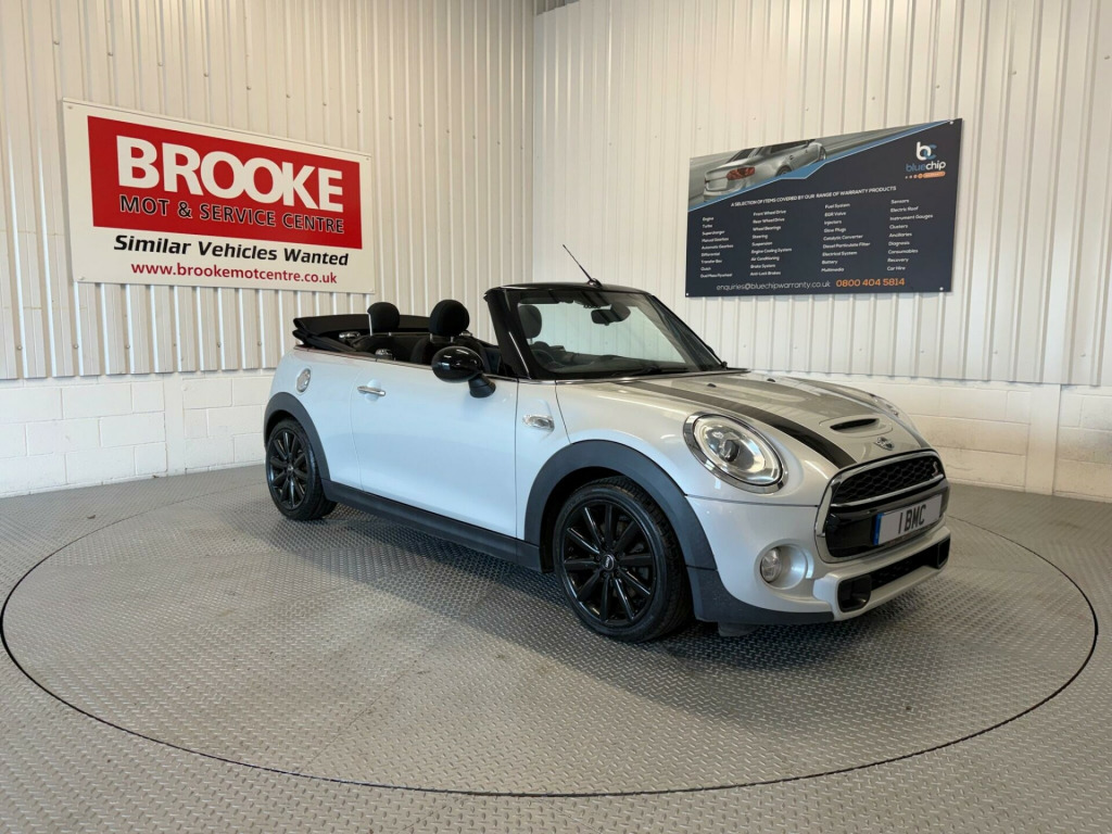 THIS VEHICLE IS AT OUR NR1 NORWICH BRANCHTO VIEW ALL OF OUR 400+ STOCK. PLEASE CLICK ON THE ''SEE ALL CARS'' LINK OR VISIT: www.bmccarsales.com07863 863000 / 01603 854419. 12Volt Socket in Front Centre Console, 16in Alloy Wheels - Loop Spoke in Silver, 3-Spoke Sport Leather Steering Wheel, 3rd Brake Light - LED Along Top of Rear Window, 4 Lashing Eyes in Luggage Compartment, ASC+T - Automatic Stability Control and Traction, Air Conditioning - Manual, Airbags - Driver, Airbags - Front Passenger, Airbags - Front Passenger with Deactivation Switch, Airbags - Front Side, Airbags - Head, Alarm - Thatcham CAT1, Anti-Lock Braking System - ABS, Auto Door Locking After 10mph, Automatic Door Window Lowering by Approx 6mm When Door Opens, Aux-In Connection, Bluetooth Hands Free Function, Body Coloured Fuel Filler Cap in Rear Right Side Panel - Linked to Central Locking, Boot Release via Remote Control, Brake Assist, Brake Drying, Brake Pad Wear Indicator, Bumper Edges - High Gloss Black, CBC - Cornering Brake Control, Central Locking - Remote, Crash Sensor - Airbag Deployment, Crash Sensor - Fuel Cut-Off, Crash Sensor - Hazard Warning Flashers and Interior Light, Crash Sensor - Unlocking Doors, Cupholders - Rear x1, Cupholders - Two in Front, DAB Tuner, DTC - Dynamic Traction Control, Dashboard - Black Chequered, Daytime Running Lights - Halogen, Decorative Rings Surrounding Dashboard Instruments, Door Bezel - Piano Black, Door Handles - Chrome Plated, Door Handles - Interior - Chrome Plated, Door Mirrors - Aspheric on Drivers Side, Door Mirrors - Electrically Adjustable and Heated, Door Sill Finishers - Metal Look and Model Dependent Lettering, Door Sills - High Gloss Black, Dynamic Brake Lights, Dynamic Stability Control - DSC, EBD - Electronic Brake-Force Distribution, EDLC - Electronic Differential Lock Control, Easy Load Function, Electric Windows - Front - One Touch Up and Down, Electronic Vehicle Immobiliser, Engine Scoop in Body Colour, Exhaust Tailpipe - Visible Double Round Central with Chrome Finishers, Foldable Rear Backrest and 50:50 Split, Front Fog Lights, Front Passenger ISOFIX, Front Side Indicators - White, Gearknob or Selector Lever - Leather, Halogen Lights for Low Beam and High Beam Headlights, Handbrake Lever Grip - Plastic, Handrake Lever Gaiter in Sensatec, Headlight - Beam-Throw Control Electrical with Manual Adjustment, Headlights - Chrome Bezels, Headlights - Follow Me Home, Headrests For All Seats - Manually Adjustable, Heated Front Windscreen Washer Jets, Heated Window Heater, Hill Assist, Interior Centre Light in Headliner, Interior Lights - Integrated into Centre Front Headliner, Interior Mirror - Mechanical Anti-Dazzle, Interior Surface in Black Chequered Design, Interior Trim - Black Chequered, MINI Central Display with LED Ring, MINI Mobility System, Microfilter, Mirror Caps in Body Colour, Non Smoker Package, On-Board Computer, Outside Temperature Display, PDC - Park Distance Control - Rear, Performance Control, Personal Profile, Radiator Grille - Honeycomb-Black with Chrome Surround, Radio with Four-Line Display, Rear Lights - Chrome Bezels, Rear Passenger ISOFIX, Rear View Camera, Rear Window Wiper, Rev Counter, Roll-Over Protection System, Seats - Drivers Memory Function, Seats - Easy Entry Access, Seats - Height Adjustable Drivers, Seats - Six-Way Machanical Adjustment for Driver, Seats - Sports Front, Second Radio Remote Key, Security Locking Wheel Bolts, Servotronic Power Steering, Side Scuttles Chrome-Plated with Red S Lettering with Integrated Direction Indicator White, Soft-Top Black, Soft-Top with Fully Automatic Electric Actutation with Continuously Variable Sunroof Function, Speakers - 2x Woofers Under Front Seats, Speakers - 2x in Rear Side Trims, Speakers-Mid-Range - Two in Front Doors, Speedometer on Steering Column, Stainless Steel Embellisher at Bottom Edge of all Windows, Start-Stop Button, Steering Column Height and Length Adjustment, Steering Wheel - Insert in Piano Black, Storage - Compartment in Front of Front Cup Holders, Storage - Compartments in Doors, Storage - Glove Compartment on Front Passenger Side, Storage - Pockets on Back of Front Seats, S.