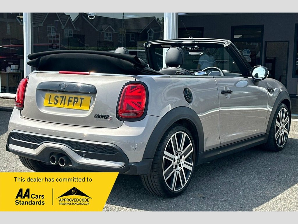 Boasting a full dealership service history, this 2021 MINI Convertible Cooper S Exclusive is presented in excellent condition with its last service completed on 28th July 2025 at 30,634 miles. This Euro 6 compliant 2.0L petrol engine vehicle comes with an MOT valid until August 2026 and a clear vehicle history check, offering peace of mind. The Cooper S Exclusive trim is enhanced by the Comfort Plus Pack, which includes climate control, heated seats, and comprehensive parking assistance with front and rear sensors and a rear camera. Further enhancing the driving experience are the Navigation Pack and the inclusion of Apple CarPlay, allowing seamless smartphone integration. This MINI Convertible also features striking black bonnet stripes and automatic headlight activation for added convenience. With an impressive fuel economy of 44 mpg, it represents a sensible choice for everyday driving. Its low insurance group and low CO2 emissions further highlight its efficiency and affordability, making it a more economical option compared to similar vehicles. A 3 month warranty is included, providing extra assurance for your purchase. ========= Specification: 8.8in Touch Screen with LED Ring, Apple CarPlay, Bluetooth with Audio Streaming, Cruise Control with Brake Function, Keyless Go, MINI Driving Modes, Navigation Pack, PDC - Rear Park Distance Control, Rain Sensor Wipers, LED Headlights with Daytime Running Lights, Multifunction Steering Wheel Controls, Electric Windows - Front. 12 Volt Socket in Front Centre Console, 18in Alloy Wheels - British Spoke - 2-To, 3 Point Seatbelts on all Seats, 4 Lashing Eyes in Luggage Compartment, 8.8in Touch Screen with LED Ring, Active Roll-Over Protection, Air Conditioning - Manual, Airbags, Alarm System, Anti-Lock Braking System - ABS, Apple Carplay, Automatic Headlight Activation Switch, Bluetooth for Compatible Mobile Phone wi, Bonnet Scoop, Bonnet Stripes - Black, Carbon Black Colour Line - Knee Roll and, Chrome Highlights, Comfort Plus Pack, Convertible Pack, Cruise Control with Brake Function, Cupholders, DAB Tuner and FM Tuner, Door Mirrors - Caps in Black, Door Mirrors - Caps in Silver, Door Sill Strips - Metal with Cooper