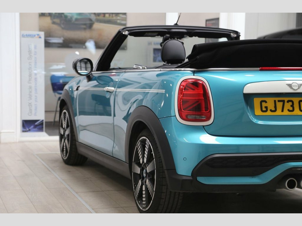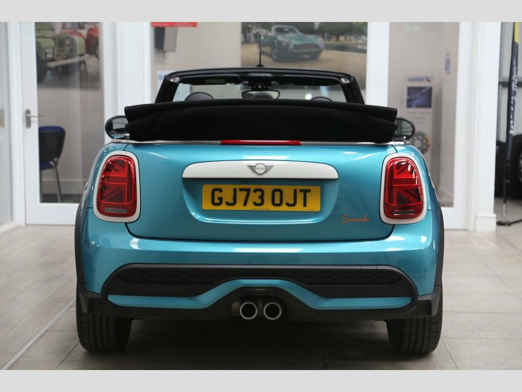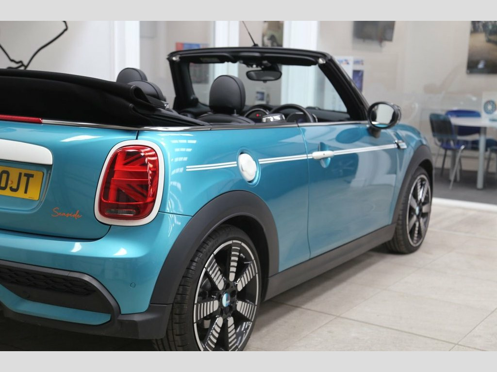 Finished in striking Caribbean Aqua, this MINI Convertible 2.0 Cooper S Seaside Edition brings together playful design, open-air driving, and sharp performance in one unmistakable package. With 178PS delivered through a responsive Steptronic automatic gearbox, it's quick off the mark and eager in corners, yet still capable of returning up to 45 mpg combined under the Euro 6 emissions standard, offering an ideal balance between spirited driving and efficiency. The Seaside Edition adds exclusive styling touches that set it apart. From the crisp white bonnet stripes and unique 18-inch Pulse Spoke alloy wheels to the special "Seaside 30" badging and subtle graphic detailing, every element celebrates three decades of MINI Convertible fun. The interior continues the theme with distinctive door sills, decorative trim elements, and a leather steering wheel featuring edition-specific branding. Look closer and you'll notice the iconic Union Jack motif proudly displayed in the LED rear lights—a nod to MINI's heritage, reimagined in a modern and unmistakably British way. With the roof down, the cabin feels light and playful, featuring a high-resolution digital cockpit, heated front seats, and MINI's intuitive infotainment system with navigation and smartphone integration. Whether zipping along a coastal road or weaving through city streets, this Cooper S Seaside Edition delivers a drive that's both engaging and refined, wrapped in a design tha 12V Socket in Centre Console, 18in Alloy Wheels - Pulse Spoke in Two T, 3 Point Seatbelts on all Seats, 3D Printed Key Cap with Seaside Edition , 4 Lashing Eyes in Luggage Compartment, 8.8in Touch Screen with LED Ring, Active Roll-Over Protection, Airbags, Alarm System, Anti-Lock Braking System - ABS, Apple Carplay, Aspen White Exterior Trim Elements, Automatic Headlight Activation Switch, Bluetooth for Compatible Mobile Phone wi, Bonnet Scoop, Carbon Black Colour Line - Knee Roll and, Chrome Highlights, Convertible Pack, Cruise Control with Brake Function, Cupholders, Digital Dash, Door Sill Finishers with Seaside Edition, Door Storage Compartments, Driver Assistant, Dynamic Brake Lights, D
