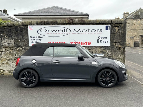 Here at Orwell Motors we are delighted to offer for sale this 2 Owner from new Mini Cooper S Sport Convertible Automatic finished in Thunder Grey with contrasting Grey Cloth JCW Sports Seats. This car comes with a Service History and 2 Keys supplied. Spec for this car includes Automatic Climate Control, Automatic Lights, Cruise Control, DAB Radio with Media Connectivity, Heated Front Seats, Comfort Pack, 17 Inch Alloy Wheels, Rear Folding Seats, Rear Parking Sensors and Bluetooth. 12 Volt Socket in Front Centre Console, 17in Alloy Wheels - John Cooper Works Tr, 3 Point Seatbelts on all Seats, 4 Lashing Eyes in Luggage Compartment, 6.5in Screen with LED Ring, Active Roll-Over Protection, Air Conditioning - Manual, Airbags, Alarm System, Anti-Lock Braking System - ABS, Bluetooth for Compatible Mobile Phone wi, Bonnet Scoop, Carbon Black Colour Line - Knee Roll and, Chrome Highlights, Convertible Pack, Cruise Control with Brake Function, Cupholders, DAB Tuner and FM Tuner, Dynamic Brake Lights, Dynamic Stability Control - DSC, Easy Load Function, Electric Windows - Front, Electro-Mechanical Steering with Speed D, Electronic Vehicle Immobiliser, Exhaust Tailpipe - Double