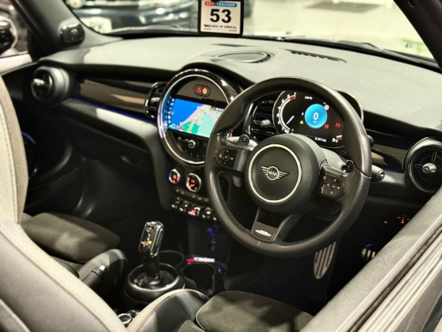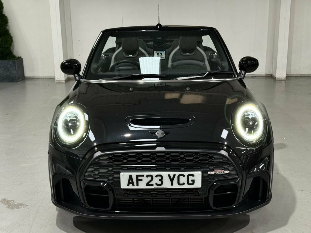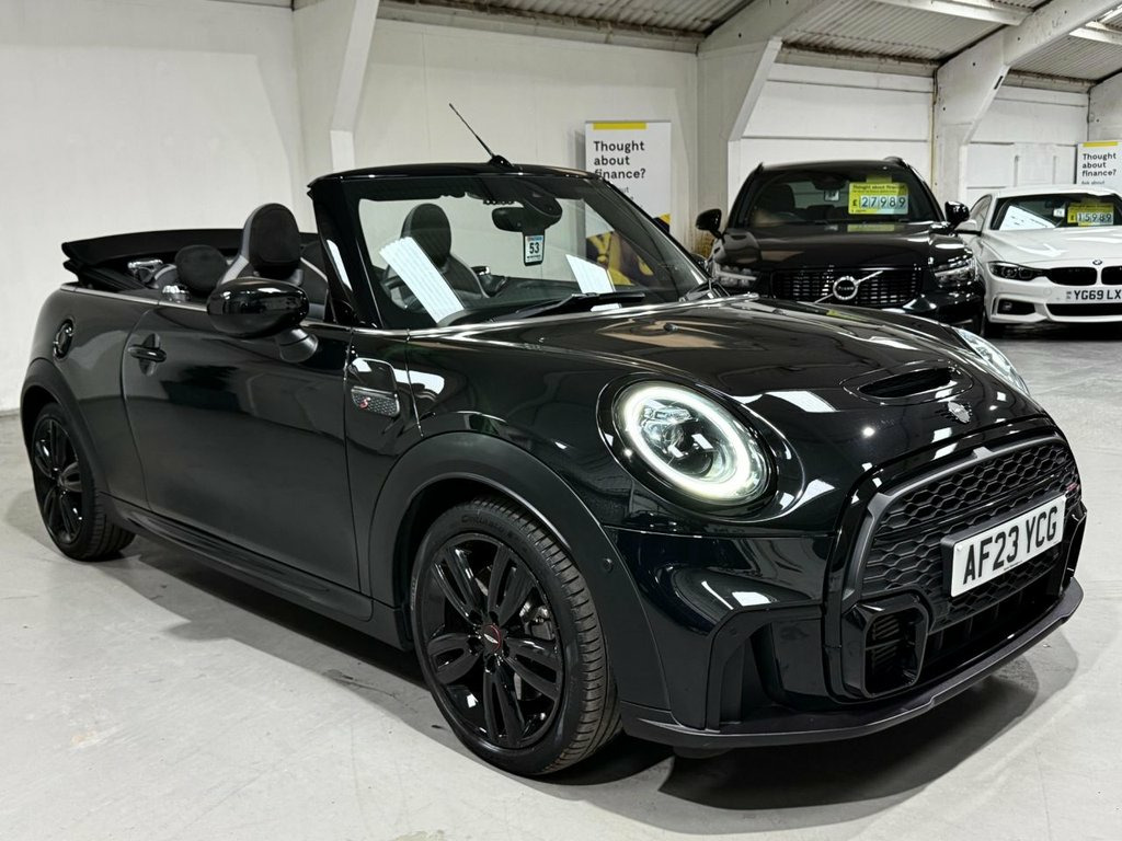 This 2023 MINI Convertible Cooper S Sport is a superb example, having had only one owner from new and boasting a clear vehicle history check. This stylish convertible features a responsive 2.0 litre petrol engine, meeting Euro 6 emissions standards. It comes equipped with the Premium Plus Pack, which includes air conditioning, keyless entry, heated seats, and both rear camera and rear sensor parking assistance. Further enhancing its appeal are automatic headlights, Apple CarPlay integration, and LED headlights with distinctive closed ring daytime running lights. The Cooper S Sport variant offers a compelling blend of performance and efficiency, with a highlight fuel economy of 45 miles per gallon. This vehicle also benefits from a low insurance group and low CO2 emissions, indicating it is more economical to run than many similar cars. These factors, combined with its single owner provenance and comprehensive feature set, make this MINI Convertible a truly attractive proposition. Premium Plus Pack, Midnight Black II, Apple Carplay, Rear LED Lights with Union Jack Design, 17in Alloy Wheels - John Cooper Works Tr, Keyless Go, 3 Point Seatbelts on all Seats, 4 Lashing Eyes in Luggage Compartment, 8.8in Touch Screen with LED Ring, Active Roll-Over Protection, Airbags, Alarm System, Anti-Lock Braking System - ABS, Automatic Headlight Activation Switch, Bluetooth for Compatible Mobile Phone wi, Bonnet Scoop, Carbon Black Colour Line - Knee Roll and, Chrome Highlights, Convertible Pack, Cruise Control with Brake Function, Cupholders, Digital Dash, Dinamica-Leather - Carbon Black, Door Storage Compartments, Driver Assistant, Dynamic Brake Lights, Dynamic Stability Control -