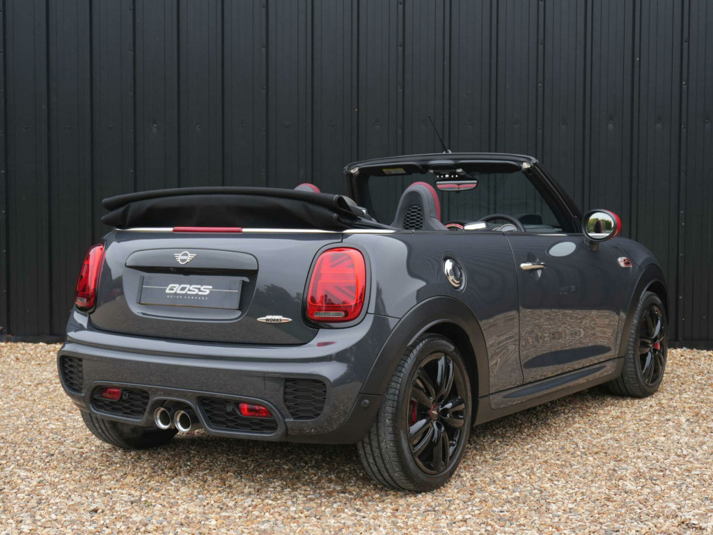 2019 MINI John Cooper Works Convertible31,000 miles - 1 owner from new - Full service historyFinished in Thunder Grey with Dinamica Black interior, this one-owner John Cooper Works Convertible comes with a desirable combination of Comfort Plus, Navigation Plus, and Convertible Packs.Key details:- 2019 / 19 plate- 31,000 miles- John Cooper Works Convertible (231 bhp)- 2.0-litre turbocharged petrol engine- Sport automatic transmission- Front-wheel driveSpecification highlights:- Thunder Grey exterior- Dinamica Black JCW interior- 17'' JCW Track Spoke alloy wheels in Black- Red mirror caps- Electric folding exterior mirrors- Automatic air conditioning- Park Assist (automatic parking)- MINI Head-Up Display- Comfort Plus Pack (expanded):- Rear-view camera- Front and rear parking sensors- Comfort telephony with wireless charging- Navigation Plus Pack (expanded):- Navigation system with 8.8'' touchscreen- MINI Connected XL & Online Services- Apple CarPlay preparation- Convertible Pack (expanded):- Wind deflector- Comfort Access- Heated front seatsHistory & ownership:- 1 owner from new- Full service historyDisclaimer: Whilst every effort has been taken to ensure accuracy of all our vehicles information, some inaccuracies may occur. It is important that you do not rely on this information but check with Boss motor company limited about any items which may affect your decision to buy this vehicle.Fuel consumption and power usage figures are for guidance only. Factors such as driving style, weather, loading, traffic conditions, all affect the rate at which fuel or power is consumed. It is likely that some journeys will result in greater fuel consumption for the same distance than other journeys. You would be wise to ensure the power range remains above 20% at all times., volt socket in front centre console, 17in alloy wheels - john cooper works track spoke - black, 3 point seatbelts on all seats, 4 lashing eyes in luggage compartment, 6.5in screen with led ring, active roll-over protection, air conditioning - manual, airbags, alarm system, anti-lock braking system - abs, bluetooth for compatible mobile phone with audio streaming, bonnet scoop, brake calipers - red with john cooper works logo, carbon black colour line - knee roll and door armrests, chrome highlights, cruise control with brake function, cupholders, dab tuner and fm tuner, dynamic brake lights, dynamic stability control - dsc, easy load function, electric windows - front, electro-mechanical steering with speed dependant steering assistance, electronic vehicle immobiliser, exhaust tailpipe - double - central with chrome finishers, foldable rear backrest and 50:50 split, front passenger isofix and airbag de-activation switch, fuel filler cap in chrome, fully electric black soft top with integrated sun-roof functionality, glove compartment, headlights - automatic lights-on, heated rear window, heated windscreen washer jets, instrument cluster, interior lighting, interior trim - piano black, john cooper works aerodynamic kit, john cooper works leather steering wheel, john cooper works sport seats, keyless go, led headlights with closed ring as daytime driving lights, led reading lights - vanity mirror lights - front foot well lights - spotlights on front seats, leatherette gearshift lever and handbrake gaiters, mini driving modes, mini e-call, mini logo projection on floor from drivers exterior mirror, mini teleservices, mechanical seat adjustment - forward-back and backrest for front seats - driver seat height adjust, mirror caps in body colour, model logo cooper s on right of tailgate, multifunction controls for steering wheel, no front fog lights, on-board computer, pdc - park distance control - rear, pedals - rubberised stainless steel, performance control, piano black exterior trim, radiator grille - chrome border with honeycomb structure in black matt, rain sensor window wipers, rear fog light, rear led lights with union jack design, rear passenger isofix, side scuttle with mini john cooper works logo in black high-gloss with red border, speakers - 4, sport suspension, steering column height and length adjustment, steering wheel - 3-spoke, steering wheel paddles, storage - compartments in doors, storage - pockets on back of front seats, sun visor with vanity mirrors, sun-heat protection glass, tpws - tyre pressure warning system, tool kit in luggage compartment, two-tone horn, white indicators, navigation plus pack, mini head-up display, 17in alloy wheels - john cooper works track spoke in black with run-flat tyres, convertible pack, door mirrors - caps in red, comfort plus pack, thunder grey, dinamica-leather - carbon black