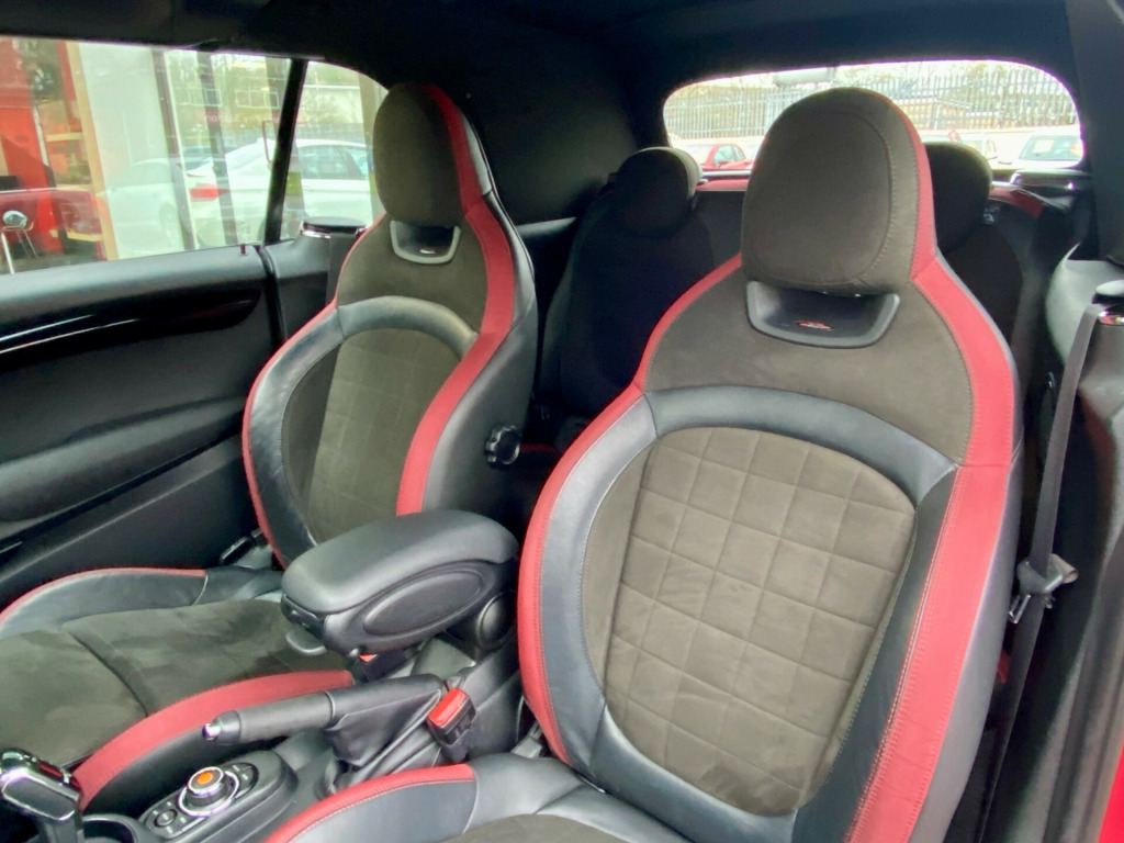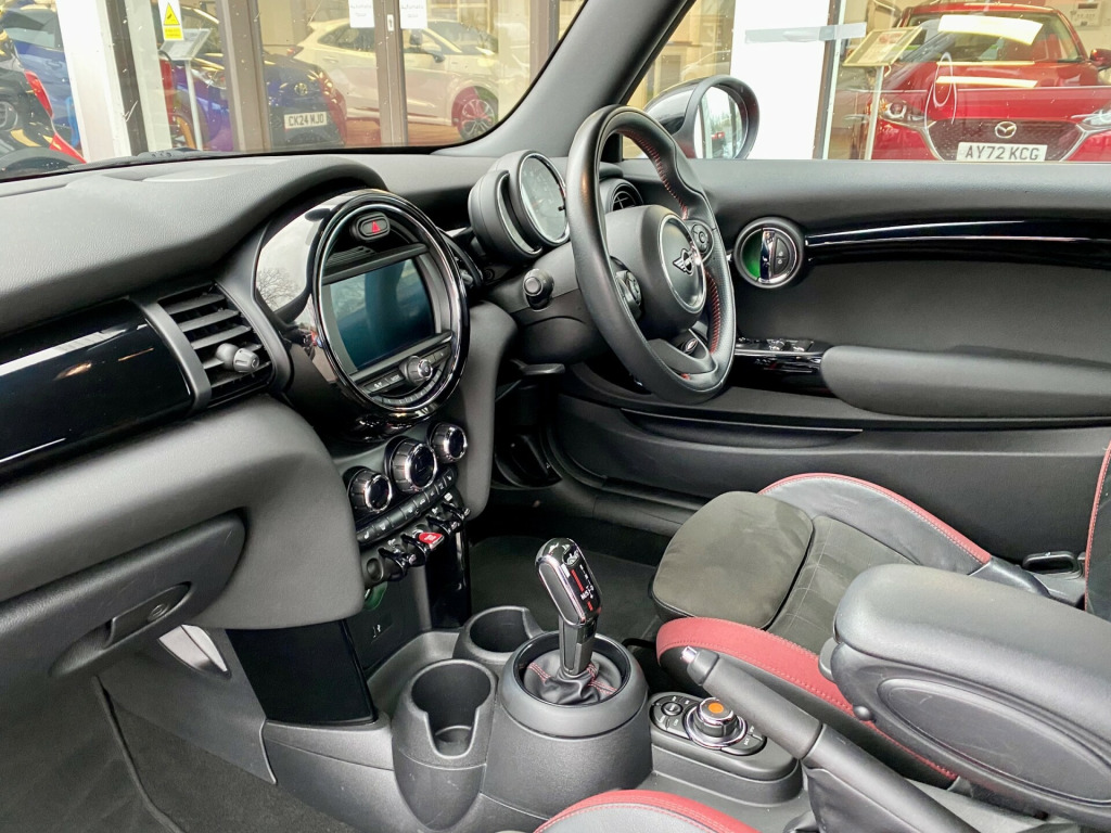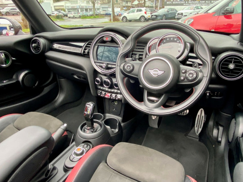 volt socket in front centre console, 6.5in screen with led ring, bluetooth for compatible mobile phone with audio streaming, dab tuner and fm tuner, mini e-call, mini teleservices, speakers - 4, 17in alloy wheels - john cooper works track spoke - black, bonnet scoop, brake calipers - red with john cooper works logo, electric windows - front, exhaust tailpipe - double - central with chrome finishers, fuel filler cap in chrome, fully electric black soft top with integrated sun-roof functionality, heated rear window, heated windscreen washer jets, john cooper works aerodynamic kit, mirror caps in body colour, model logo cooper s on right of tailgate, piano black exterior trim, radiator grille - piano black border with honeycomb structure in black matt, rear fog light, side scuttle with mini john cooper works logo in black high-gloss with red border, sun-heat protection glass, white indicators, 3 point seatbelts on all seats, active roll-over protection, airbags, alarm system, anti-lock braking system - abs, dynamic brake lights, dynamic stability control - dsc, electronic vehicle immobiliser, front passenger isofix and airbag de-activation switch, rear passenger isofix, two-tone horn, 4 lashing eyes in luggage compartment, air conditioning - manual, carbon black colour line - knee roll and door armrests, chrome highlights, cupholders, easy load function, foldable rear backrest and 50:50 split, glove compartment, instrument cluster, interior lighting, interior trim - piano black, john cooper works leather steering wheel, john cooper works sport seats, keyless go, led reading lights - vanity mirror lights - front foot well lights - spotlights on front seats, leatherette gearshift lever and handbrake gaiters, mechanical seat adjustment - forward-back and backrest for front seats - driver seat height adjust, multifunction controls for steering wheel, pedals - rubberised stainless steel, rain sensor window wipers, steering column height and length adjustment, steering wheel - 3-spoke, steering wheel paddles, storage - compartments in doors, storage - pockets on back of front seats, sun visor with vanity mirrors, tool kit in luggage compartment, cruise control with brake function, electro-mechanical steering with speed dependant steering assistance, mini driving modes, on-board computer, pdc - park distance control - rear, performance control, sport suspension, tpws - tyre pressure warning system, headlights - automatic lights-on, led headlights with closed ring as daytime driving lights, mini logo projection on floor from drivers exterior mirror, rear led lights with union jack design