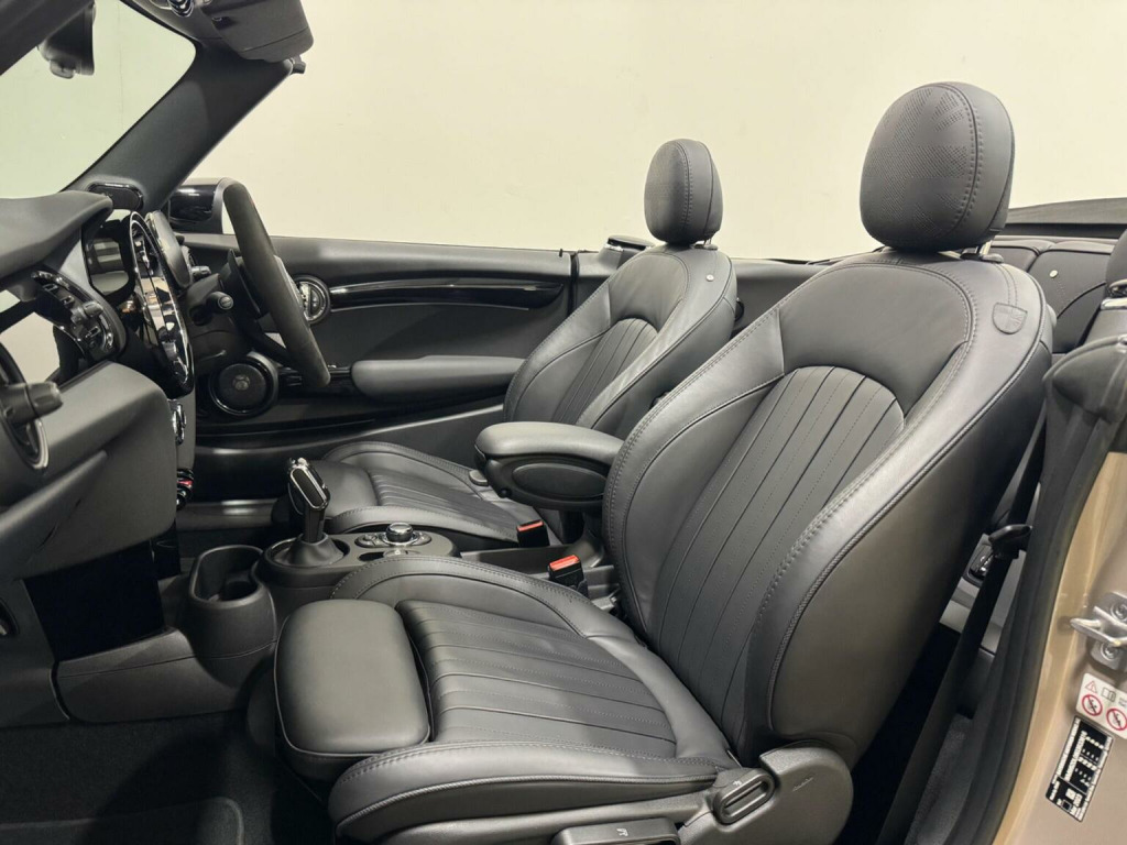 This 2023 MINI Convertible John Cooper Works finished in Roof Top Grey metallic boasts a full dealership service history, ensuring its excellent provenance. This striking model features a powerful 2.0L petrol engine, meeting Euro 6 emission standards. The John Cooper Works trim enhances its sporty appeal, complemented by 18 inch John Cooper Works Course Spoke alloy wheels with run flat tyres. Inside, youll find the luxurious MINI Yours Lounge Leather in Carbon Black, and the Premium Plus Pack adds a host of desirable features including air conditioning, Bluetooth connectivity, adaptive cruise control, a head up display, keyless entry, rear parking sensors, a reversing camera, heated seats, Apple car play/ Android, Harman Kardon and wireless phone charging. Automatic headlights with LED technology and a distinctive closed ring daytime running light further enhance its modern design. Experience exhilarating performance with this MINI Convertible, capable of accelerating from 0 to 62mph in just 6.5 seconds, demonstrating its dynamic capabilities. This vehicle also stands out with its low CO2 emissions and a low insurance group, making it a more economical choice compared to many similar vehicles. A 12 month MOT will be provided on purchase, offering peace of mind for the road ahead.