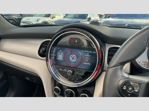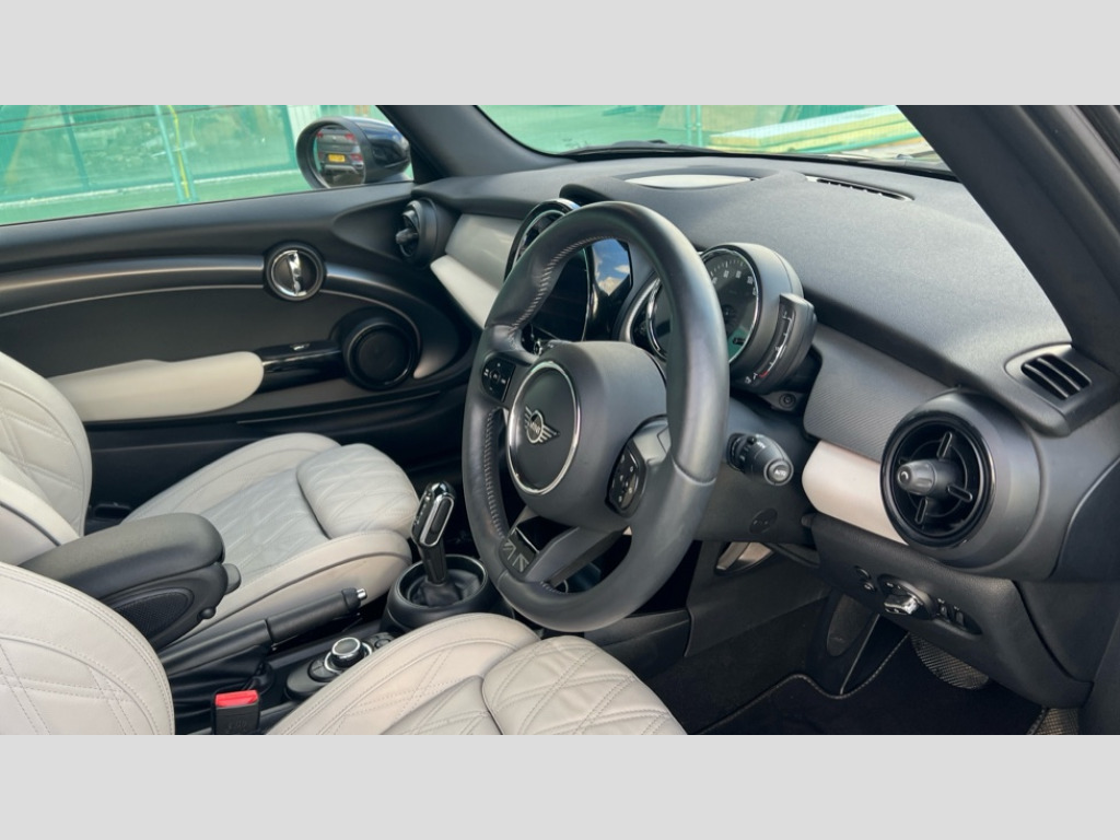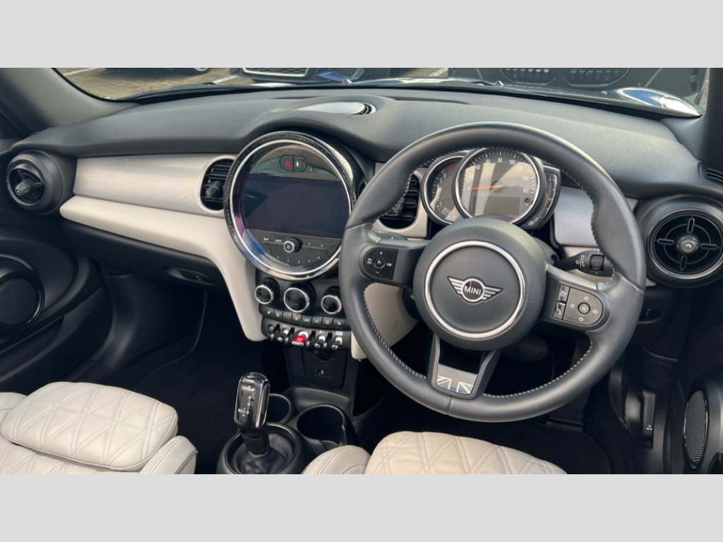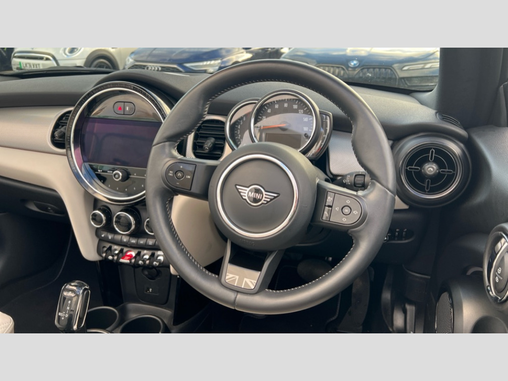 MINI Convertible 1.5 Cooper Exclusive 2dr Auto Apple CarPlay, Automatic start/stop function with brake energy recuperation, Compatible mobile phone bluetooth with audio streaming, Cruise control with brake assist, Electro-mechanical speed dependant steering assistance, Instrument cluster, MINI Driving Modes - centre toggle switch to control driving setting (sport, mid and green), Mini E-call, MINI TeleServices, On board computer, Rear park distance control, Service interval indicator, Double Vanos system, Fully variable valve control, High precision injection, Performance Control, Steptronic transmission with double clutch, 8.8" touchscreen with LED ring, FM tuner and DAB digital radio, Automatic headlight activation switch, Body colour fuel filler cap, Dynamic brake lights, Electric windows, Fully electric black softtop with integrated sunroof functionality, Heated rear window, Heated windscreen washer jets, LED headlight with closed ring and daytime driving lights, Left exhaust tailpipe with chrome finisher, Metal door sill strips with MINI imprint, Model logo Cooper on right of tailgate, Radiator grille bars, tailgate handle, lower front grille grating, rear central fog light in chrome, Rain sensor window wipers, Rear boot, Rear fog lights, Rear LED lights with union jack design, Side scuttle panel with integrated indicator, Sun/heat protection glass, Third brake light, White indicator lenses, 12V Accessory socket in centre console, 2 seat bench in 2nd row, 4 lashing eyes in luggage compartment, 50/50 split folding rear seats, Chrome interior highlights, Colour line - Carbon black, Cupholders, Easy Load boot handles, Front and rear head restraints, Front and rear isofix with front passenger airbag deactivation, Glove compartment, Height and length steering column adjustment, Interior lighting with 12 different colours running across the dashboard, underneath door bezel illuminated laser engraved design on central display, Leather gearshift lever and handbrake gaiters, LED reading lights, vanity mirror lights, front foot well light and spotlight on front seats, Manual air conditioning, Mechanical seat adjustment, driver seat height adjust, forward/back and front seats backrest, MINI Yours walk nappa leather steering wheel with grey seam and MINI Yours badge on piano black lower steering wheel spoke, Multifunction steering wheel, Single front passenger seat, Sports steering wheel, Storage compartments in doors, Sunvisors with vanity mirrors, Velour floor mats, Convertible pack with comfort access - Mini Convertible, 3 point seatbelts on all four seats, 6 Airbags - front, side and seat belt tensioners, Active rollover protection, Anti-lock braking system (ABS), DSC - Dynamic Stability Control, Front and rear disc brakes, Hill start assist, Single tone fanfare horn, Tyre pressure monitoring system, Alarm system with tilt sensor, monitoring doors, bonnet interior and tailgate, Electronic vehicle immobiliser, Keyless Go, Tool kit