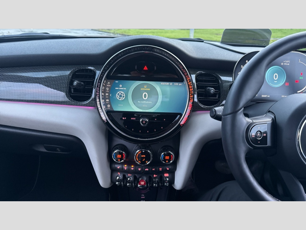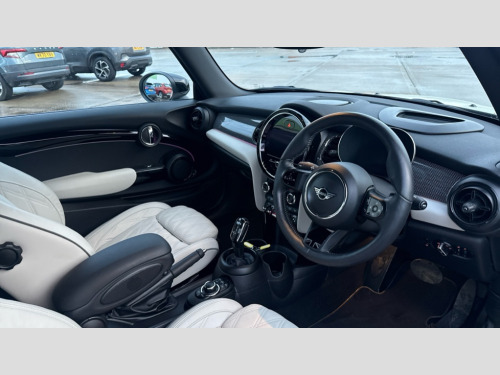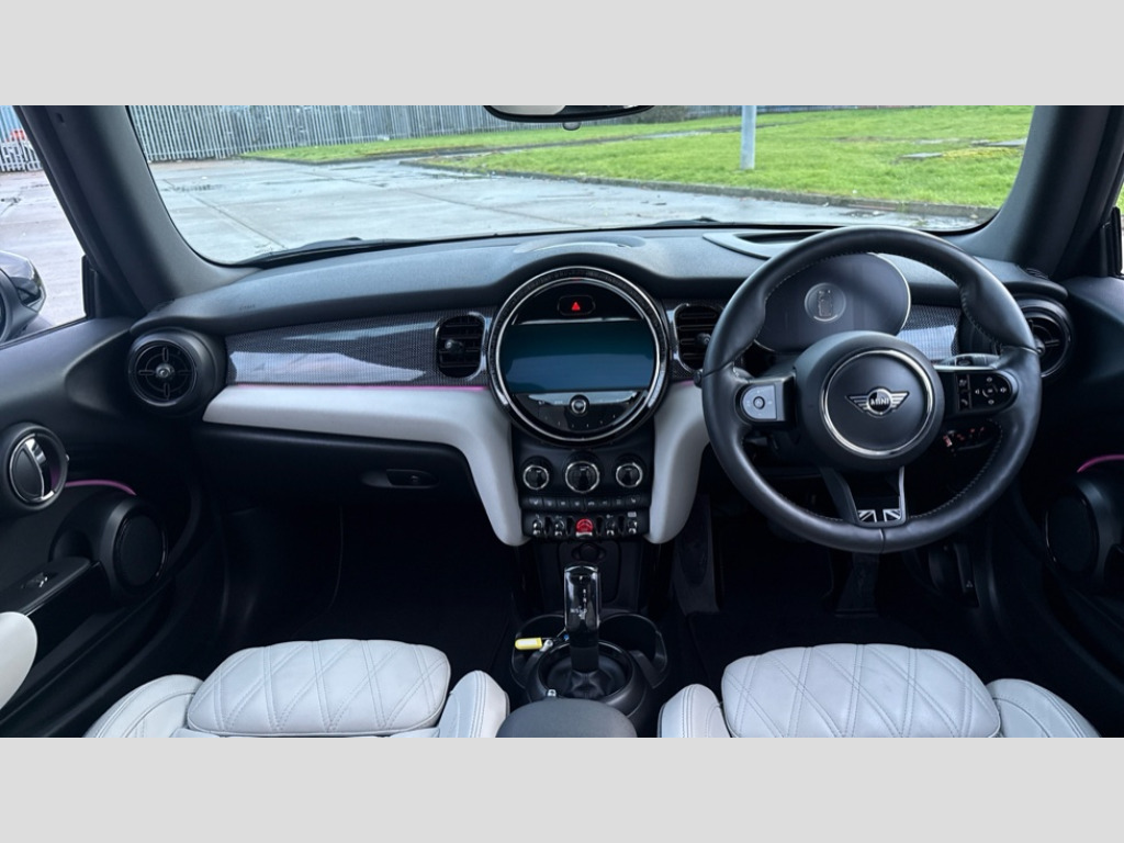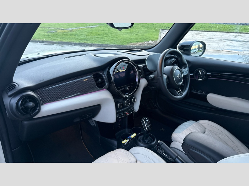 MINI Convertible 1.5 Cooper Exclusive 2dr Auto Apple CarPlay, Automatic start/stop function with brake energy recuperation, Compatible mobile phone bluetooth with audio streaming, Cruise control with brake assist, Electro-mechanical speed dependant steering assistance, Instrument cluster, MINI Driving Modes - centre toggle switch to control driving setting (sport, mid and green), Mini E-call, MINI TeleServices, On board computer, Rear park distance control, Service interval indicator, Double Vanos system, Fully variable valve control, High precision injection, Performance Control, Steptronic transmission with double clutch, FM tuner and DAB digital radio, Automatic headlight activation switch, Body colour fuel filler cap, Dynamic brake lights, Electric windows, Fully electric black softtop with integrated sunroof functionality, Heated rear window, Heated windscreen washer jets, Left exhaust tailpipe with chrome finisher, Metal door sill strips with MINI imprint, Mini Yours soft top - Black/Union Jack, Model logo Cooper on right of tailgate, Radiator grille bars, tailgate handle, lower front grille grating, rear central fog light in chrome, Rain sensor window wipers, Rear fog lights, Rear LED lights with union jack design, Side scuttle panel with integrated indicator, Sun/heat protection glass, White indicator lenses, 12V Accessory socket in centre console, 4 lashing eyes in luggage compartment, 50/50 split folding rear seats, Chrome interior highlights, Colour line - Carbon black, Cupholders, Easy Load boot handles, Front and rear head restraints, Front and rear isofix with front passenger airbag deactivation, Glove compartment, Height and length steering column adjustment, Interior lighting with 12 different colours running across the dashboard, underneath door bezel illuminated laser engraved design on central display, Leather gearshift lever and handbrake gaiters, LED reading lights, vanity mirror lights, front foot well light and spotlight on front seats, Mechanical seat adjustment, driver seat height adjust, forward/back and front seats backrest, MINI Yours walk nappa leather steering wheel with grey seam and MINI Yours badge on piano black lower steering wheel spoke, Multifunction steering wheel, Sports steering wheel, Storage compartments in doors, Sunvisors with vanity mirrors, Velour floor mats, Convertible pack with comfort access - Mini Convertible, 3 point seatbelts on all four seats, 6 Airbags - front, side and seat belt tensioners, Active rollover protection, Anti-lock braking system (ABS), DSC - Dynamic Stability Control, Front and rear disc brakes, Hill start assist, Single tone fanfare horn, Tyre pressure monitoring system, Alarm system with tilt sensor, monitoring doors, bonnet interior and tailgate, Electronic vehicle immobiliser, Keyless Go, Tool kit