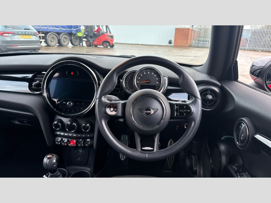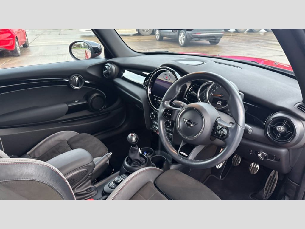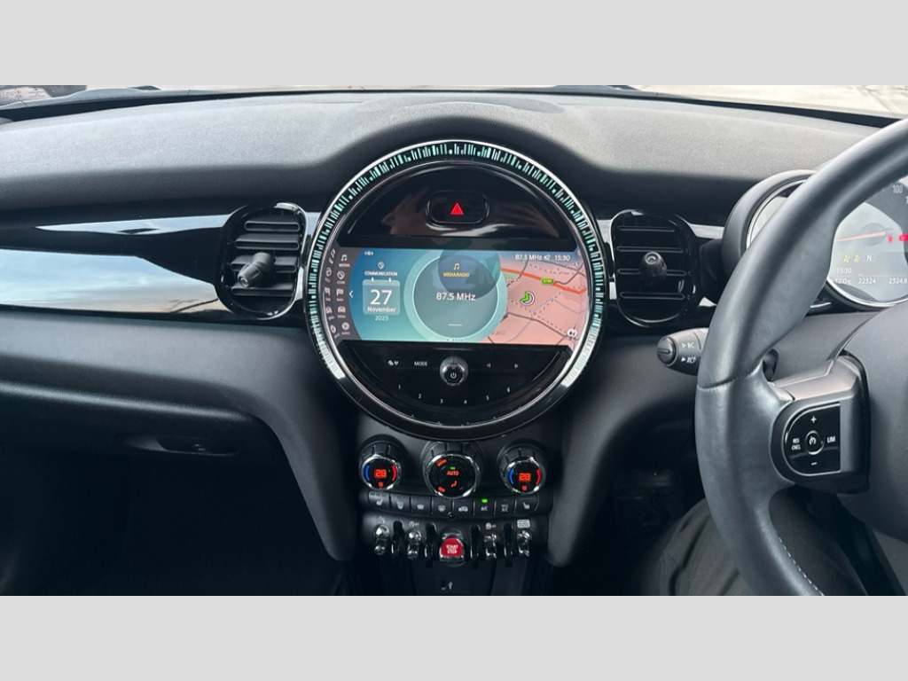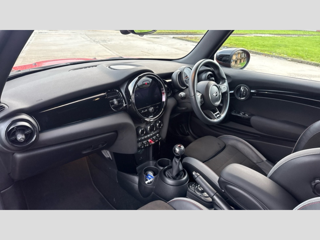MINI Convertible 1.5 Cooper Sport 2dr Apple CarPlay, Automatic start/stop function with brake energy recuperation, Compatible mobile phone bluetooth with audio streaming, Cruise control with brake assist, Electro-mechanical speed dependant steering assistance, Instrument cluster, MINI Driving Modes - centre toggle switch to control driving setting (sport, mid and green), Mini E-call, MINI TeleServices, On board computer, Rear park distance control, Service interval indicator, 6 Speed manual transmission including gear change indicator display, Adaptive suspension, Double Vanos system, Fully variable valve control, High precision injection, Performance Control, FM tuner and DAB digital radio, Automatic headlight activation switch, Body colour fuel filler cap, Chrome border high gloss black slats radiator grille, Dynamic brake lights, Electric windows, Fully electric black softtop with integrated sunroof functionality, Heated rear window, Heated windscreen washer jets, John Cooper Works - aerodynamic kit (front and rear apron, spoiler), front and rear sport bumpers and part-painted side sills with door sill finishers, Left exhaust tailpipe with chrome finisher, Metal door sill strips with MINI imprint, Model logo Cooper on right of tailgate, Rain sensor window wipers, Rear fog lights, Rear LED lights with union jack design, Side scuttle panel with integrated indicator, Sun/heat protection glass, White indicator lenses, 12V Accessory socket in centre console, 4 lashing eyes in luggage compartment, 50/50 split folding rear seats, Chrome interior highlights, Colour line - Carbon black, Cupholders, Easy Load boot handles, Front and rear isofix with front passenger airbag deactivation, Glove compartment, Height and length steering column adjustment, Interior lighting with 12 different colours running across the dashboard, underneath door bezel illuminated laser engraved design on central display, John Cooper Works walk nappa leather steering wheel with grey seam and John Cooper Works badge on piano black lower steering wheel spoke, Leather gearshift lever and handbrake gaiters, Leatherette integrated headrest, adjustable thigh support with john cooper works logo, LED reading lights, vanity mirror lights, front foot well light and spotlight on front seats, Mechanical seat adjustment, driver seat height adjust, forward/back and front seats backrest, Multifunction steering wheel, Rear head restraints, Sports steering wheel, Storage compartments in doors, Sunvisors with vanity mirrors, Velour floor mats, Convertible pack with comfort access - Mini Convertible, Piano black exterior pack - Mini Convertible, 3 point seatbelts on all four seats, 6 Airbags - front, side and seat belt tensioners, Active rollover protection, Anti-lock braking system (ABS), DSC - Dynamic Stability Control, Front and rear disc brakes, Hill start assist, Single tone fanfare horn, Tyre pressure monitoring system, Alarm system with tilt sensor, monitoring doors, bonnet interior and tailgate, Electronic vehicle immobiliser, Keyless Go, Piano black interior trim, Tool kit