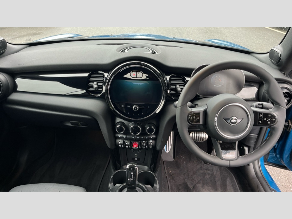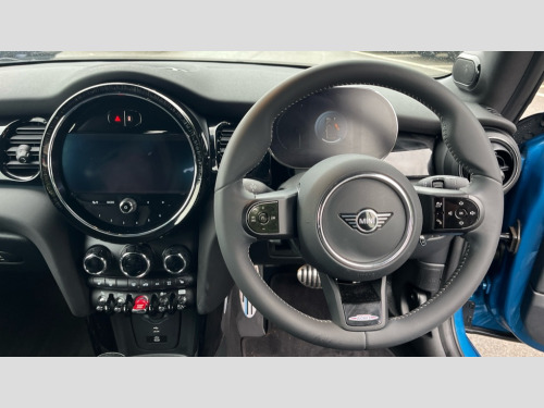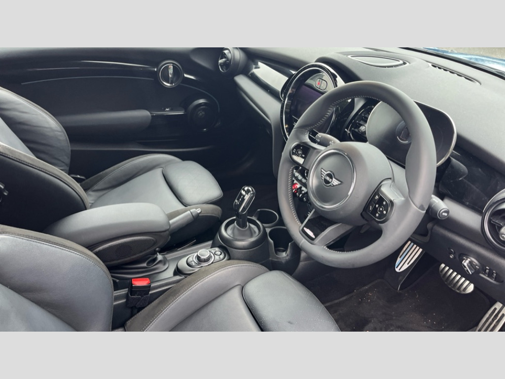 MINI Convertible 1.5 Cooper Sport Premium Plus 2dr Auto 5" Digital dashboard display, Apple CarPlay, Automatic start/stop function with brake energy recuperation, Compatible mobile phone bluetooth with audio streaming, Cruise control with braking function, Electro-mechanical speed dependant steering assistance, Flexible car sharing preparation, Instrument cluster, Mini E-call, MINI TeleServices, On board computer, Service interval indicator, Double Vanos system, Fully variable valve control, High precision injection, Intelligent adaptive suspension, Performance Control, Steptronic transmission with double clutch, FM tuner and DAB digital radio, Automatic headlight activation switch, Body colour fuel filler cap, Dynamic brake lights, Electric windows, Heated rear window, Heated windscreen washer jets, John Cooper Works aerodynamic kit front and rear bumpers with sporty JCW styling and part painted side sills includes MINI JCW door sill finishers, LED headlight with closed ring and daytime driving lights, Metal door sill strips with MINI imprint, Model logo Cooper on right of tailgate, Rain sensor window wipers, Rear boot, Rear fog lights, Rear LED lights with union jack design, Side scuttle panel with integrated indicator, Sun/heat protection glass, Third brake light, White indicator lenses, 12V Accessory socket in centre console, 2 seat bench in 2nd row, 50/50 split folding rear seats, Carbon Black colour line, knee roll and door armrests, Chrome interior highlights, Cupholders, Easy Load boot handles, Front and rear head restraints, Front and rear isofix with front passenger airbag deactivation, Glove compartment, Height and length steering column adjustment, Integrated headrests, adjustable thigh support with John Cooper Works logo, Interior lighting with 12 different colours running across the dashboard, underneath door bezel illuminated laser engraved design on central display, Leather gearshift lever and handbrake gaiters, Leather sports steering wheel, LED reading lights, vanity mirror lights, front foot well light and spotlight on front seats, Mechanical seat adjustment, driver seat height adjust, forward/back and front seats backrest, Single front passenger seat, Storage compartments in doors, Sunvisors with vanity mirrors, Three spoke steering wheel with speed limiter and audio/communication controls, Velour floor mats, Walknappa leather steering wheel with grey seam with John Cooper Works badge on piano black lower steering wheel spoke, Convertible pack with comfort access - Mini Convertible, Piano black exterior pack - Mini Convertible, Premium plus pack with Driving Assistant - Mini Convertible, 3 point seatbelts on all four seats, 6 Airbags - front, side and seat belt tensioners, Active rollover protection, Anti-lock braking system (ABS), DSC - Dynamic Stability Control, Front and rear disc brakes, Hill start assist, Single tone fanfare horn, Tyre pressure monitoring system, Alarm system with tilt sensor, monitoring doors, bonnet interior and tailgate, Electronic vehicle immobiliser, Keyless Go, Piano black interior trim, Tool kit