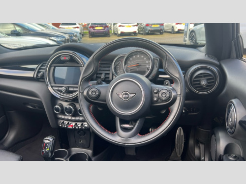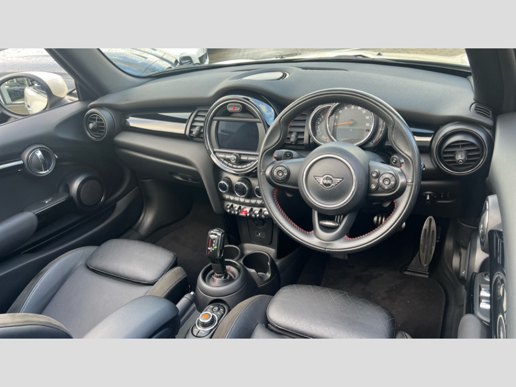 MINI Convertible 2.0 Cooper S Sport II 2dr Auto Automatic start/stop function with brake energy recuperation, Compatible mobile phone bluetooth with audio streaming, Electro-mechanical speed dependant steering assistance, Instrument cluster, MINI Driving Modes - centre toggle switch to control driving setting (sport, mid and green), Mini E-call, MINI TeleServices, On board computer, Rear park distance control, Service interval indicator, Double Vanos system, Fully variable valve control, High precision injection, Performance Control, Steptronic sport transmission with double clutch and steering wheel paddles, 6.5" touchscreen with LED ring, FM tuner and DAB digital radio, Automatic headlight activation switch, Bonnet scoop, Chrome border honeycomb structure radiator grille with S badge, Chrome plated fuel cap, Dynamic brake lights, Electric windows, Fully electric black softtop with integrated sunroof functionality, Heated rear window, Heated windscreen washer jets, John Cooper Works - aerodynamic kit (front and rear apron, spoiler), front and rear sport bumpers and part-painted side sills with door sill finishers, LED headlight with closed ring and daytime driving lights, Metal door sill strips with Cooper S imprint, Model logo Cooper S on right of tailgate, Rain sensor window wipers, Rear fog lights, Rear LED lights with union jack design, Side scuttle panel with integrated indicator, Sun/heat protection glass, Two central exhaust tailpipes with chrome finisher, White indicator lenses, 12V Accessory socket in centre console, 4 lashing eyes in luggage compartment, 50/50 split folding rear seats, Chrome interior highlights, Cupholders, Easy Load boot handles, Front and rear isofix with front passenger airbag deactivation, Front seatback storage pockets, Glove compartment, Height and length steering column adjustment, Interior lighting with 12 basic colours selectable via toggle switch in roof, John Cooper Works perforated leather steering wheel with contrast stitching in chilli red and John Cooper Works logo, Leather gearshift lever and handbrake gaiters, Leatherette integrated headrest, adjustable thigh support with john cooper works logo, LED reading lights, vanity mirror lights, front foot well light and spotlight on front seats, Manual air conditioning, Mechanical seat adjustment, driver seat height adjust, forward/back and front seats backrest, Mini logo projection on floor from drivers exterior mirror, Multifunction steering wheel, Rear head restraints, Storage compartments in doors, Sunvisors with vanity mirrors, Convertible pack with comfort access - Mini Convertible, 3 point seatbelts on all four seats, 6 Airbags - front, side and seat belt tensioners, Active rollover protection, Anti-lock braking system (ABS), DSC - Dynamic Stability Control, Front and rear disc brakes, Hill start assist, Two tone horn, Tyre pressure monitoring system, Alarm system with tilt sensor, monitoring doors, bonnet interior and tailgate, Electronic vehicle immobiliser, Keyless Go, Tool kit