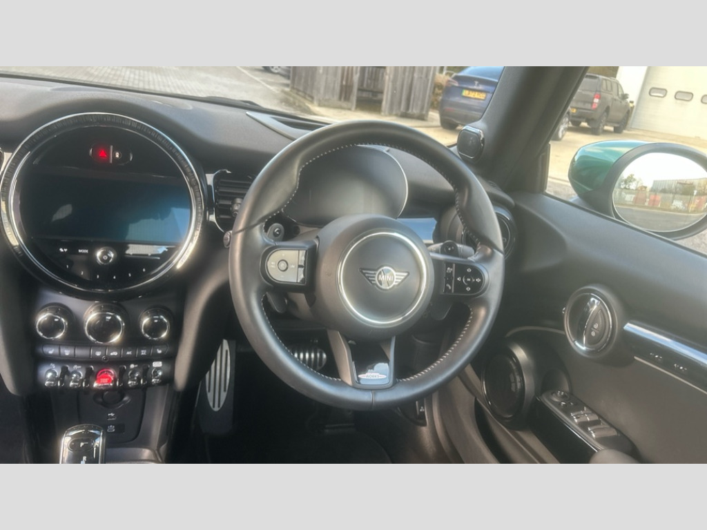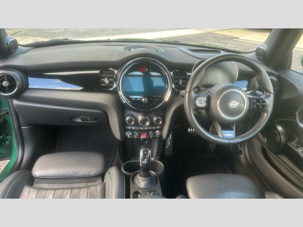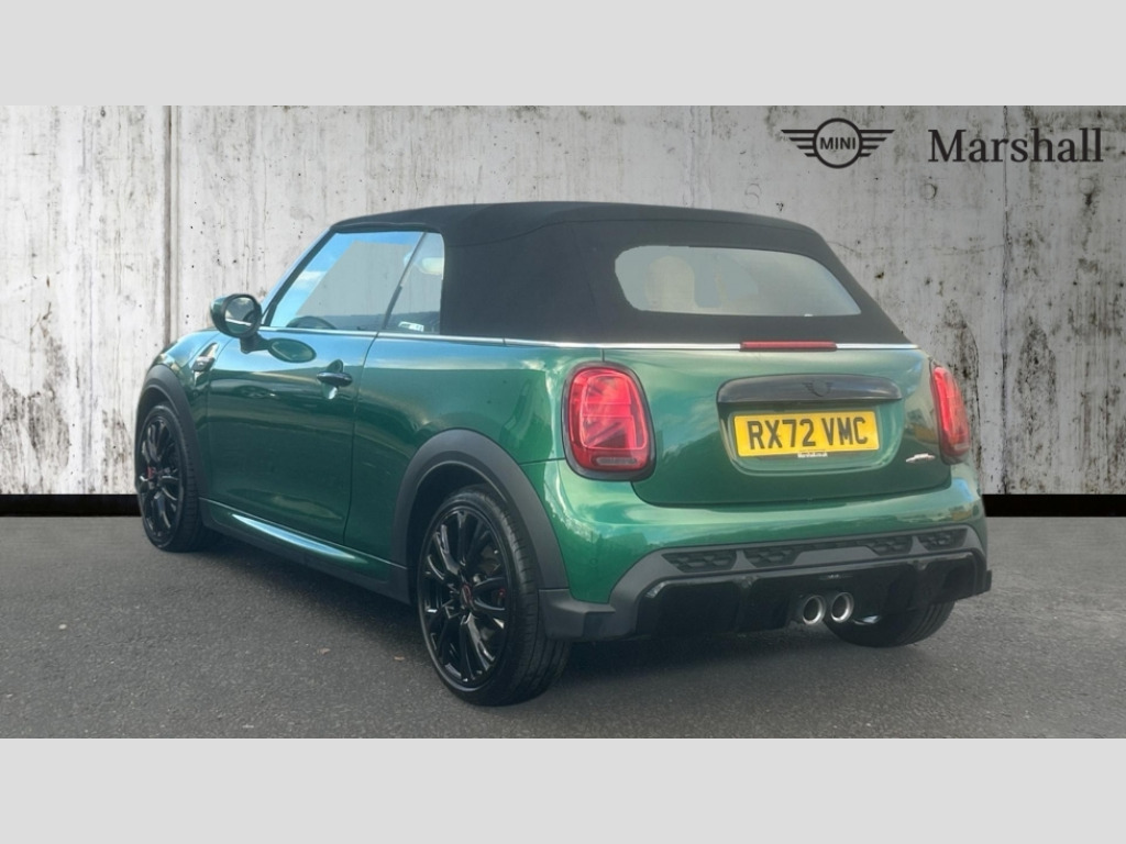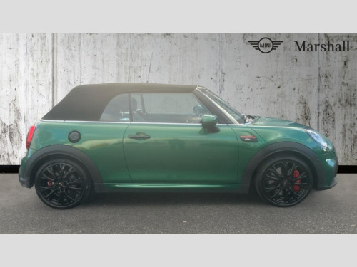MINI Convertible 2.0 John Cooper Works 2dr Auto Apple CarPlay, Automatic start/stop function with brake energy recuperation, Compatible mobile phone bluetooth with audio streaming, Cruise control with brake assist, Electro-mechanical speed dependant steering assistance, Instrument cluster, MINI Driving Modes - centre toggle switch to control driving setting (sport, mid and green), Mini E-call, MINI TeleServices, On board computer, Rear park distance control, Service interval indicator, Double Vanos system, Fully variable valve control, High precision injection, Performance Control, Steptronic sport transmission, 8.8" touchscreen with LED ring, FM tuner and DAB digital radio, Automatic headlight activation switch, Bonnet scoop, Dynamic brake lights, Electric windows, Fully electric black softtop with integrated sunroof functionality, Heated rear window, Heated windscreen washer jets, John Cooper Works - aerodynamic kit (front and rear apron, spoiler), front and rear sport bumpers and part-painted side sills with door sill finishers, LED headlight with closed ring and daytime driving lights, Metal door sill strips with Cooper S imprint, Model logo John Cooper Works on right of tailgate, Piano black border radiator grille with honeycomb structure in black matt and John Cooper Works logo with upper individual grille strut in chilli red, Piano black front grille and door handles, Piano black fuel filler cap, Piano black headlight and rear light frames, Piano black MINI logos and model name, Rain sensor window wipers, Rear boot, Rear fog lights, Rear LED lights with union jack design, Side scuttle with MINI John Cooper Works logo in black high-gloss with red border, Sun/heat protection glass, Third brake light, Two central exhaust tailpipes with chrome finisher, White indicator lenses, 12V Accessory socket in centre console, 2 seat bench in 2nd row, 4 lashing eyes in luggage compartment, 50/50 split folding rear seats, Chrome interior highlights, Colour line - Carbon black, Cupholders, Easy Load boot handles, Front and rear isofix with front passenger airbag deactivation, Front seatback storage pockets, Glove compartment, Height and length steering column adjustment, Interior lighting with 12 different colours running across the dashboard, underneath door bezel illuminated laser engraved design on central display, John Cooper Works seats, John Cooper Works walk nappa leather steering wheel with grey seam and John Cooper Works badge on piano black lower steering wheel spoke, Leather gearshift lever and handbrake gaiters, Leatherette integrated headrest, adjustable thigh support with john cooper works logo, LED reading lights, vanity mirror lights, front foot well light and spotlight on front seats, Manual air conditioning, Mechanical seat adjustment, driver seat height adjust, forward/back and front seats backrest, Multifunction steering wheel, Rear head restraints, Rubberised stainless steel pedals, Single front passenger seat, Sports steering wheel, Storage compartments in doors, Sunvisors with vanity mirrors, Velour floor mats, Convertible pack with comfort access - Mini Convertible, 17" front sport brake with 4 piston fixed calliper, 3 point seatbelts on all four seats, 6 Airbags - front, side and seat belt tensioners, Active rollover protection, Anti-lock braking system (ABS), DSC - Dynamic Stability Control, Hill start assist, Red brake callipers with John Cooper Works logo, Two tone horn, Tyre pressure monitoring system, Alarm system with tilt sensor, monitoring doors, bonnet interior and tailgate, Electronic vehicle immobiliser, Keyless Go, Tool kit