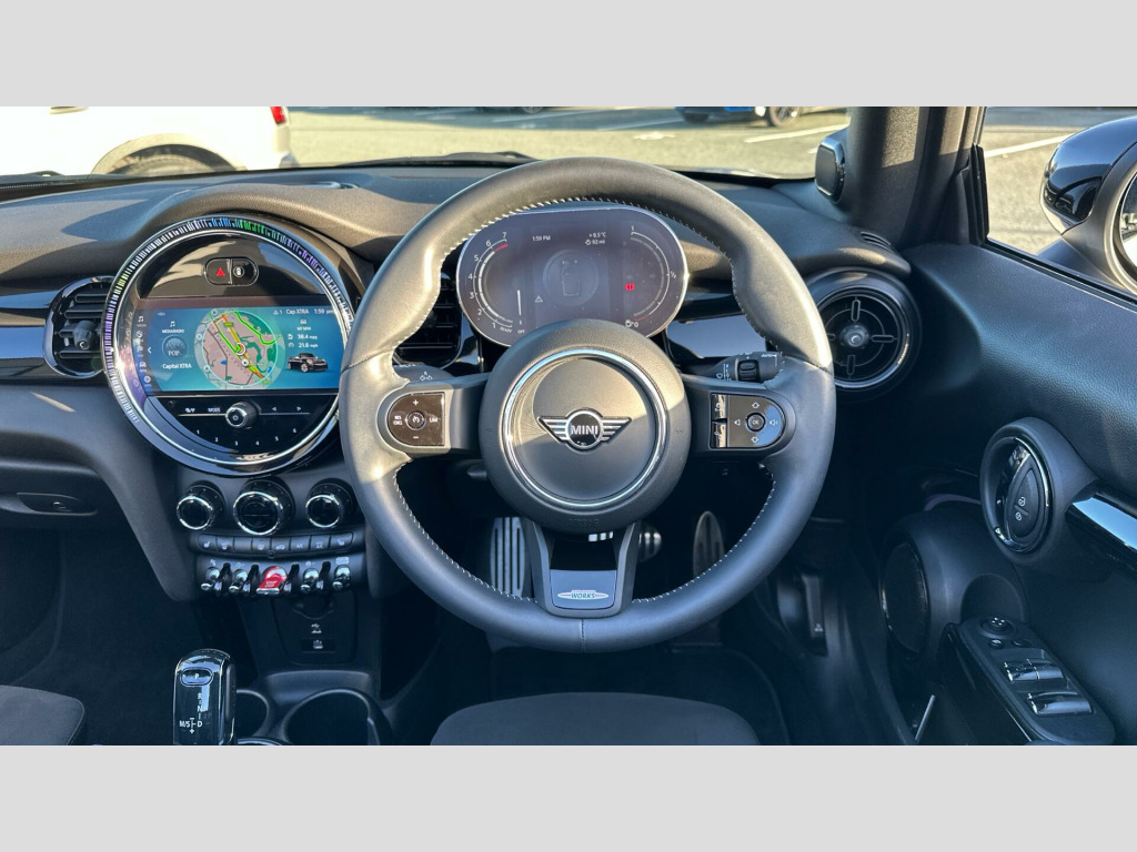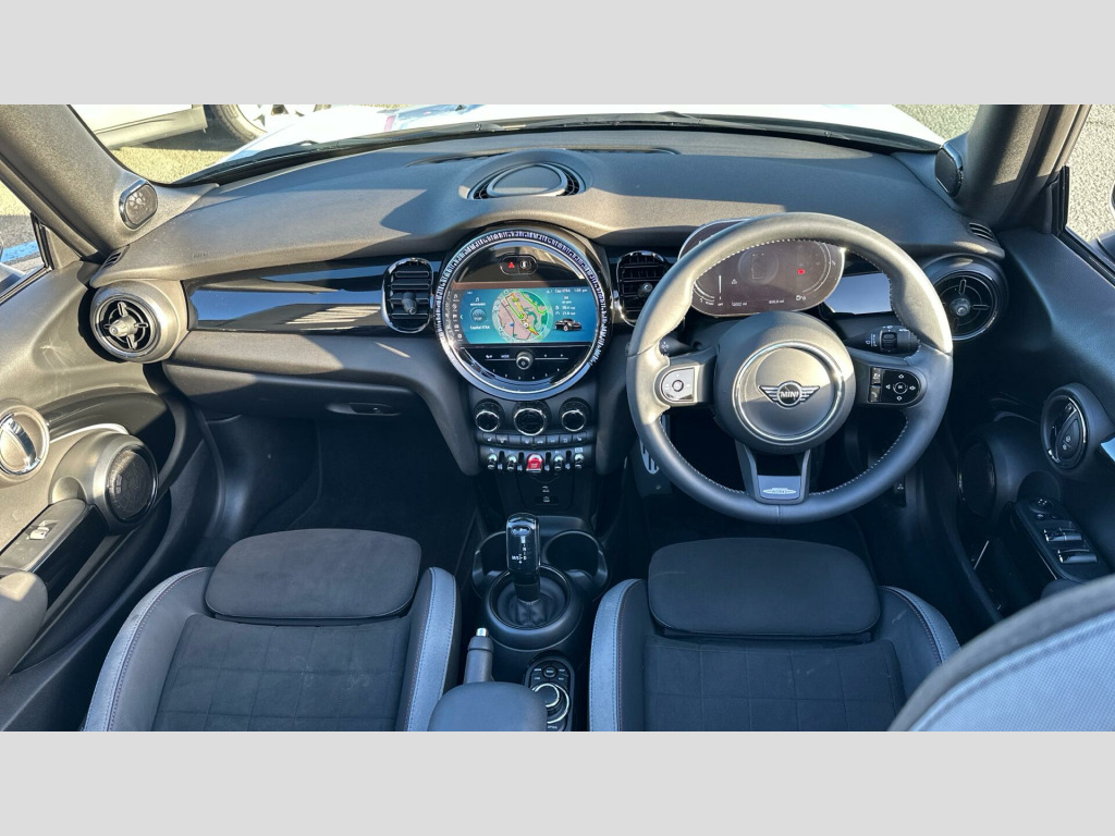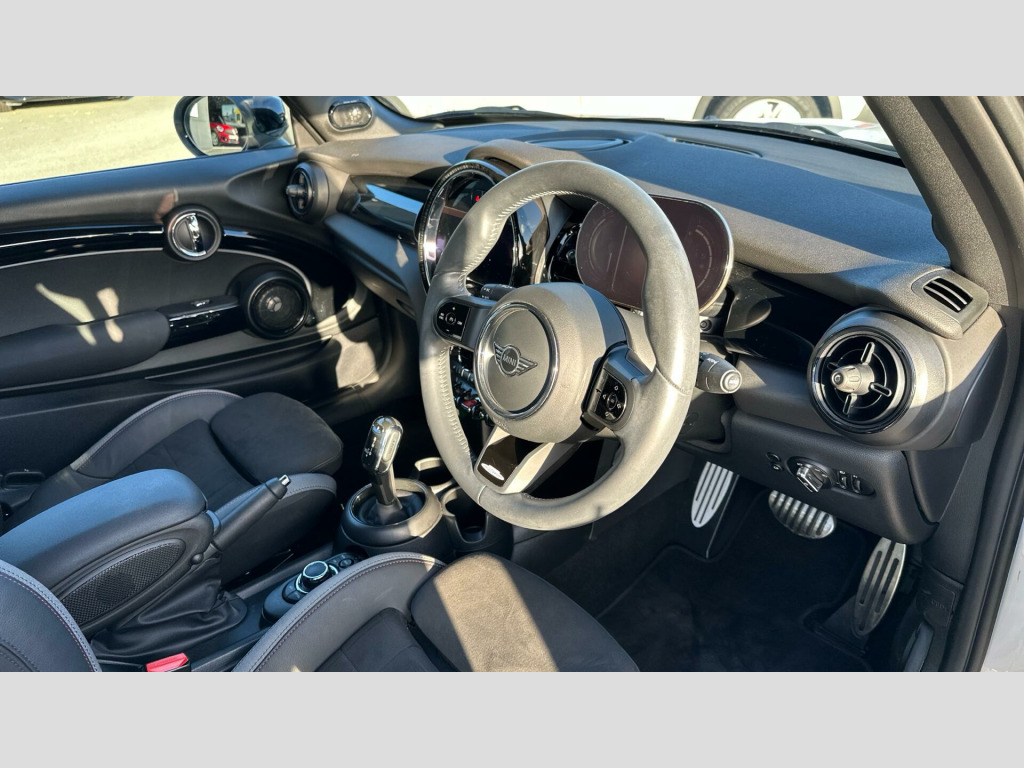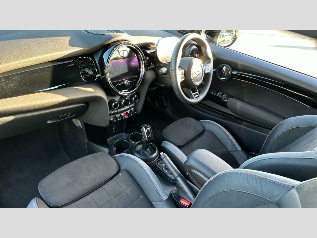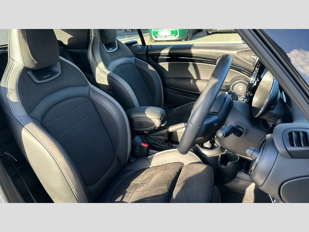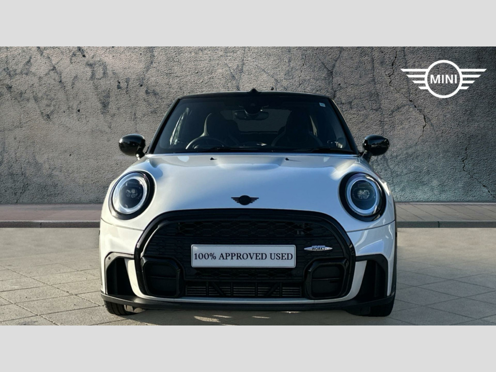 MINI Convertible Cooper Sport in Nanuq White with Dinamica/Leather John Cooper Works Sport interior. Spec includes Comfort Access, Heated Front Seats, John Cooper Works Sport Seats, Multifunctional Steering Wheel, Front Centre Armrest, Smartphone Integration, Harman/Kardon Surround Sound Audio, Flexible CarSharing Preparation, Enhanced Bluetooth- wireless charging, MINI Navigation System, Parking Assistant, Front and Rear Parking Sensors, Reverse Camera, Electric Folding Door Mirrors, Rear-view Mirror with Auto dimming, Wind Deflector, John Cooper Works Aerodynamic Kit, Piano Black Exterior, 17'' Track Spoke Alloy Wheels in Black.. 17'' Track Spoke alloy wheels in black, Nappa leather steering wheel, Intelligent Adaptive Suspension, Multifunction Controls on Steering Wheel, John Cooper Works Aerodynamic Kit, Black mirror caps, Piano Black Exterior, Piano Black Interior Trim, Rear Fog Light, LED Headlights, Auto headlights with rain sensor, ConnectedDrive Services, Remote Services, Visual Boost Radio, MINI Connected, Digital Cockpit, White Indicator Lenses, Sport, Connected Media, EU6 RDE II exhaust emissions standard, RDE additional contents, Steptronic transmission with double clut, Tyre Repair Kit, Rear view Camera, Electric Folding Door Mirrors, Comfort Access, Wind Deflector, John Cooper Works sport seats, Ambient Lighting, MINI Driving Modes, Rear-view Mirror with Auto dimming, Front centre armrest, Storage Pack, Heated front seats, Driving Assistant, Parking Assistant & Parking Sensors Fron, Flexible CarSharing Preparation, Automatic Air Conditioning, Cruise Control, Additional Interior Lighting, MINI Emergency Call, MINI TeleServices, Real Time Traffic Information, Smartphone Integration, Enhanced Bluetooth- wireless charging, MINI Navigation System, DAB Radio, Harman/Kardon Surround Sound Audio, Active Pedestrian Safety, Premium Plus Pack - Automatic Transmissi.