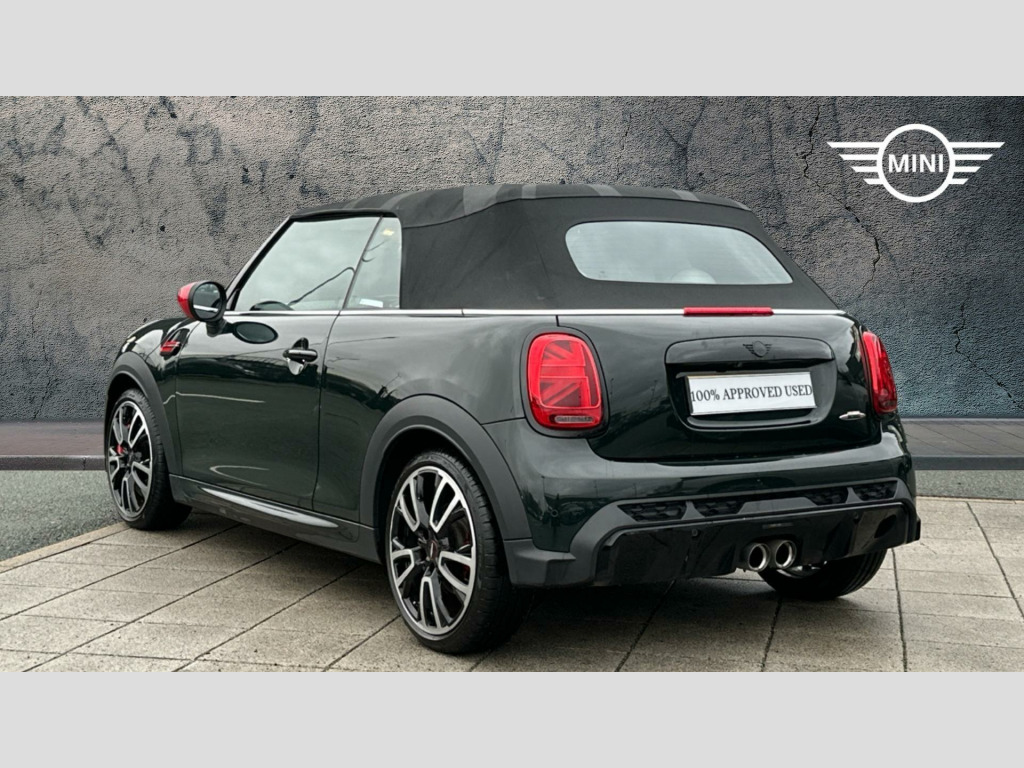 This 2022 MINI Convertible John Cooper Works boasts a full service history with its last service completed on 2024-08-28 at 14,667 miles, and has had only one owner from new. This exceptional example is powered by a 2.0 litre petrol engine, meeting Euro 6 emissions standards. It comes with a 12 month warranty and a 12 month MOT provided on purchase, ensuring peace of mind. Distinctive John Cooper Works bonnet stripes add a touch of sporty flair to this already dynamic convertible.Experience exhilarating performance with this MINI Convertible, capable of reaching 0-62mph in just 6.5 seconds. This model also offers impressive fuel economy, achieving up to 41 mpg, and benefits from a low CO2 emission rating and a low insurance group, making it an economical choice. These highlights demonstrate how this vehicle stands out from others in its class.. EU6 RDE II exhaust emissions standard, Sport Automatic Transmission with Gearsh, Nappa leather steering wheel, Multifunction Controls on Steering Wheel, Rear view Camera, Piano Black Exterior, Electric Folding Door Mirrors, Comfort Access, Interior Trim Piano Black, Ambient Lighting, MINI Driving Modes, Rear-view Mirror with Auto dimming, Front Armrest, Extended storage, Heated front seats, Rear Fog Light, Driving Assistant, LED Headlights, Parking Assistant & Parking Sensors Fron, Flexible CarSharing Preparation, Auto headlights with rain sensor, Automatic Air Conditioning, Active Cruise Control, Additional Interior Lighting, MINI Emergency Call, MINI Head-up Display, MINI TeleServices, ConnectedDrive Services, Real Time Traffic Information, Remote Services, Smartphone Integration, Visual Boost Radio, MINI Connected, MINI Connected XL, Enhanced Bluetooth- wireless charging, MINI Navigation System, Digital Cockpit, DAB Radio, Harman/Kardon Surround Sound Audio, White Indicator Lenses, Active Pedestrian Safety, Premium Plus Pack - Automatic Transmissi, 18'' JCW Course Spoke 2-tone / runflat ty, Intelligent Adaptive Suspension, Run-flat Tyres, John Cooper Works Bonnet Stripes, Red Mirror Caps, MINI Yours Union Jack Softtop, Wind Deflector, Sport seats, control DSC. Full service history