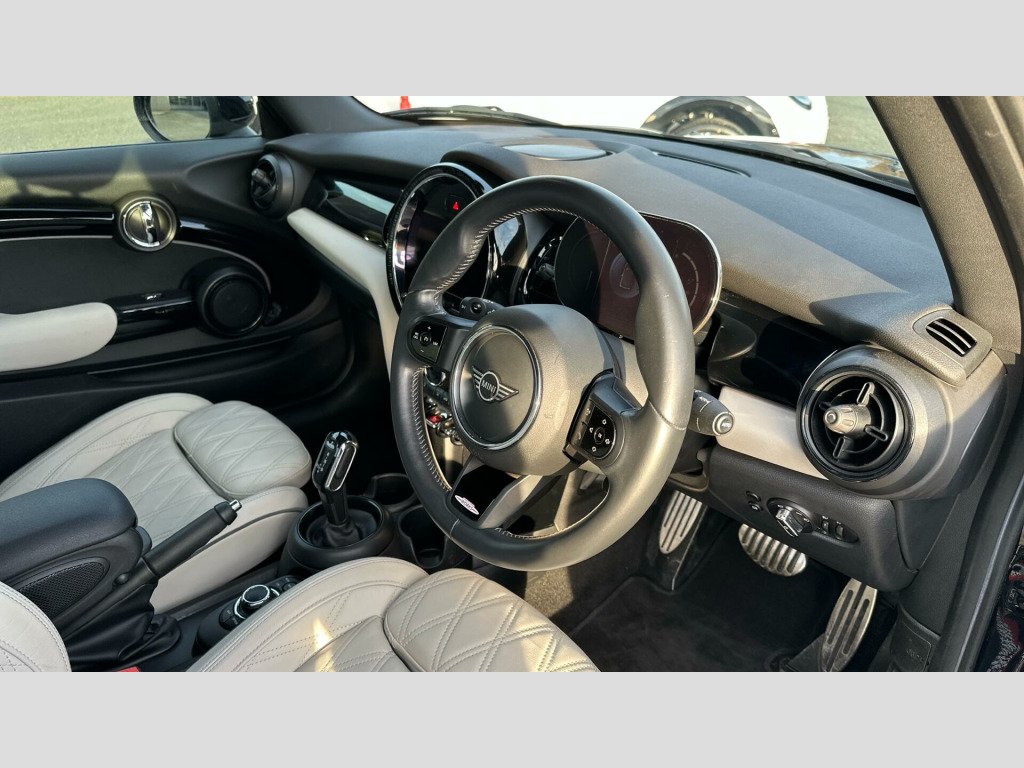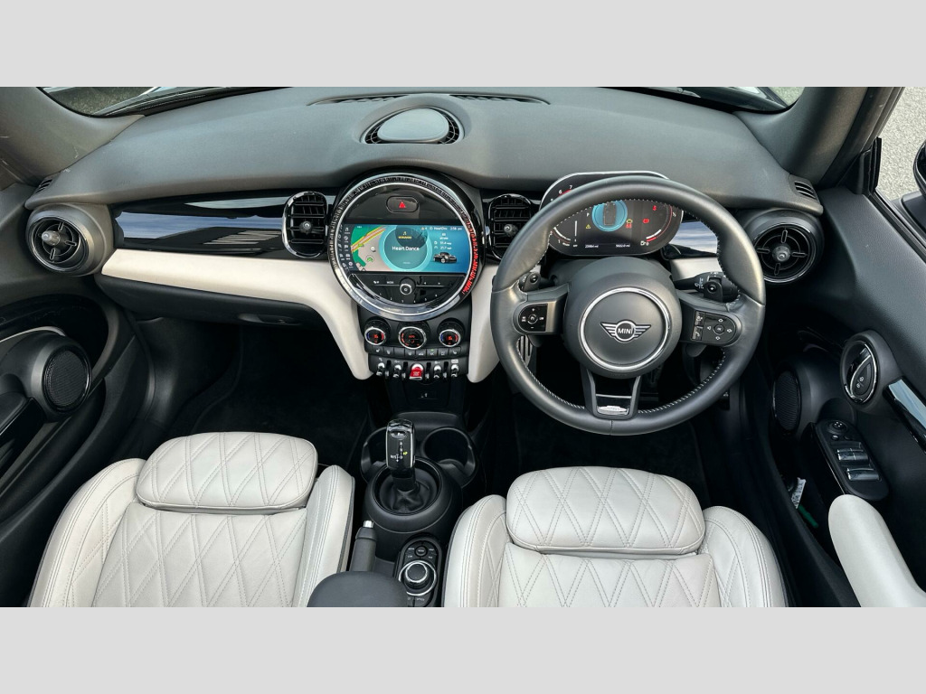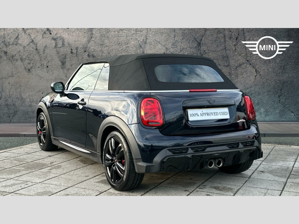 MINI Convertible John Cooper Works in Enigmatic Black with Leather Chester Satellite Grey interior. Spec includes Comfort Access, Comfort Plus Pack, Heated Front Seats, Front Sport Seats, Multifunctional Steering Wheel, Nappa Leather Steering Wheel, Front Armrest, Wind Deflector, Ambient Lighting, Cruise Control, Digital Cockpit, MINI Navigation System, Smartphone Integration, Parking Assistant, Front and Rear Parking Sensors, Reverse Camera, Electric Folding Door Mirrors, Rear-view Mirror with Auto dimming, MINI Driving Modes, Black Mirror Caps, John Cooper Works Bonnet Stripes, 17'' John Cooper Works Track Spoke Black Alloy Wheels.. EU6 RDE II exhaust emissions standard, 17'' John Cooper Works Track Spoke Black, Tyre Repair Kit, Nappa leather steering wheel, Multifunction Controls on Steering Wheel, Piano Black Exterior, Interior Trim Piano Black, Ambient Lighting, MINI Driving Modes, Rear Fog Light, LED Headlights, Flexible CarSharing Preparation, Auto headlights with rain sensor, Cruise Control, Additional Interior Lighting, Visual Boost Radio, DAB Radio, White Indicator Lenses, Active Pedestrian Safety, Connected Media, Sport Automatic Transmission with Gearsh, Intelligent Adaptive Suspension, Rear view Camera, John Cooper Works Bonnet Stripes, Black Mirror Caps, Electric Folding Door Mirrors, Comfort Access, Wind Deflector, Rear-view Mirror with Auto dimming, Front Armrest, Sport seats, Extended storage, Heated front seats, Parking Assistant & Parking Sensors Fron, Automatic Air Conditioning, MINI Emergency Call, MINI TeleServices, ConnectedDrive Services, Real Time Traffic Information, Remote Services, Smartphone Integration, MINI Connected, MINI Navigation System, Digital Cockpit, Comfort Plus Pack, Navigation Package.
