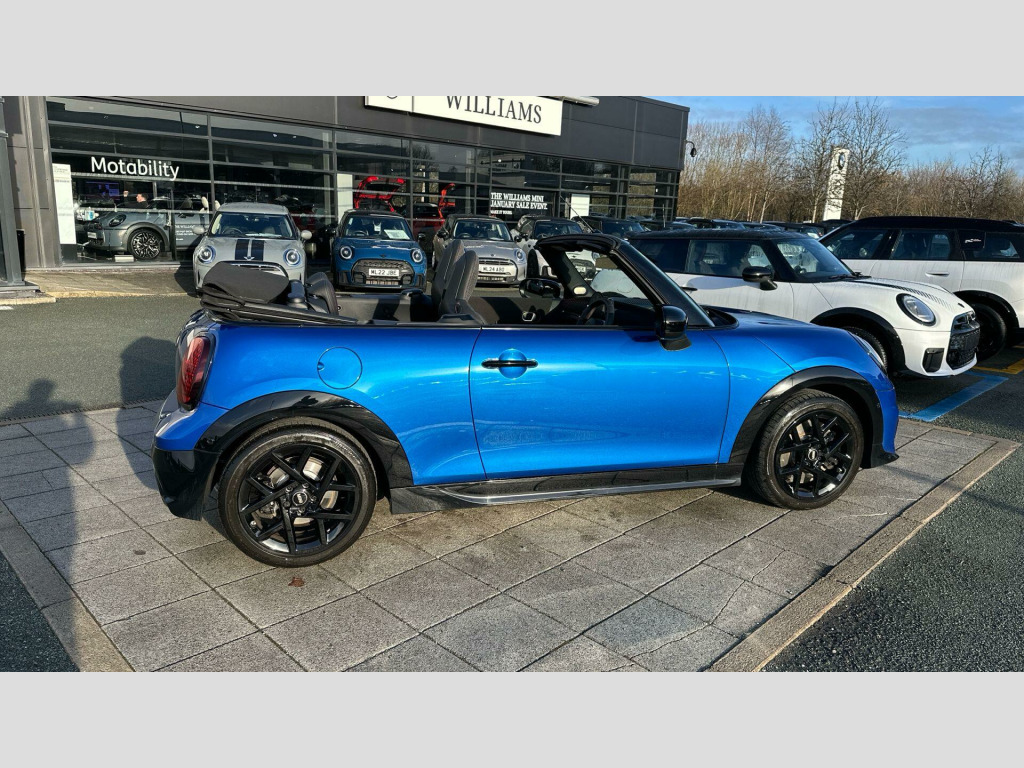 This 2025 MINI Cooper Convertible S Sport is a superb example, having had only one owner since new. Finished in the Sport trim, this stylish convertible boasts a responsive 2.0 litre petrol engine and meets Euro 6 emission standards. Inside, you'll find a host of desirable features designed for comfort and convenience, including a heated steering wheel and heated front seats, perfect for those cooler days. The Driving Assistant system, which includes Blind Spot Assistance, adds an extra layer of safety and awareness on your journeys.This particular MINI Cooper Convertible S Sport offers excellent value, indicated by its low insurance group. You can also enjoy impressive fuel economy, achieving up to 43 miles per gallon, and its low CO2 emissions are a further benefit. These highlights demonstrate how this vehicle stands out from others in its class, offering a more economical and potentially less expensive ownership experience.. EU6 RDE II exhaust emissions standard, Tyre Repair Kit, Wind Deflector, MINI Experience Modes, Child seat i-Size attachment for front p, Driving Assistant, Active Guard, Parking Assistant, BMW TeleServices, BMW Emergency Call, Personal eSIM, Circular OLED Screen, DAB Radio, COC additional contents, Active Pedestrian Safety, English / on-board literature II, 17'' John Cooper Works Sprint spoke black, Sport Double-clutch auto transmission, John Cooper Works steering wheel, Adaptive Suspension, Heated Steering Wheel, Sport Stripes Black, Black mirror caps, John Cooper Works sport brake, Comfort Access, John Cooper Works sport seats, Ext. mirrors- folding with anti-dazzle, Rear-view Mirror with Auto dimming, Heated front seats, High-Beam Assistant, Adaptive LED Headlights, MINI Head-up Display, Storage for wireless charging, Harman/Kardon Surround Sound Audio, Vehicle access control, Sport Trim Content, Sport, Level 2.