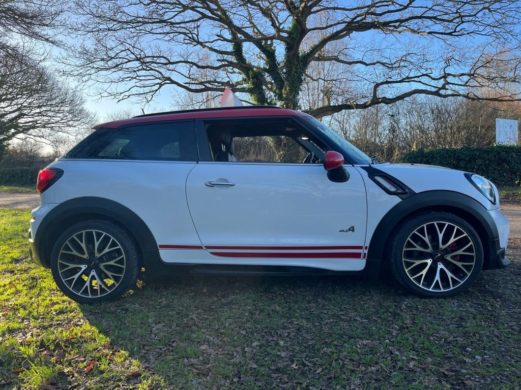 ULEZ Compliant , late 2014 Mini Paceman John Cooper Works , 3 door hatchback in White, 1598 cc petrol engine with only 55000 miles with full service history, Timing chain just replaced, nationwide 06 month RAC mechanical warranty included a new mot will be carried out and all cars are HPI checked and clear, the car comes with 6 speed manual gear box, satellite navigation, reverse parking sensors , full Black leather heated seats, USB / AUX port, air Con, alloy wheels, electric windows , electric mirrors, ISOFIX rear seats , Bluetooth and heated screen. 18in Alloy Wheels - Twin Spoke Burnished, 19in Alloy Wheel - Cross Spoke Crusher B, 3rd Brake Light, Air Conditioning - Automatic, Air Conditioning - Manual, Air Scoop Integrated between Bumper and , Airbags - Driver, Airbags - Front Passenger, Airbags - Front Passenger with Deactivat, Airbags - Front Side, Airbags - Head, Alarm - Thatcham CAT1, Anthracite Headlining, Anti-Lock Braking System - ABS, ASC+T - Automatic Stability Control and , Aux-In Connection, Basic Bluetooth Function with USB Audio, Brake Assist, Brake Force Display, Brake Pad Wear Indicator, CBC - Cornering Brake Control, Central Locking - Remote, Centre Rail - Two Part, Child Seat ISOFIX Attachment, CHILI Pack, Colour Line